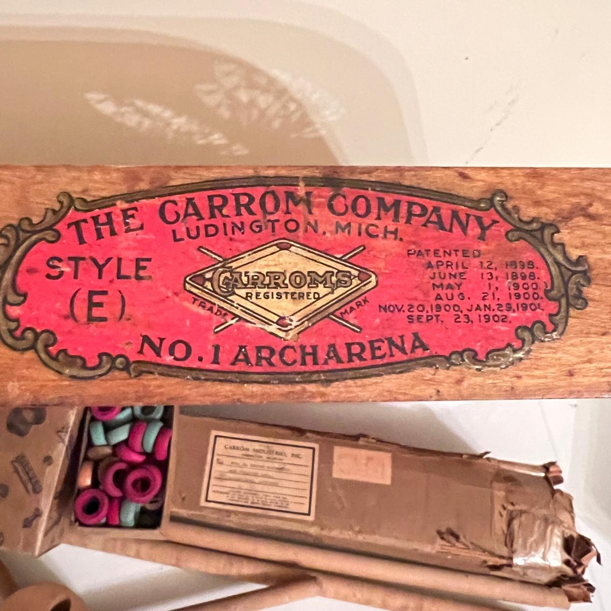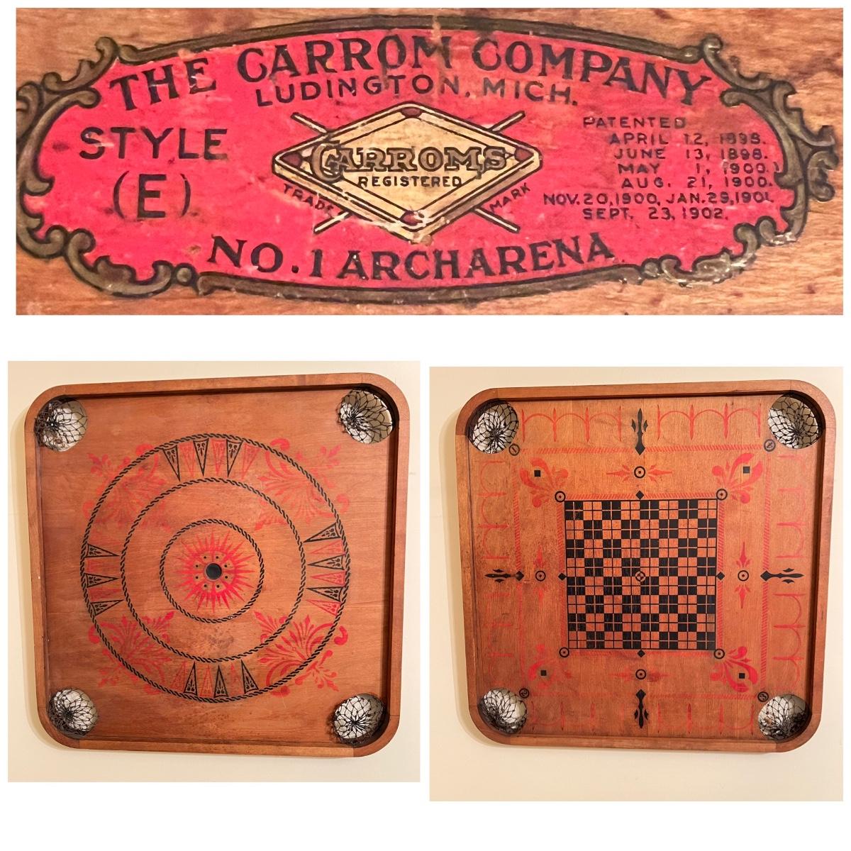 Antique Carrom, No 1 Archarena Style E Double Sided Game Table w. Game Pieces