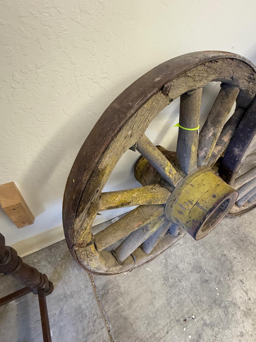 1st of 4 - 39” Diameter real Antique Wood Wagon Wheel