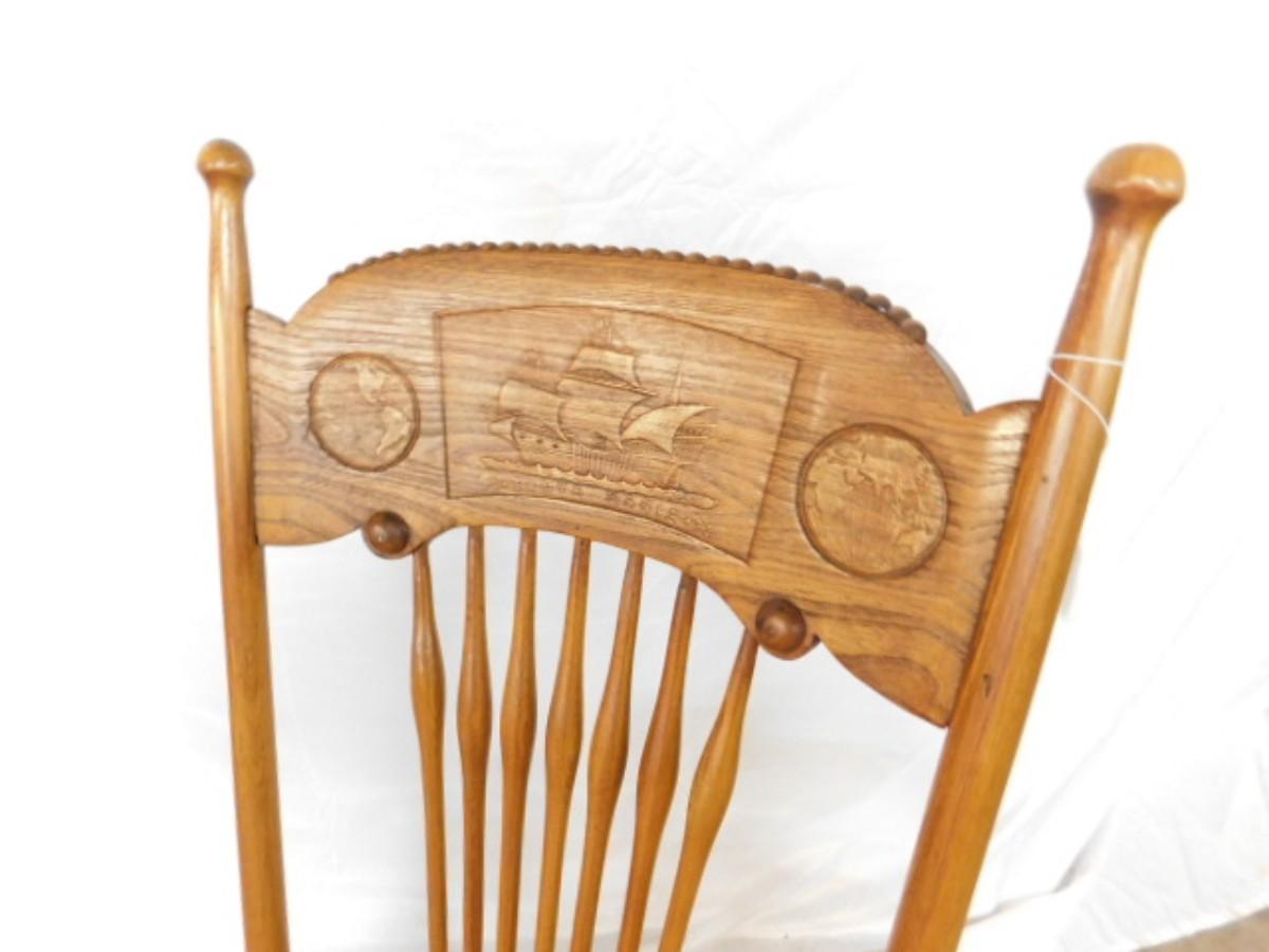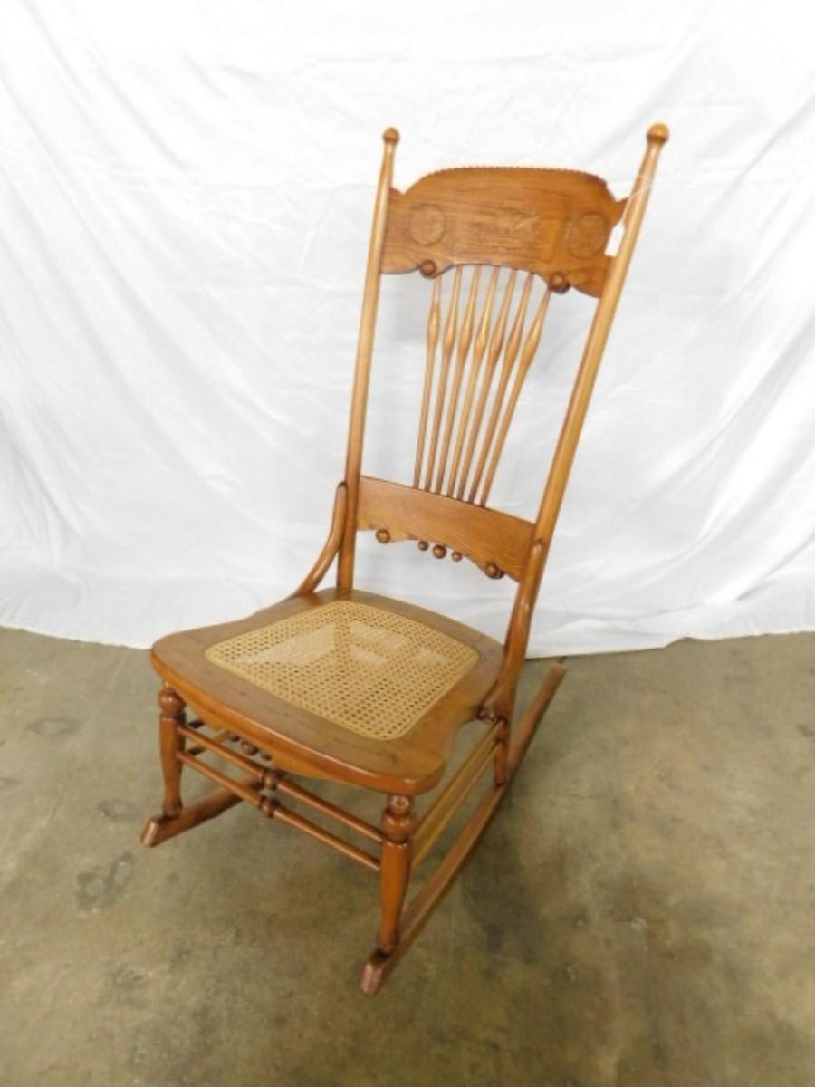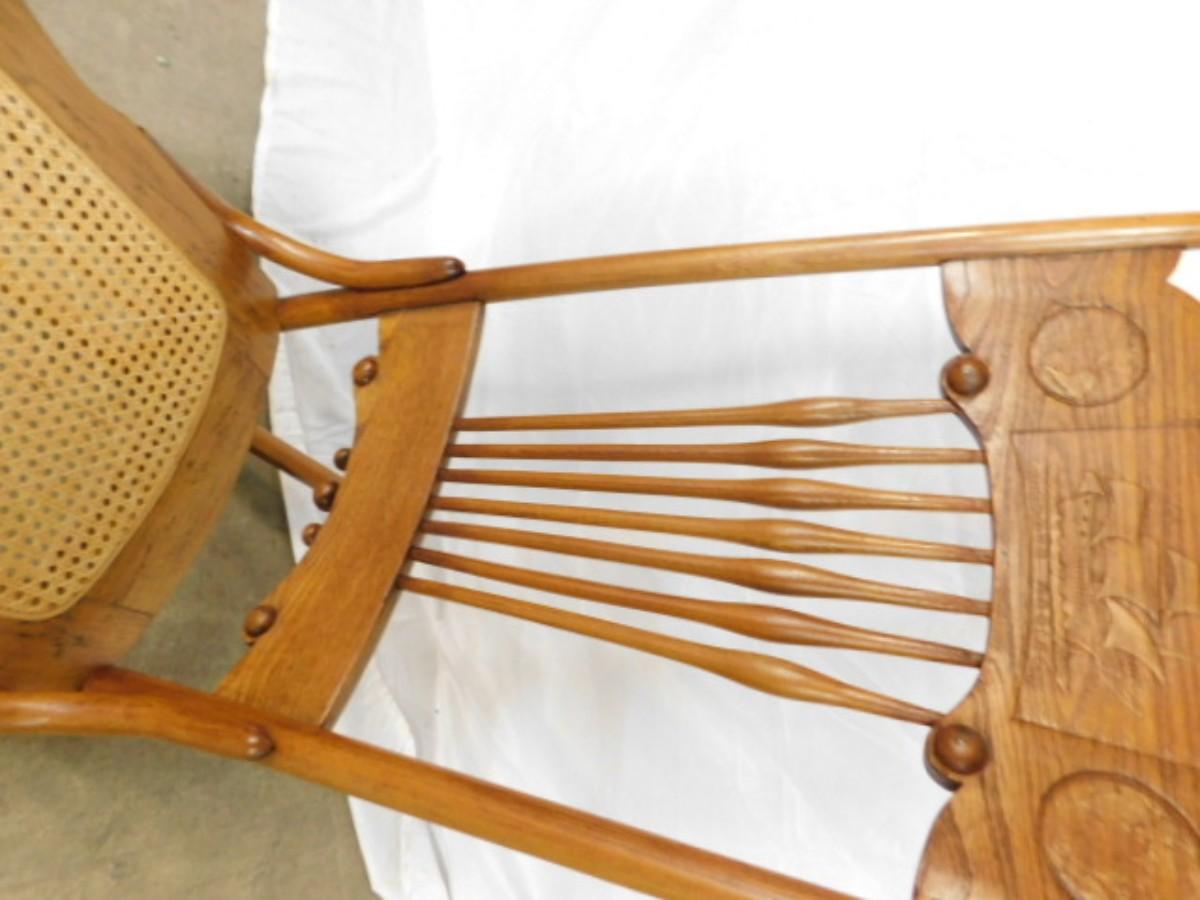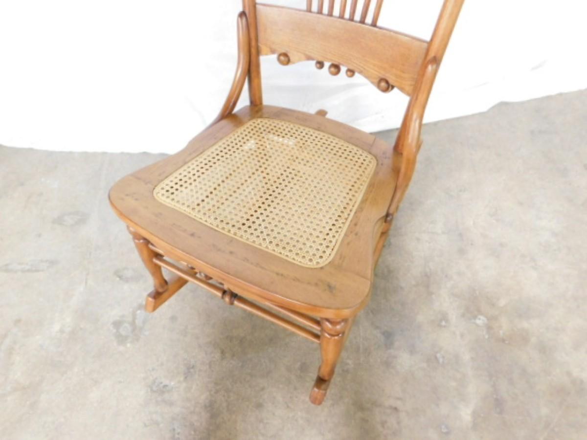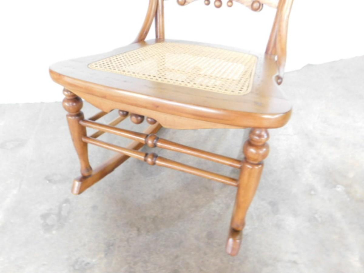 Antique Wood Rocker with Stick and Ball Accents and Cane Seat