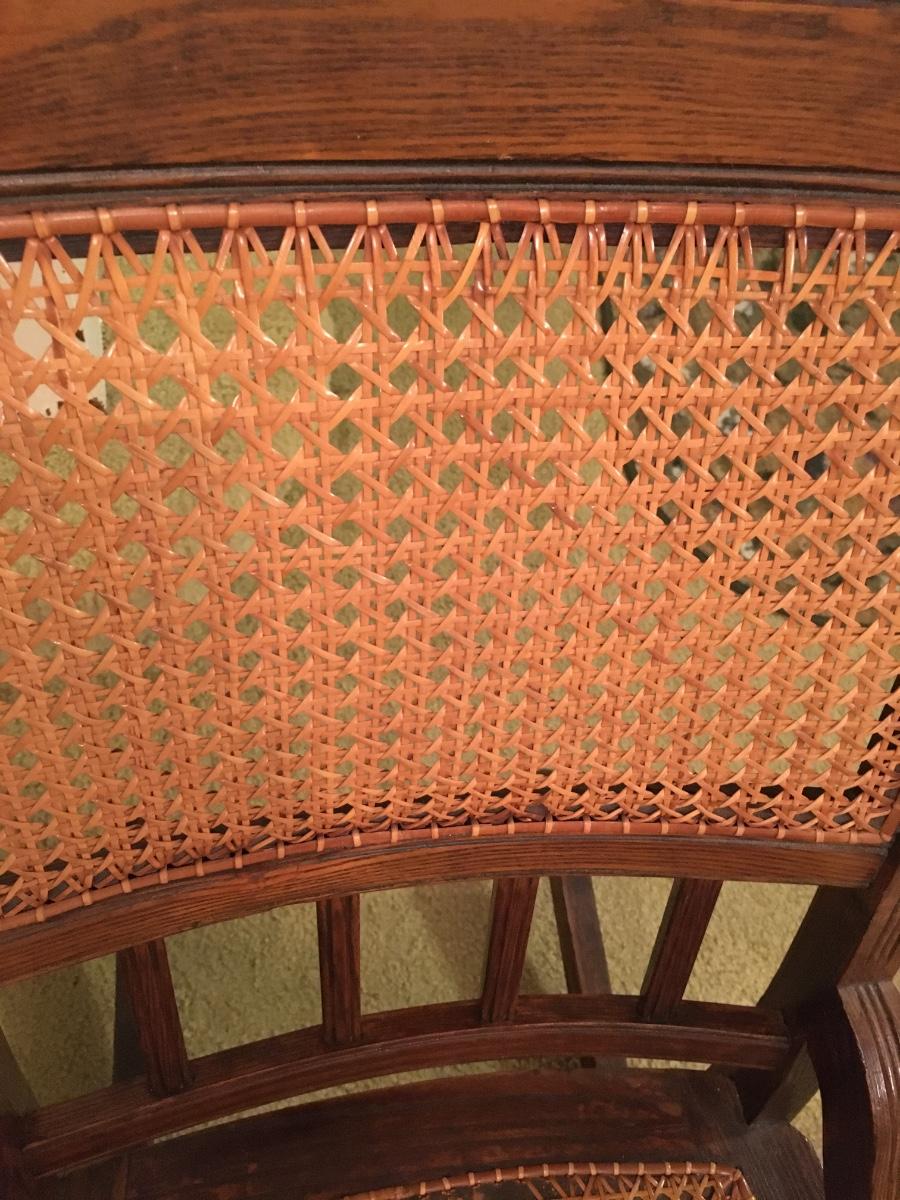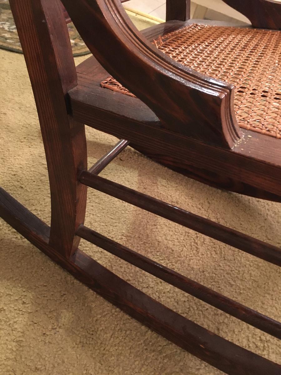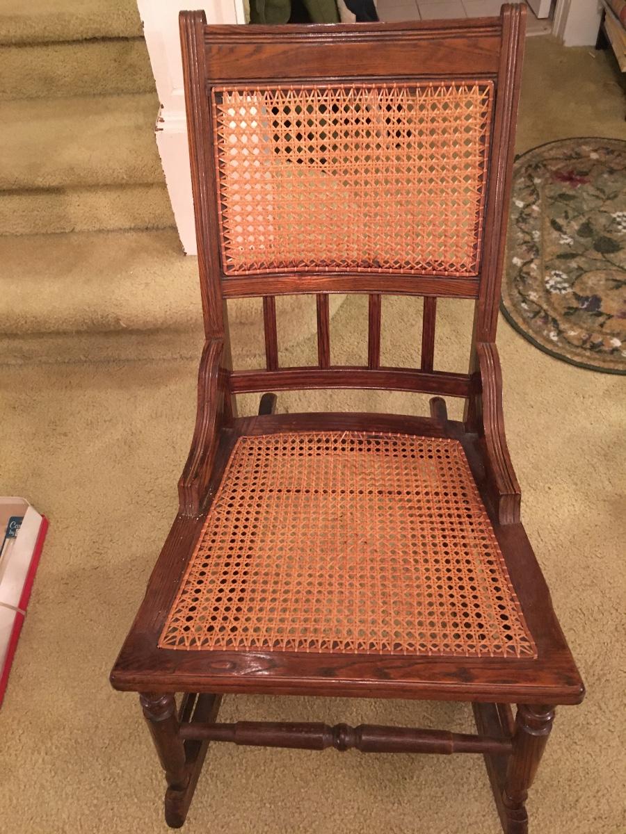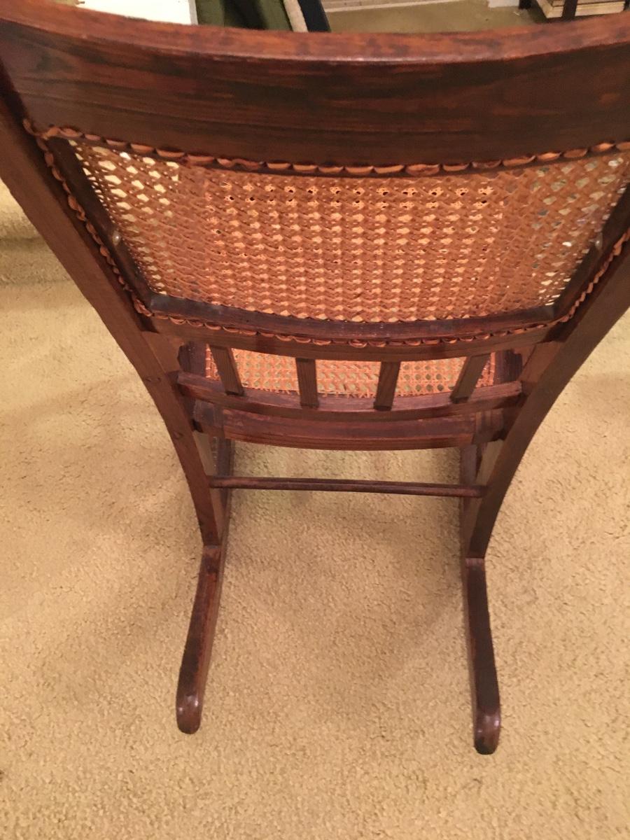 Wood rocking chair with caned seat and back. slight damage on seat as shown in photo