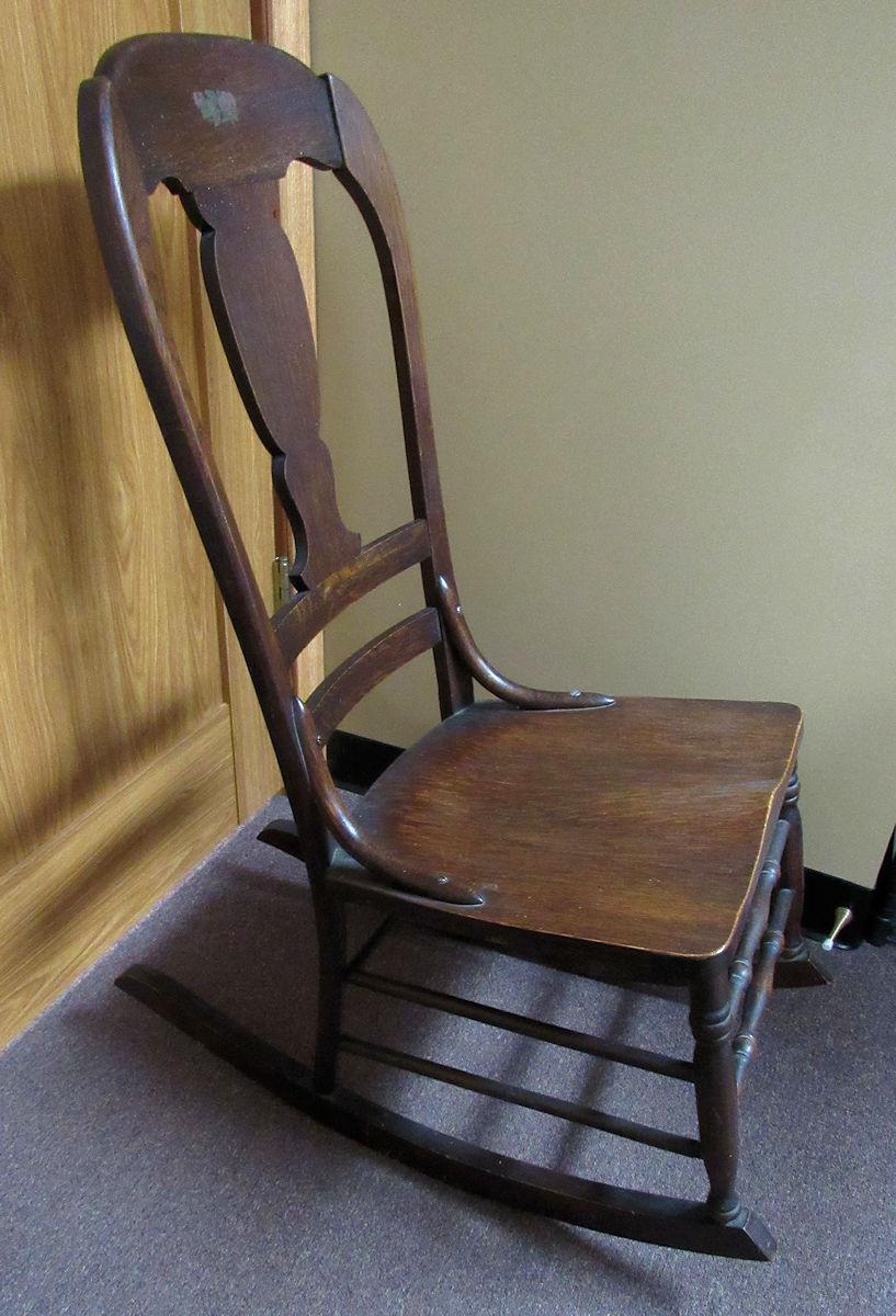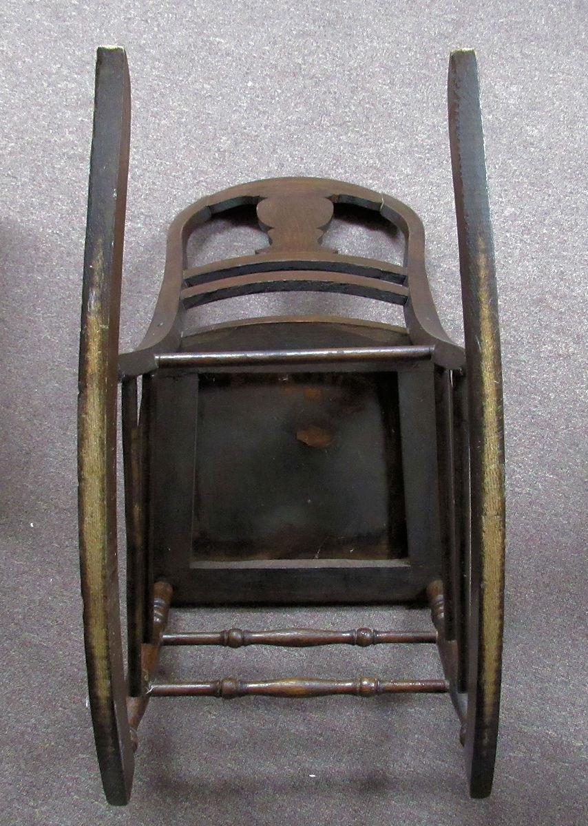 Antique Wood Sewing Rocker Sturdy, Nice Painted Flowers On Back
