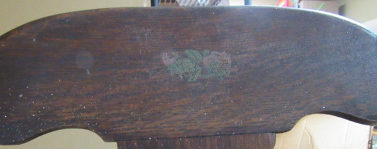 Good antique condition, sturdy, good age patina. Has minor age/use wear. Nice painting on back top. I am not sure if this is oak or if it is just an oak finish on it. I don't see any makers marks.