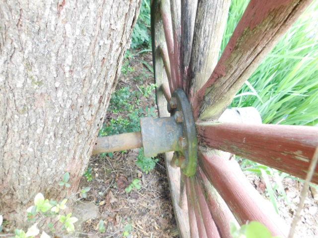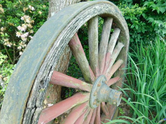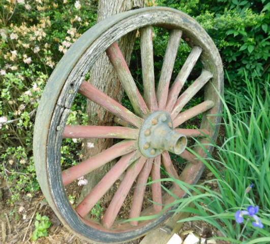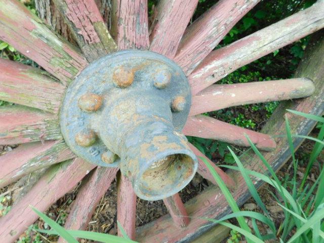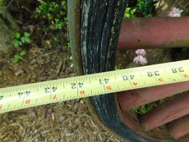 Antique Wood Spoke Wagon Wheel with Cast Metal Tread and Hub 42"wood is weathered