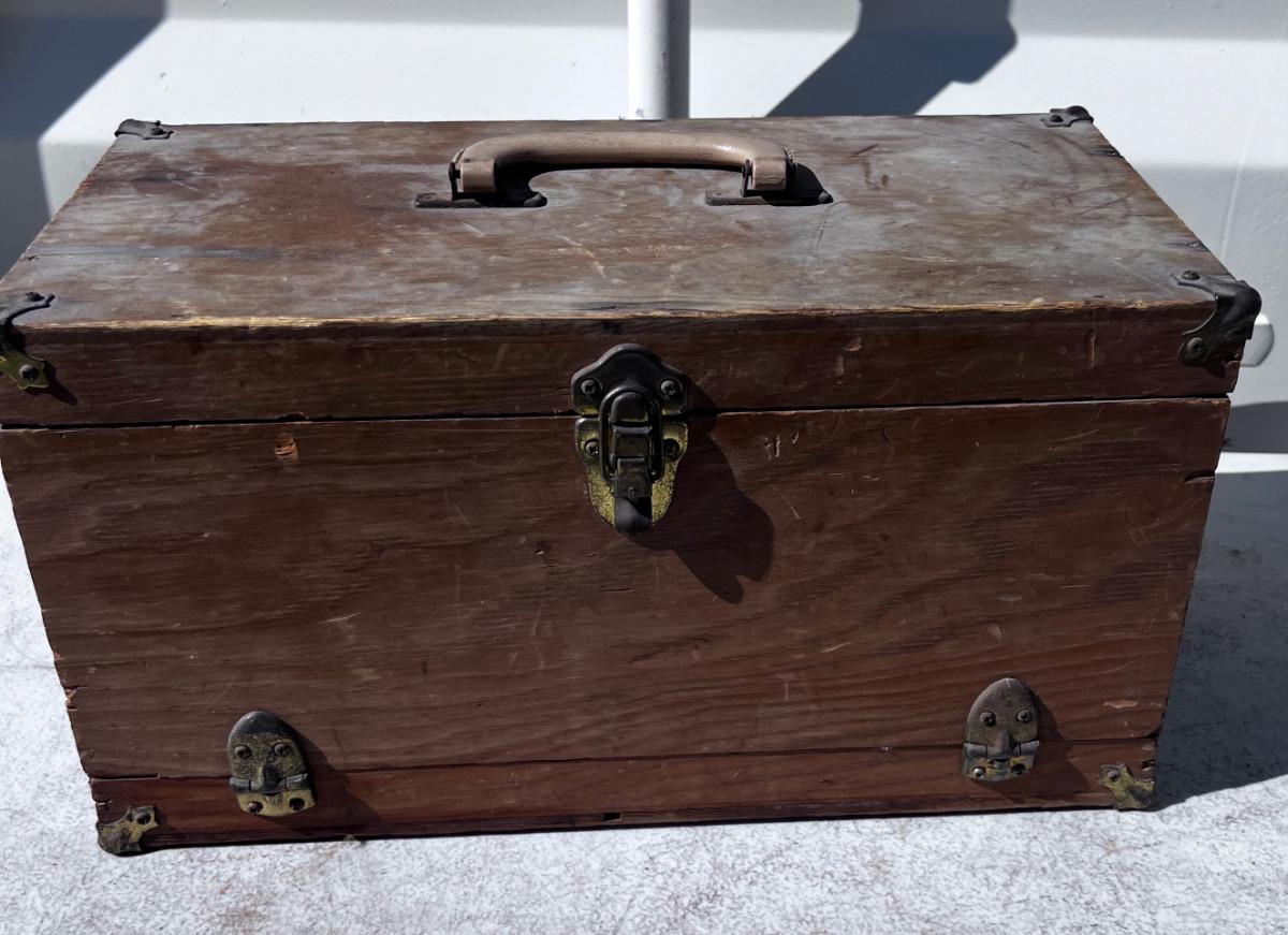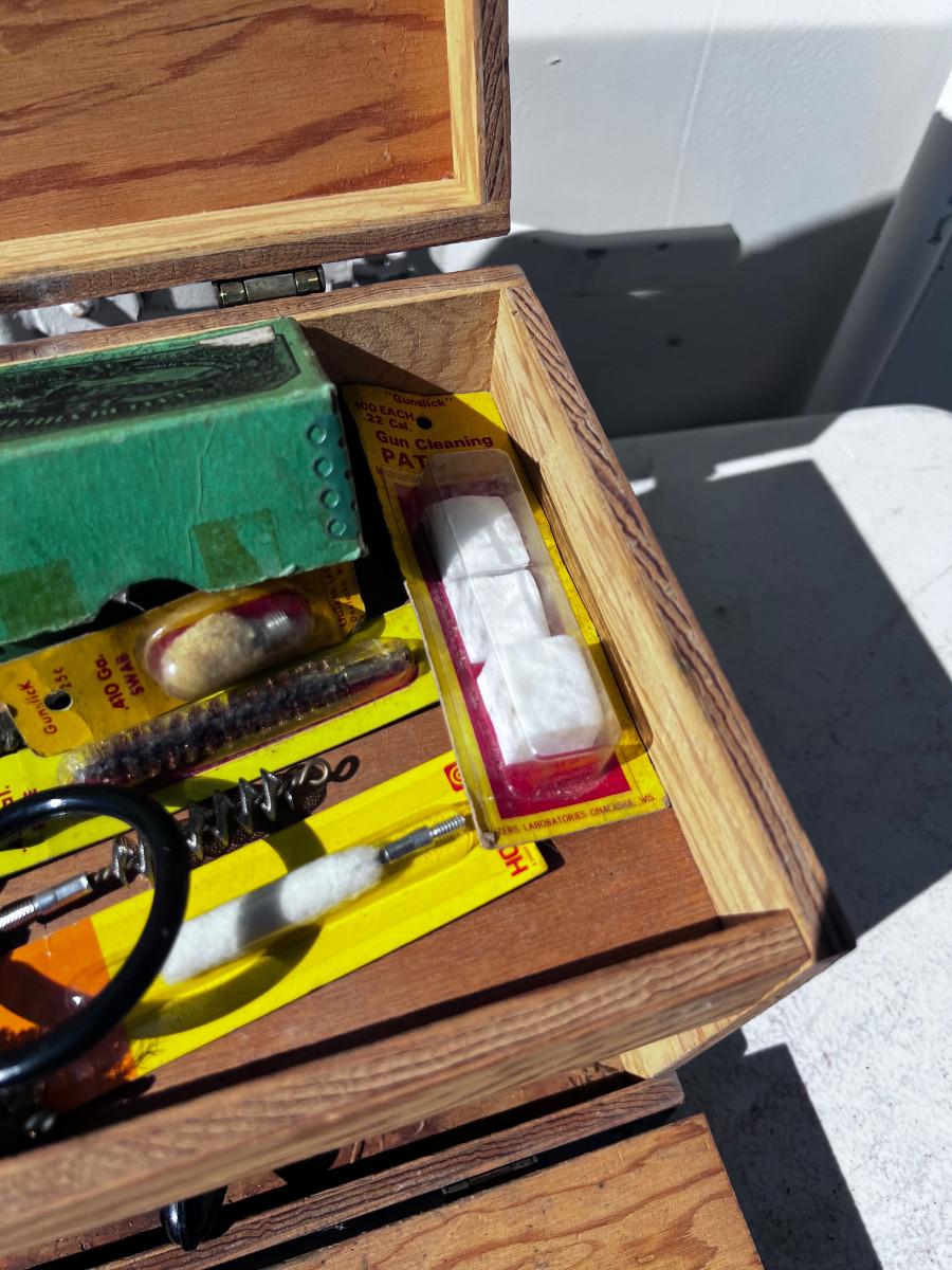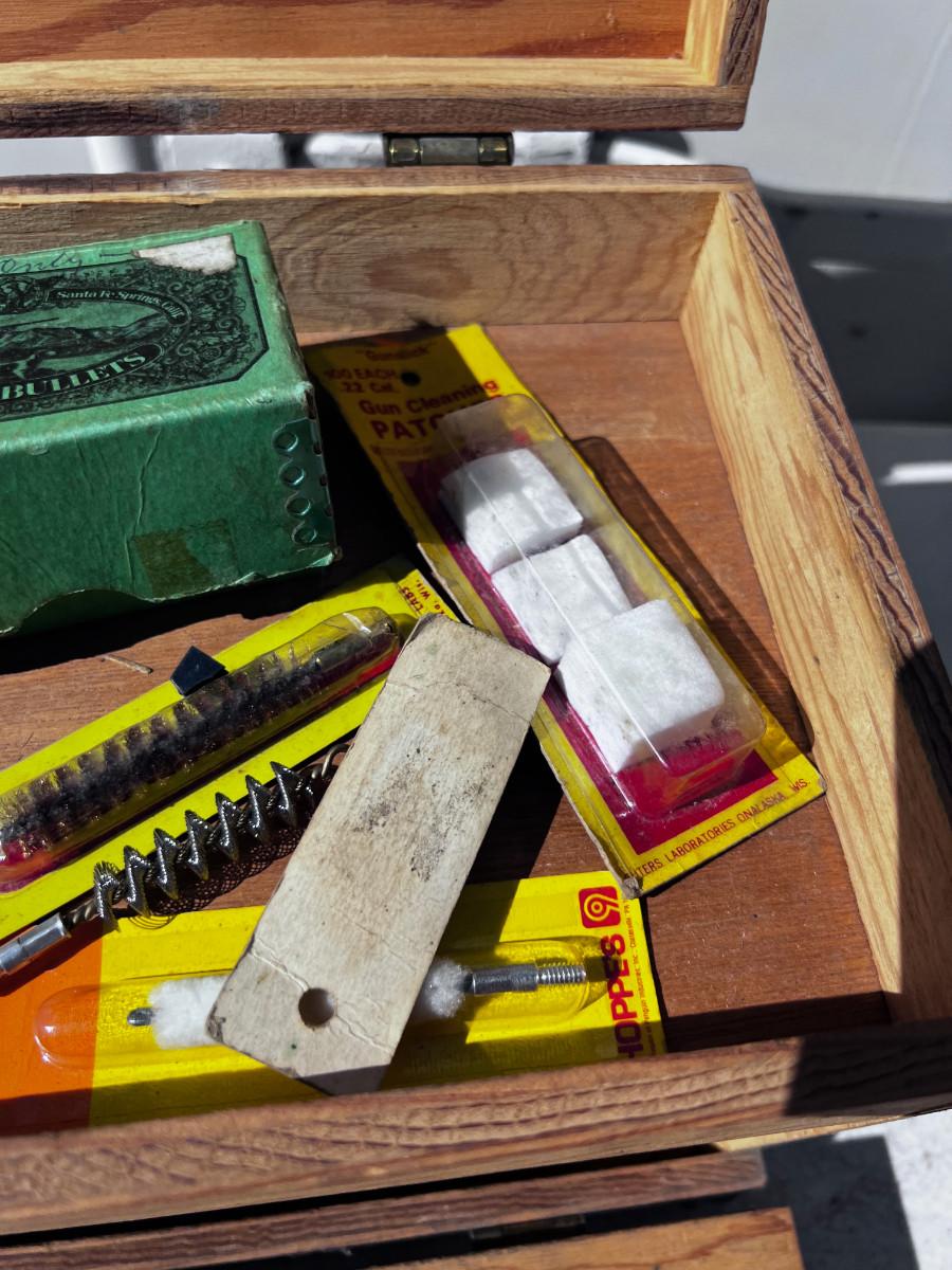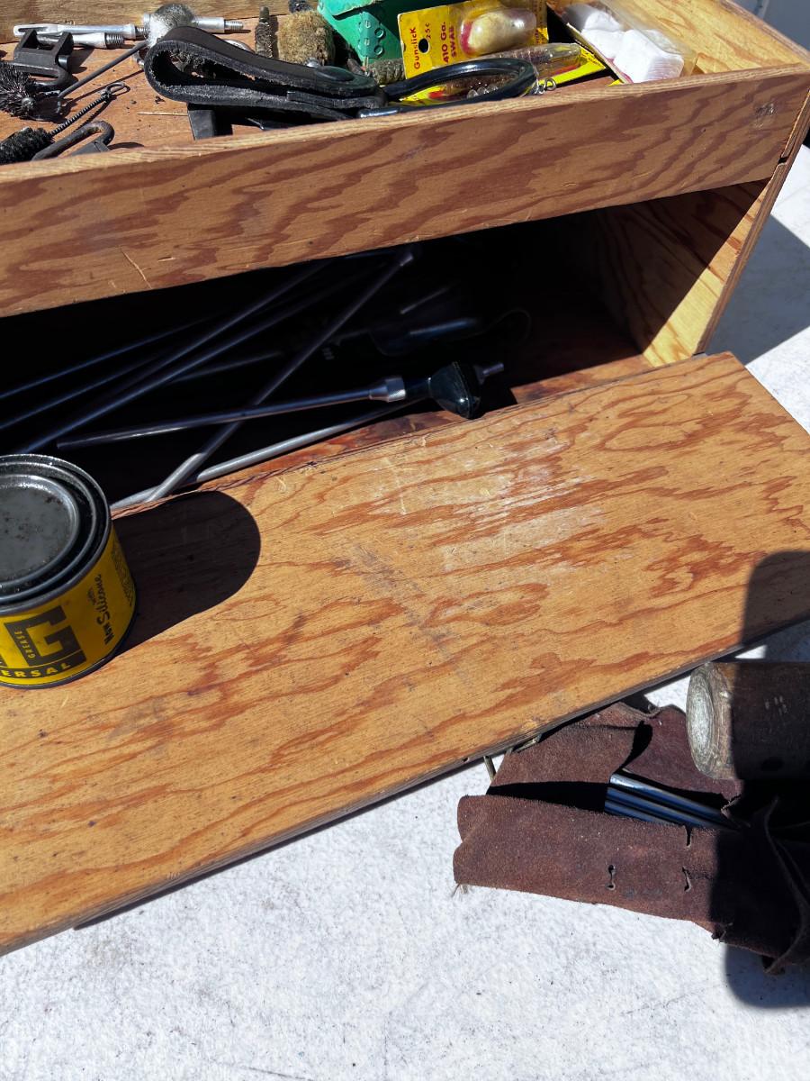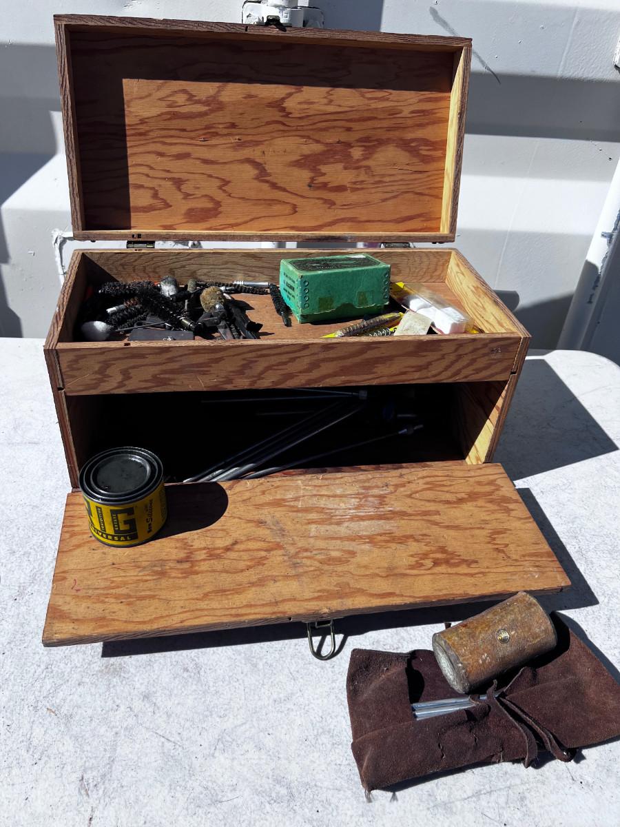Hand Crafted, NEAT! Has gun cleaning gear in it. Measures 16 x 8 x 9