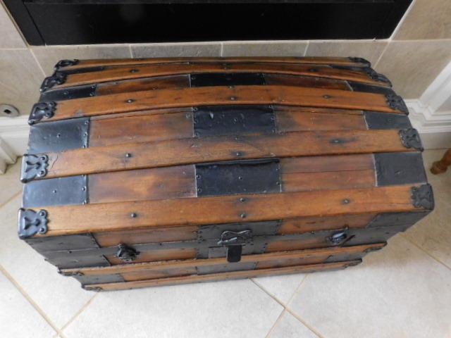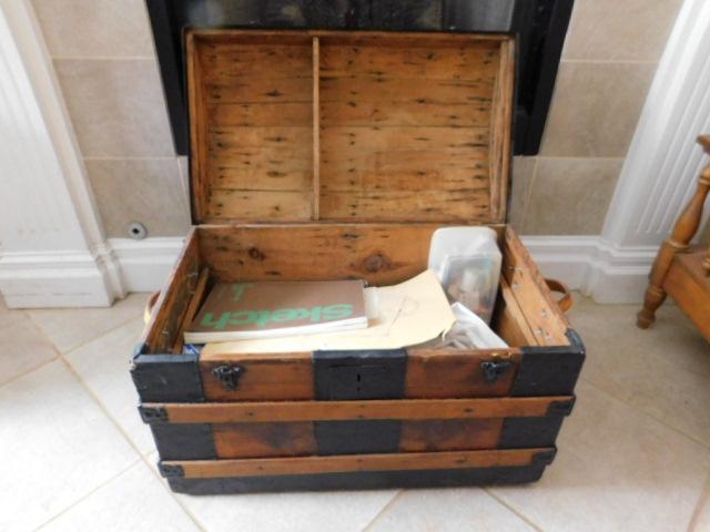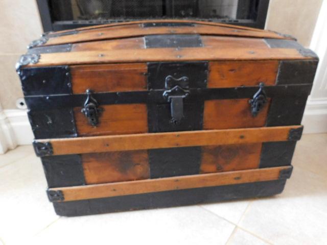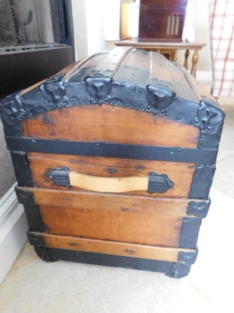 Antique Wood Trunk with Metal Trim 30"x17"x21"