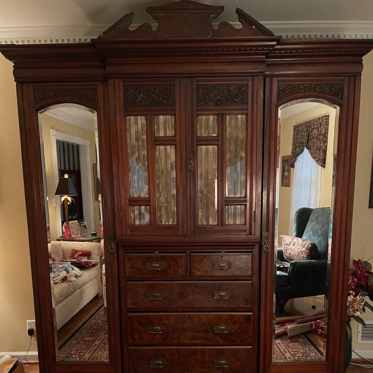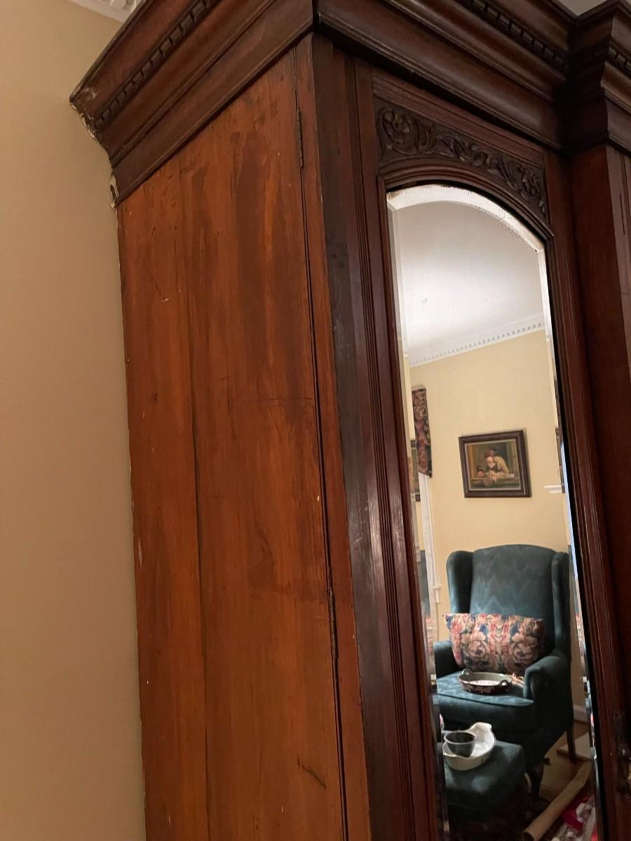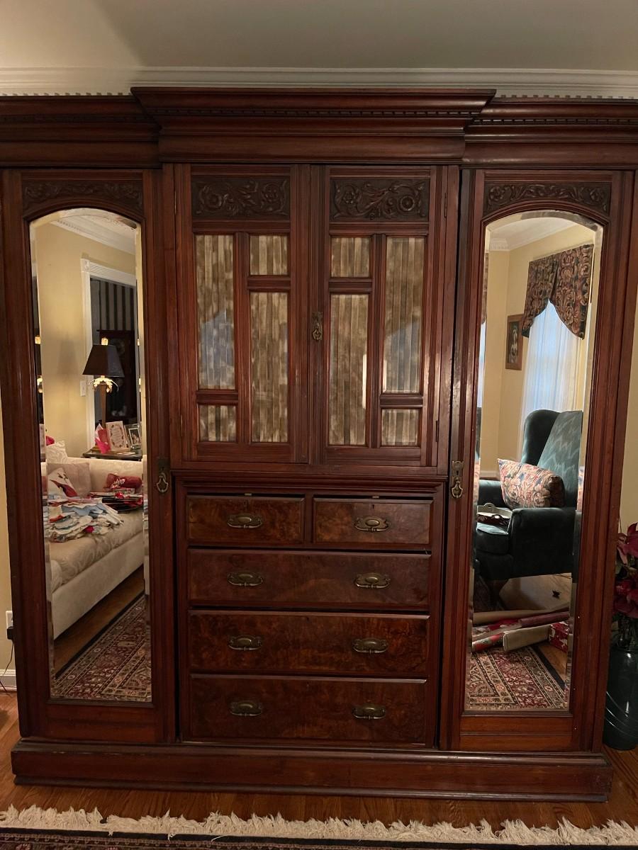 This gorgeous antique wood wardrobe armoire at one time belonged to a Broadway actress in NYC.