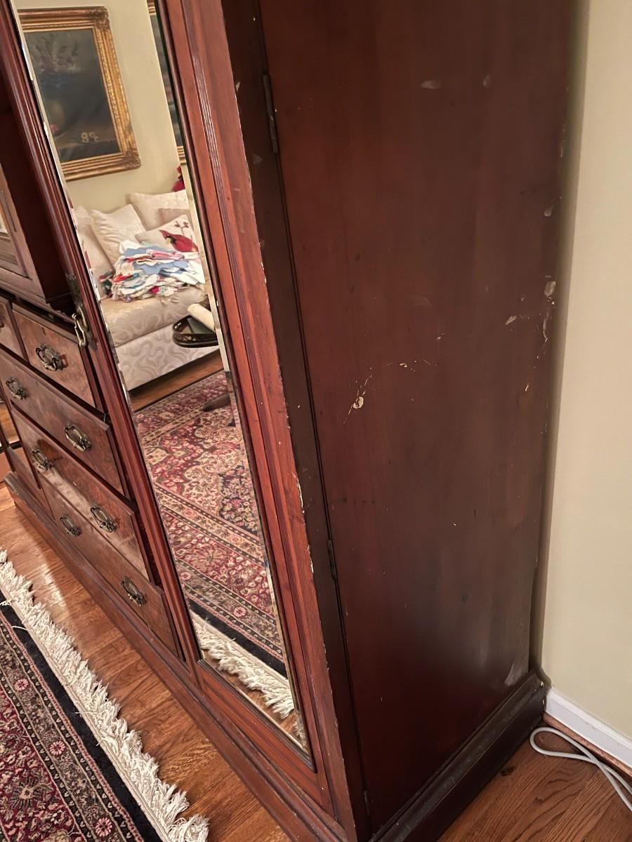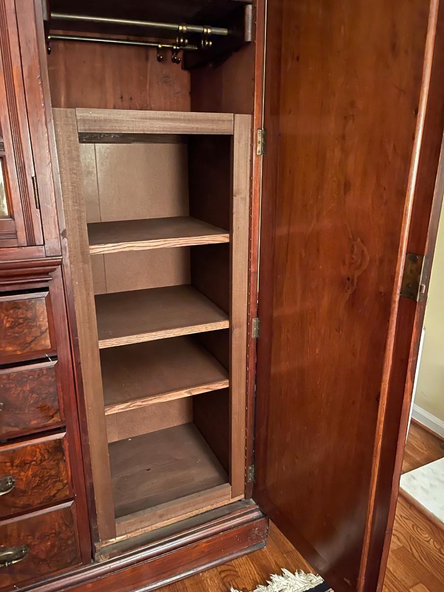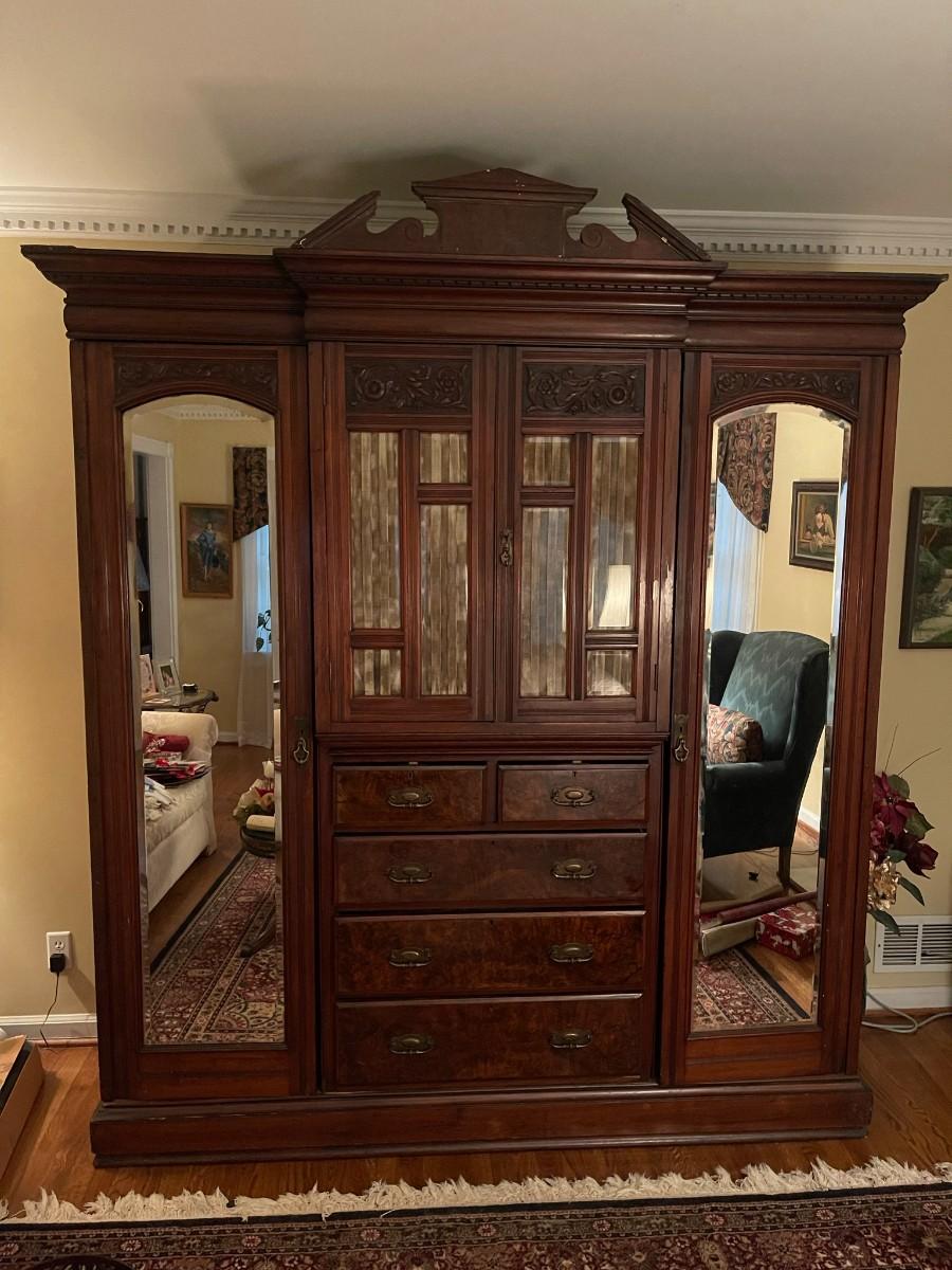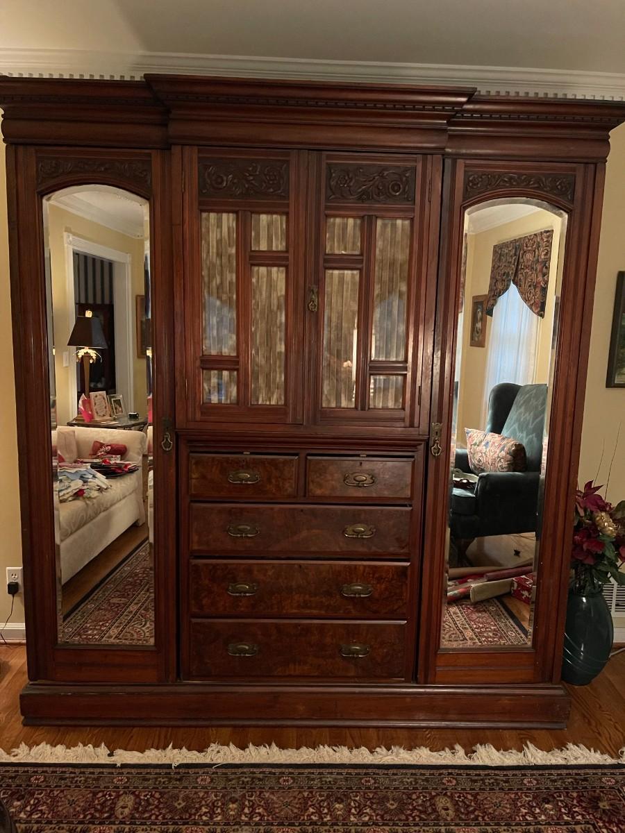 This gorgeous antique wood wardrobe armoire at one time belonged to a Broadway actress in NYC.