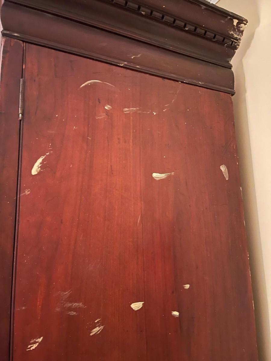 Each of the sides of this wardrobe has some scuff and paint marks.
