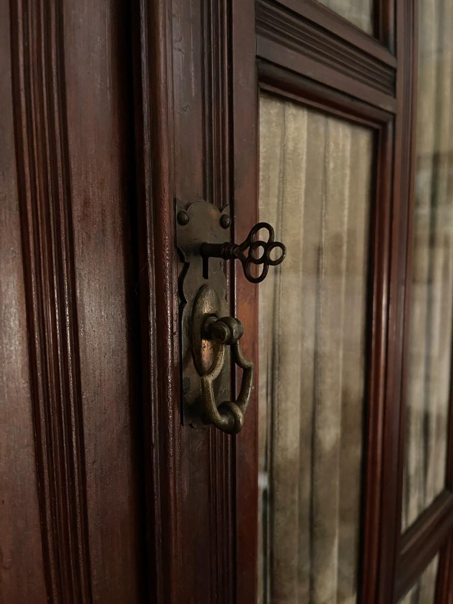 Keys included that secure the middle cabinet doors as well as the 2 small top drawers.