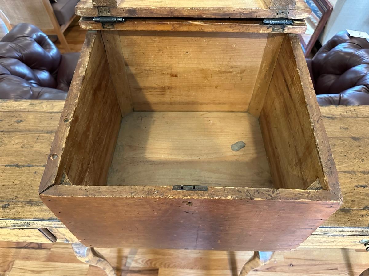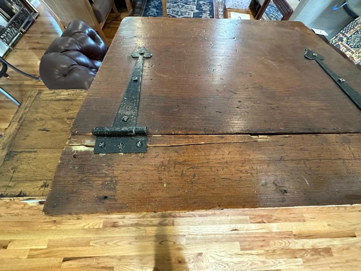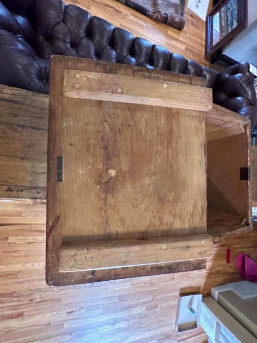 20" X 19" X 14" THE WOOD HAS SPLIT WHERE 1 HINGE IS ATTACHED (SEE PIC)