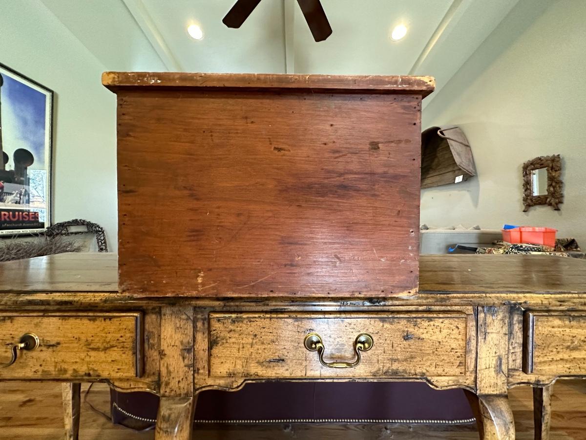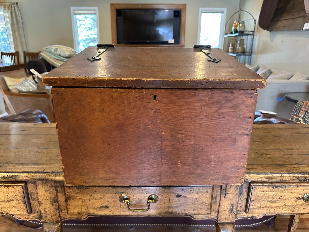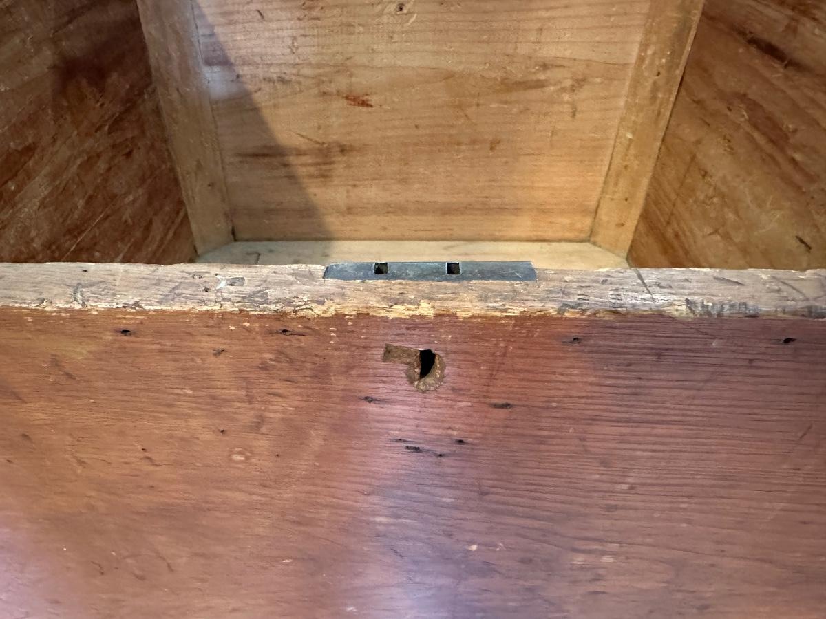 20" X 19" X 14" THE WOOD HAS SPLIT WHERE 1 HINGE IS ATTACHED (SEE PIC)