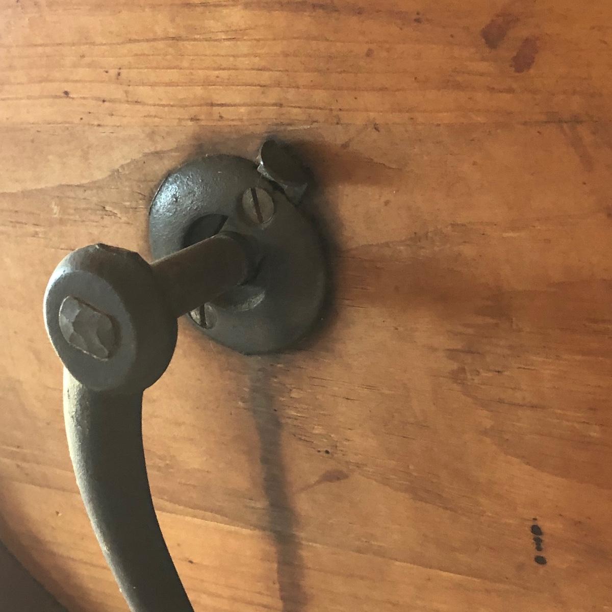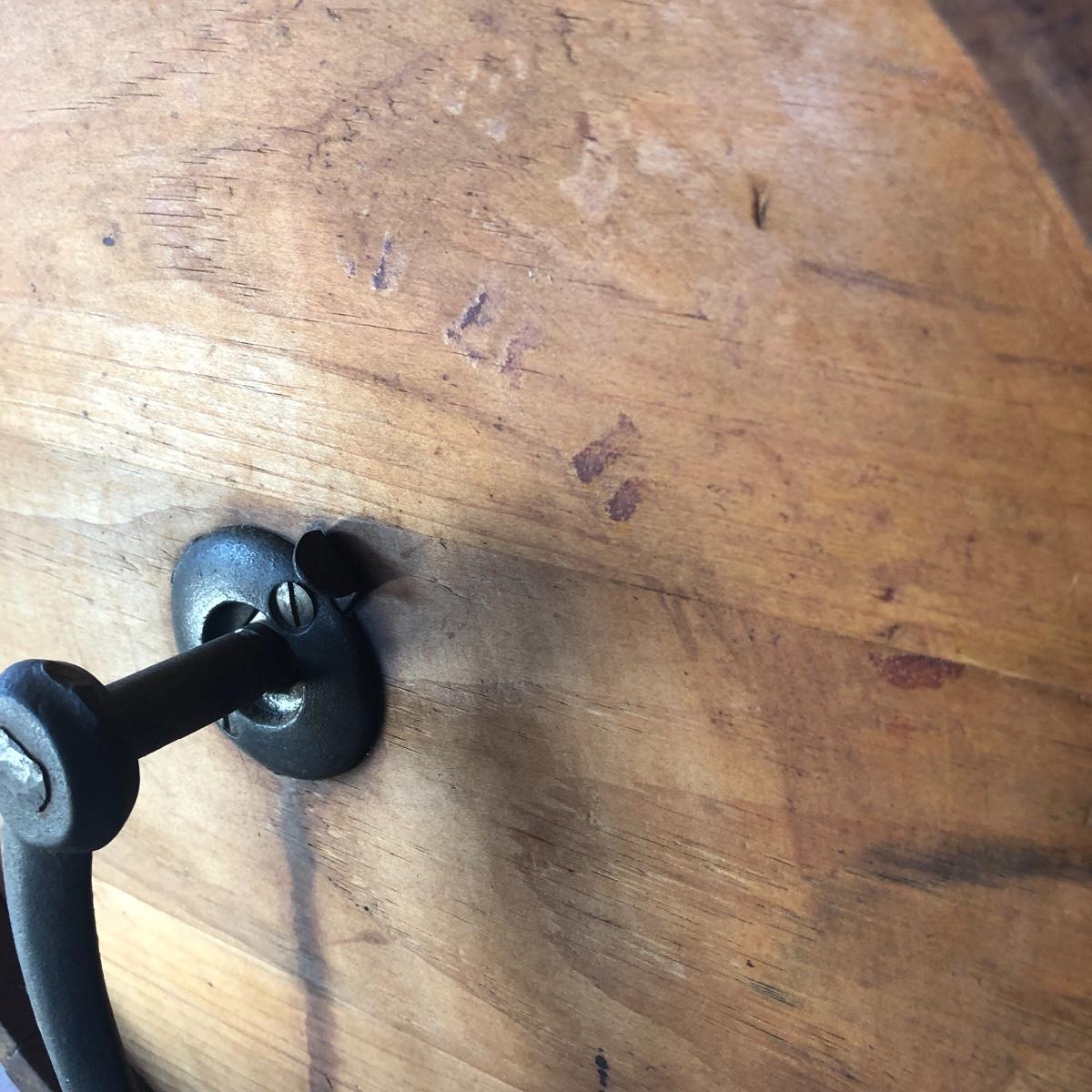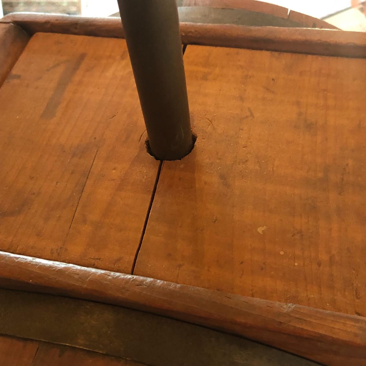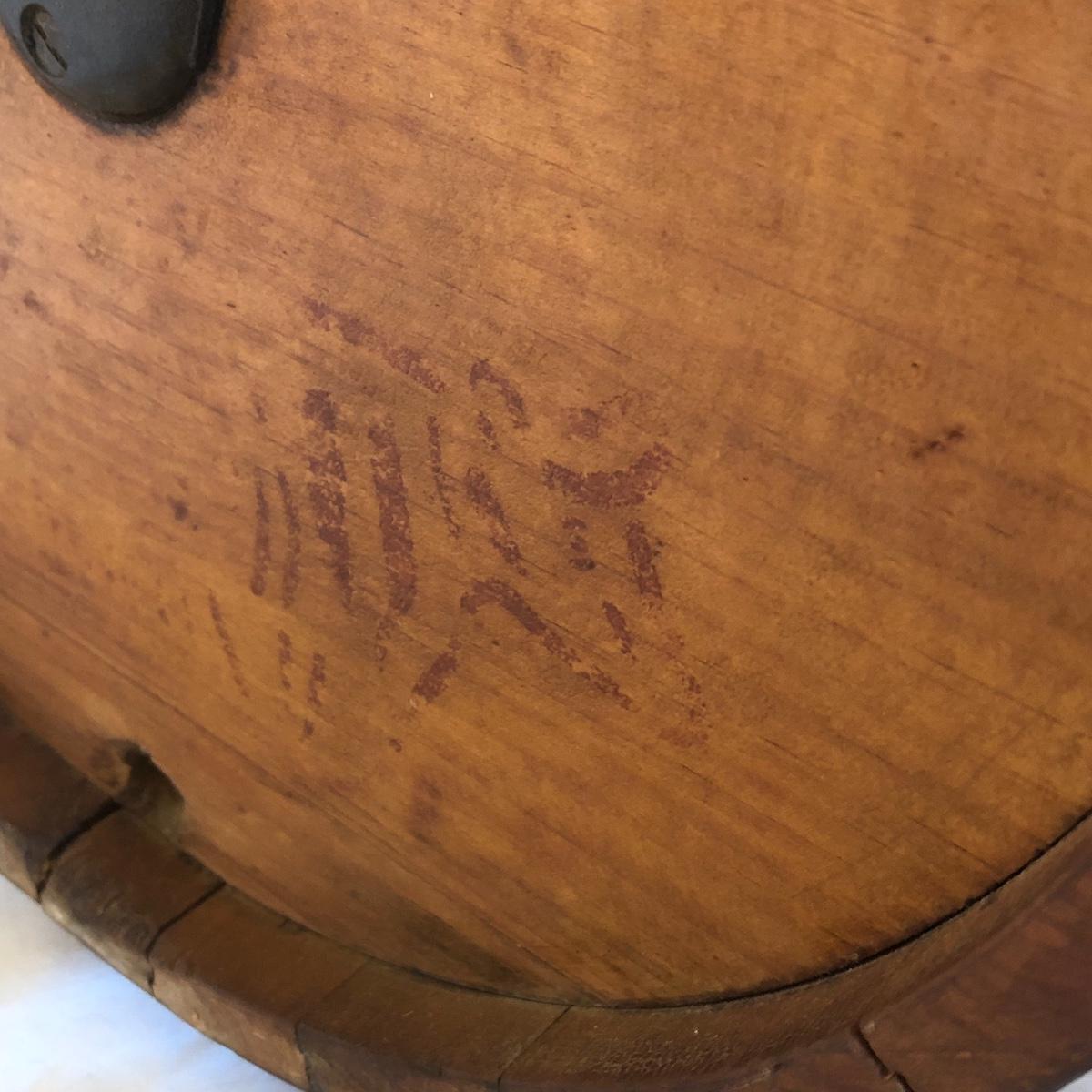 This a wooden antique butter churn with handle; dimensions 12.5” x 9.5” x 14.5”. The butter churn has no chips and is in great condition. The wood appears to be maple and it appears that the original red stencil is still on the back with maker markings on the front. Local pick up only.