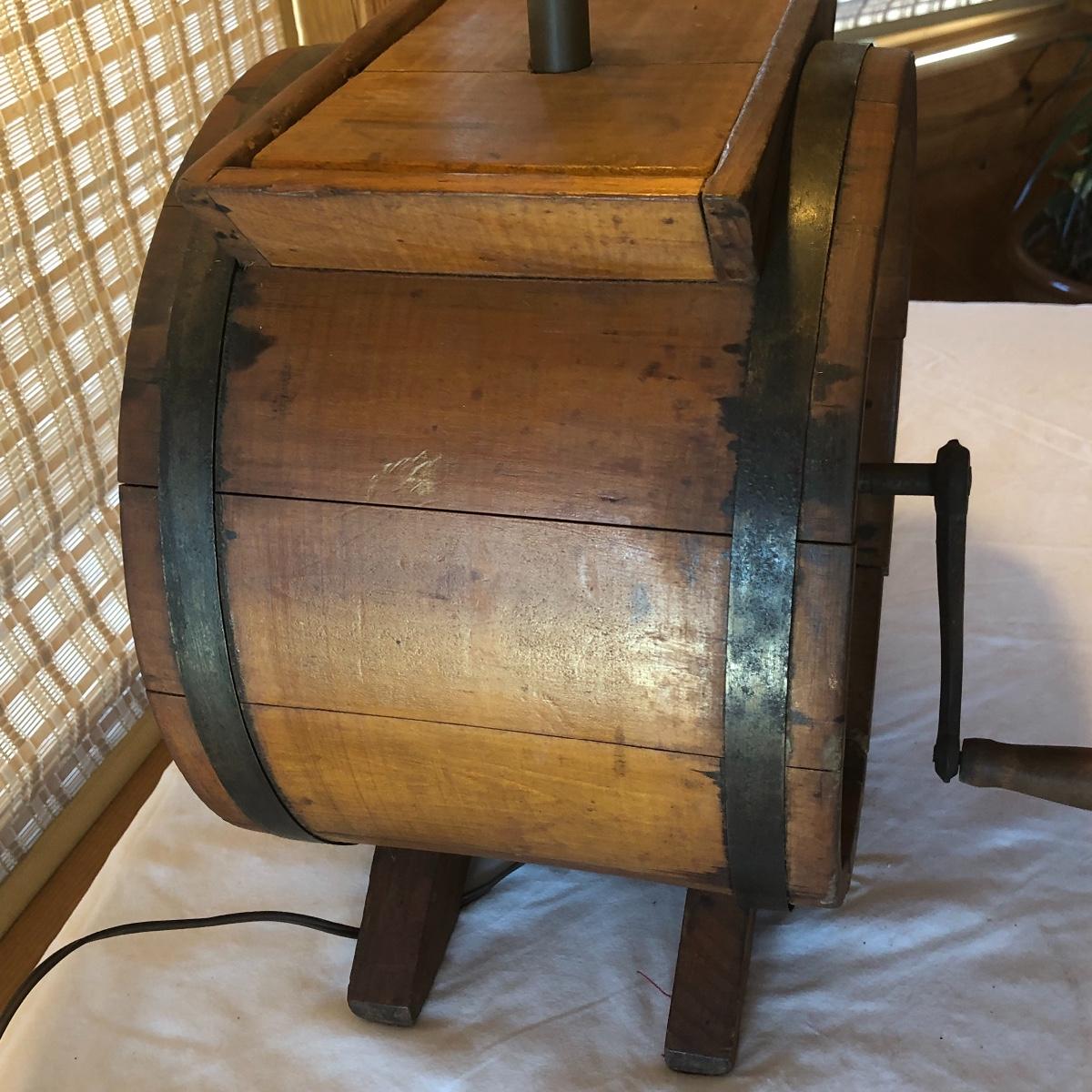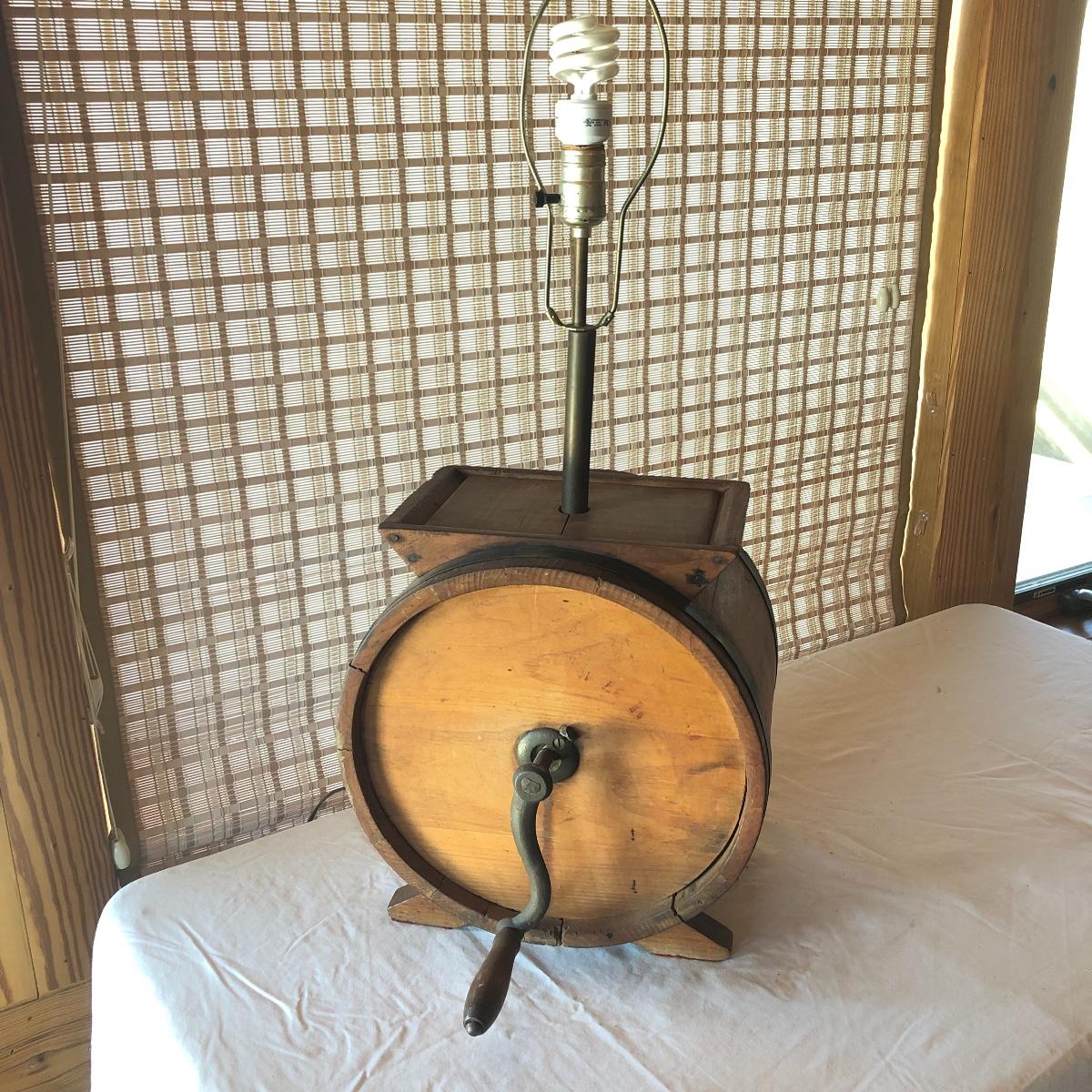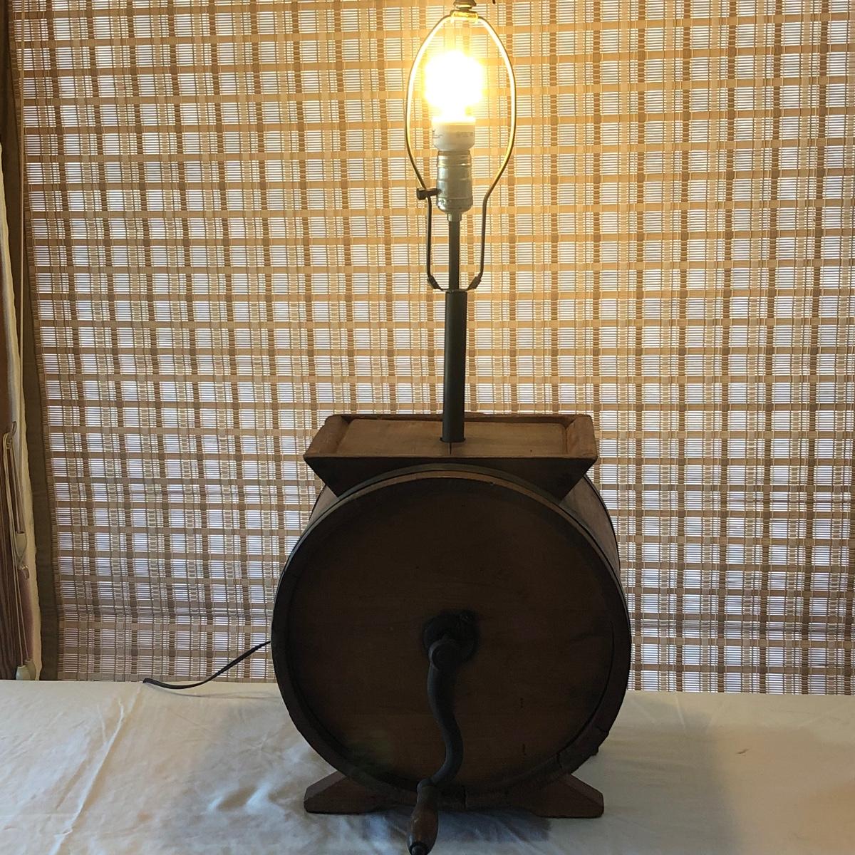Antique Wooden Butter Churn Lamp w/Cow Stencil (G-KM)