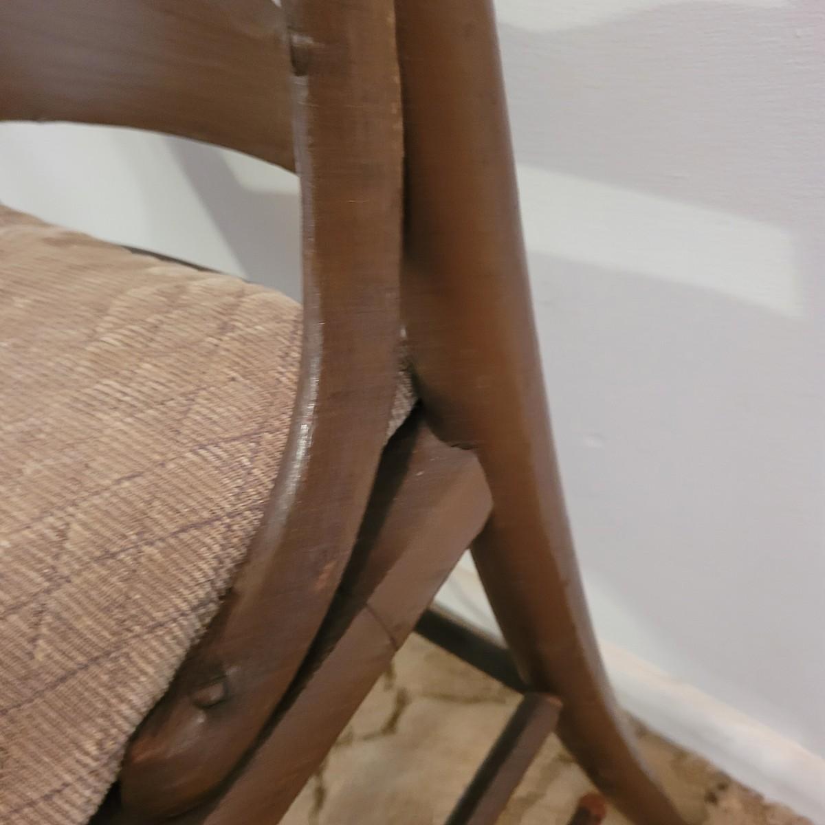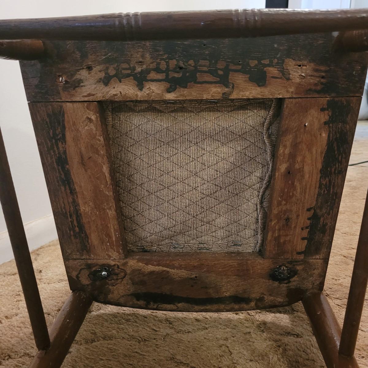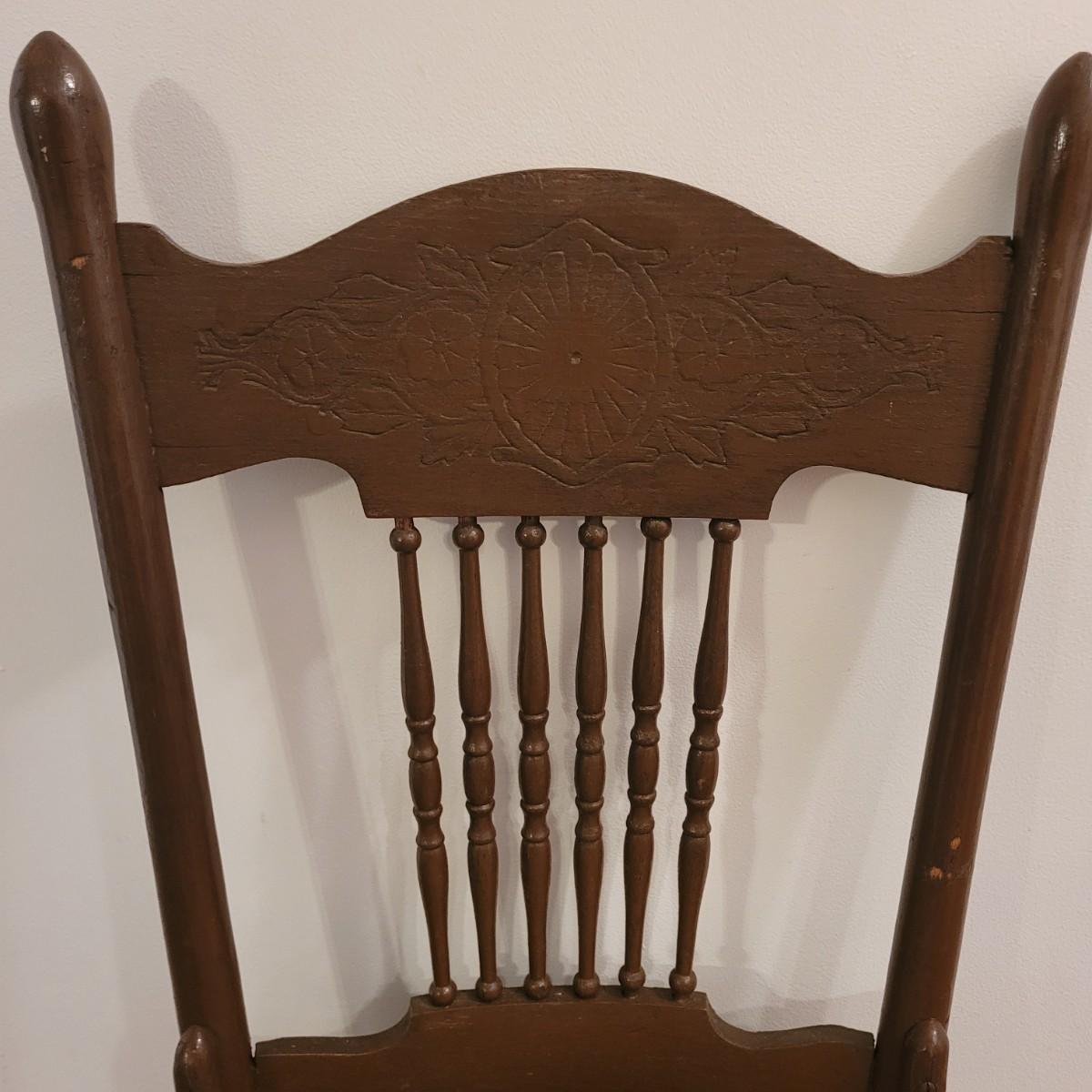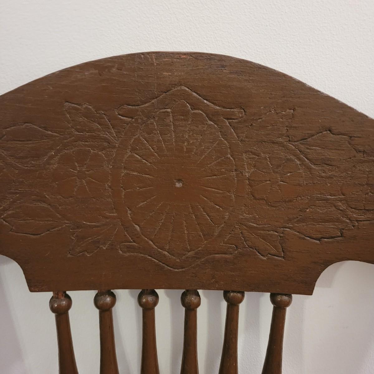 This lot includes one wooden chair with attached cushion. The chair features fine carvings and examples of skilled wood turning. The chair measures 18" x 18" x 42"H with a seat height of 18.5".
