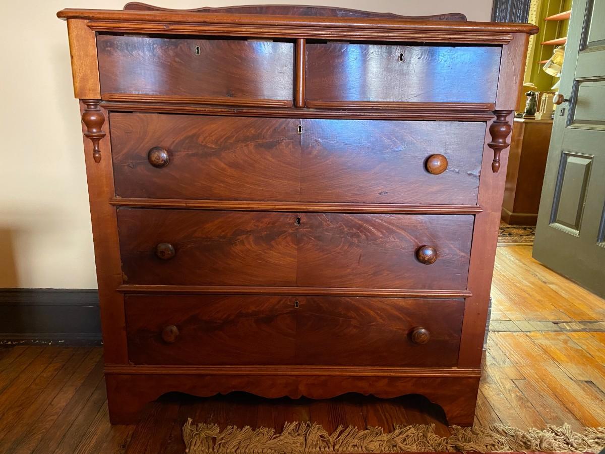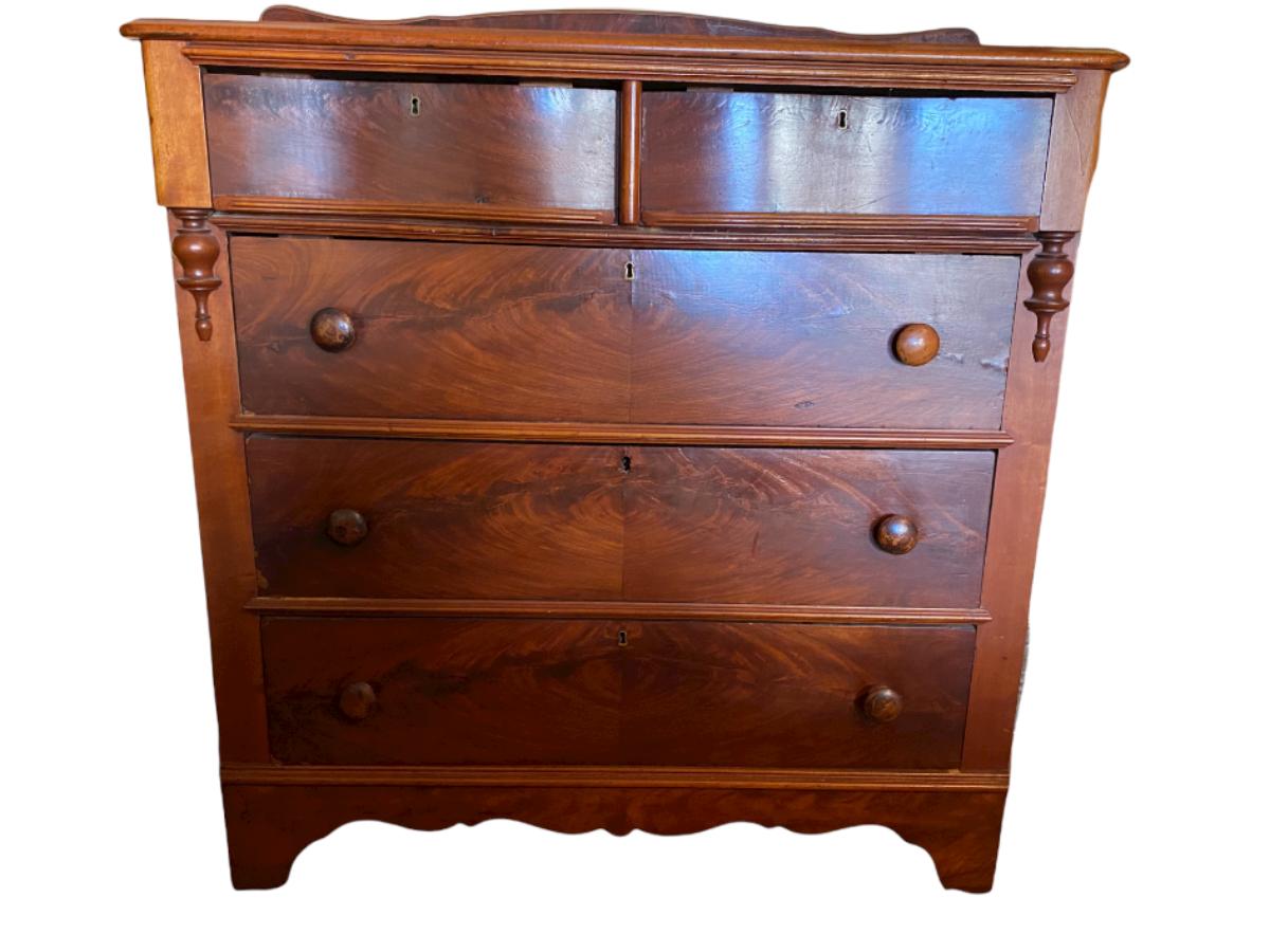 Antique Wooden Chest With Five Drawers And Wood Pull Knobs - JB11195
