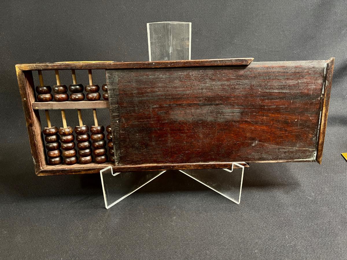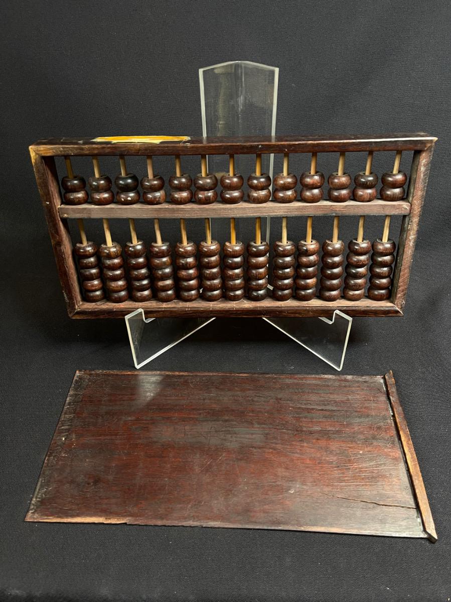DESCRIPTION: This antique abacus has been fitted with a protective sliding panel, allowing it to travel safely on the road for place-to-place use. The counters show the patina wear of heavy use over an extended period of time, adding to its absolute authenticity! You don’t have to worry about computer failure using this! Fully charged and operational.