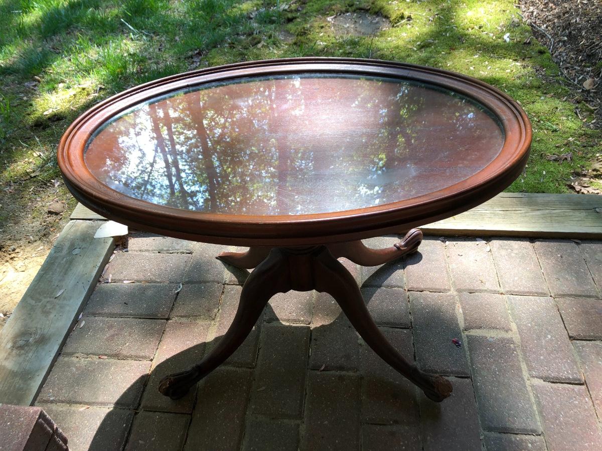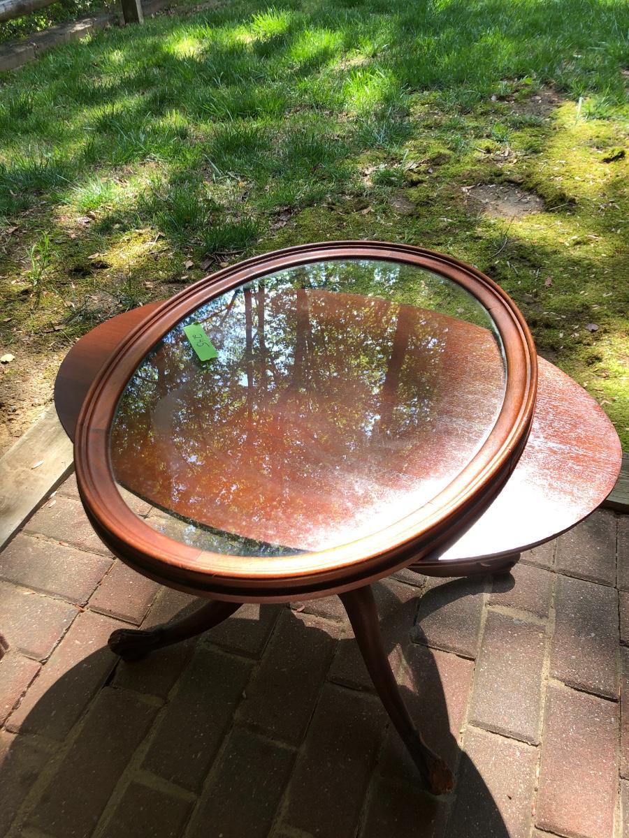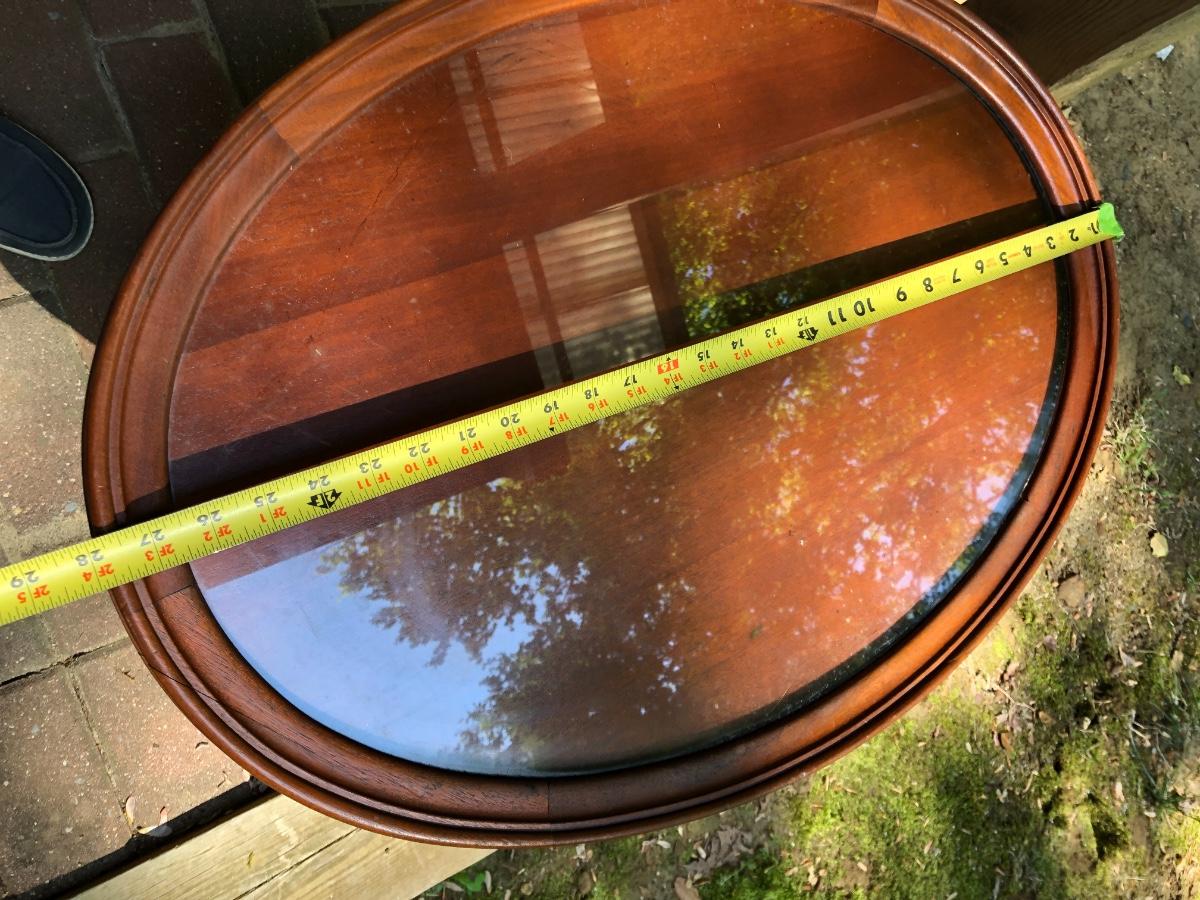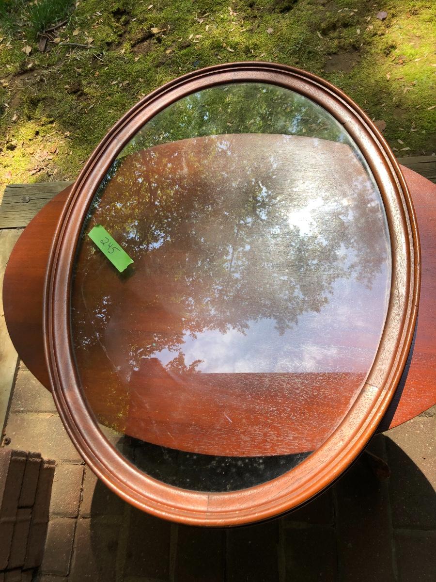 Antique Wooden Glass Top Oval Table (Feet Damaged) -Lot 245