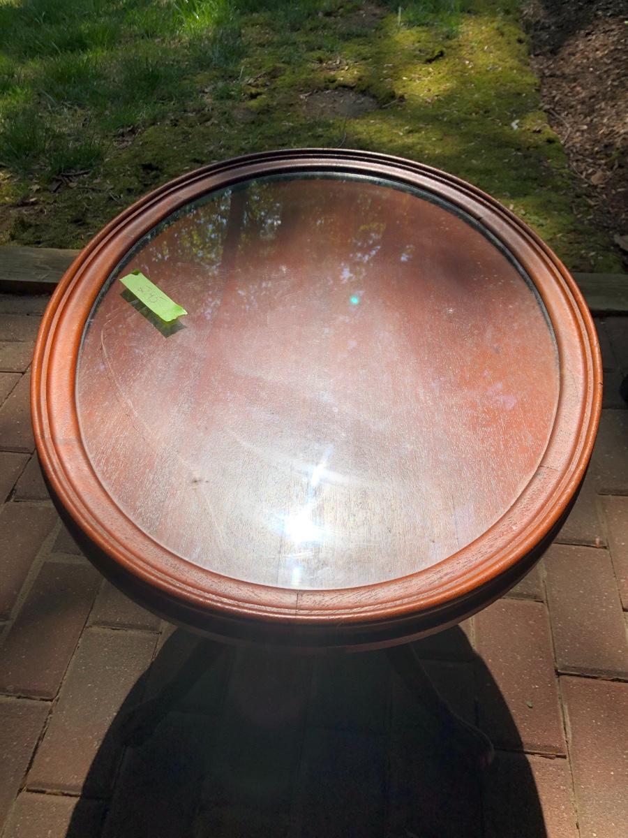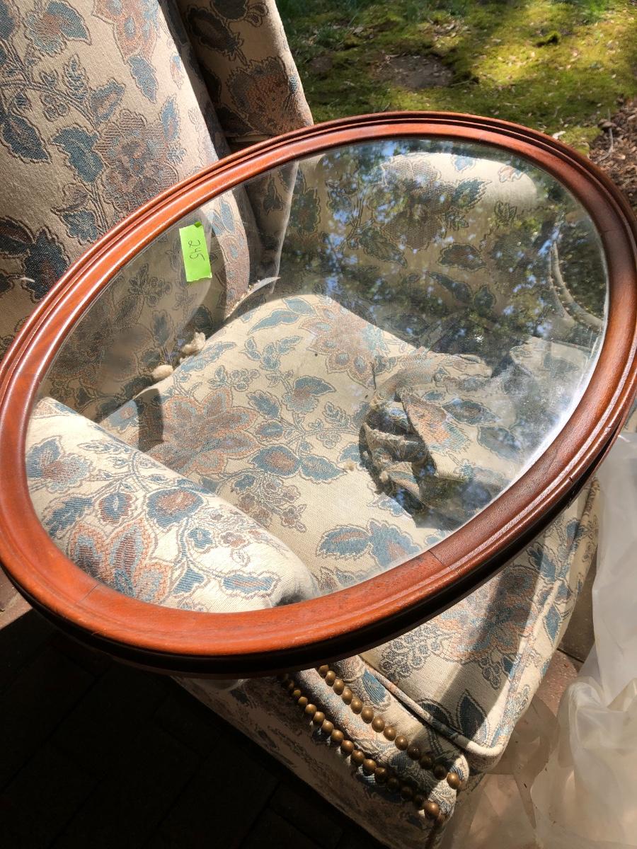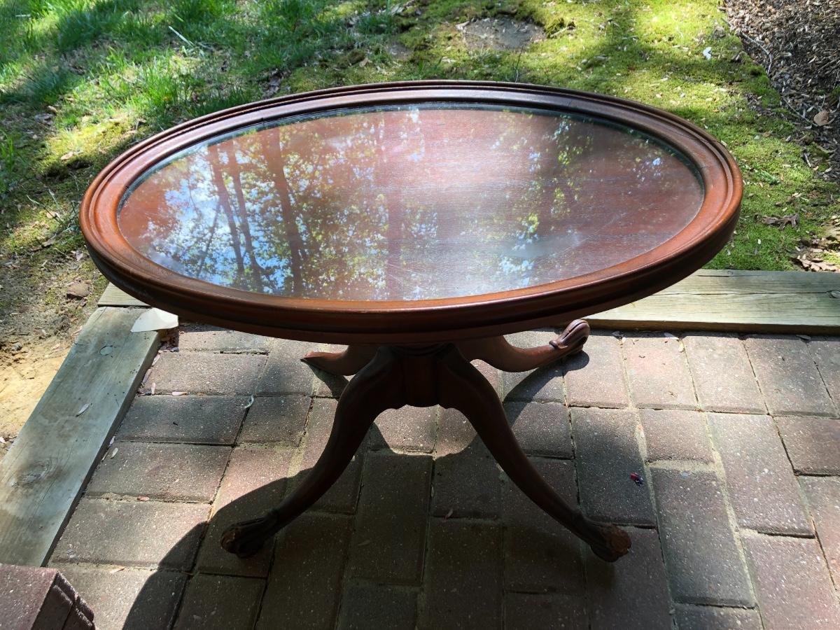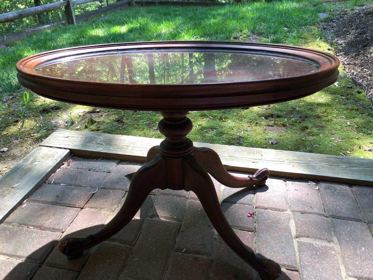 Antique Wooden Glass Top Oval Table (Feet Damaged) -Lot 245
