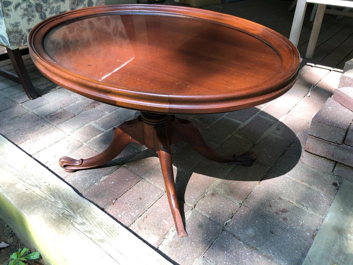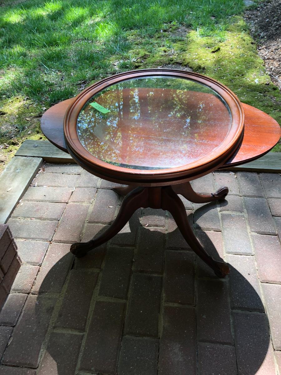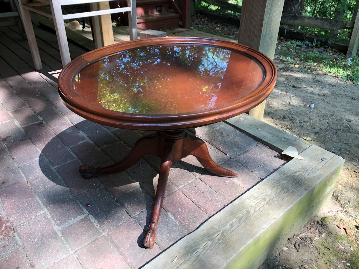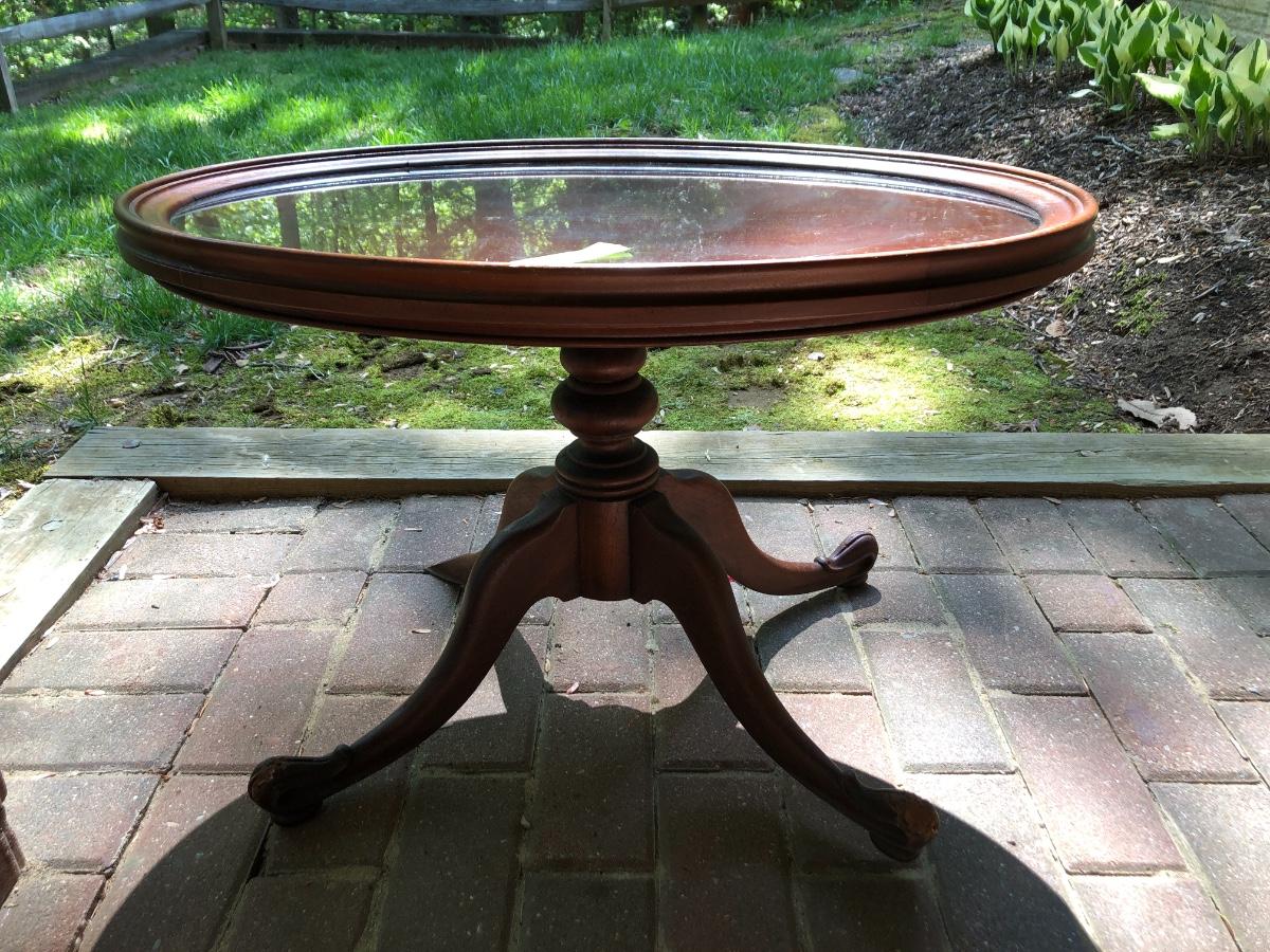 Antique Wooden Glass Top Oval Table (Feet Damaged) -Lot 245