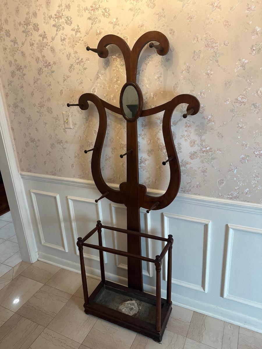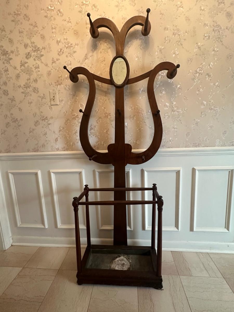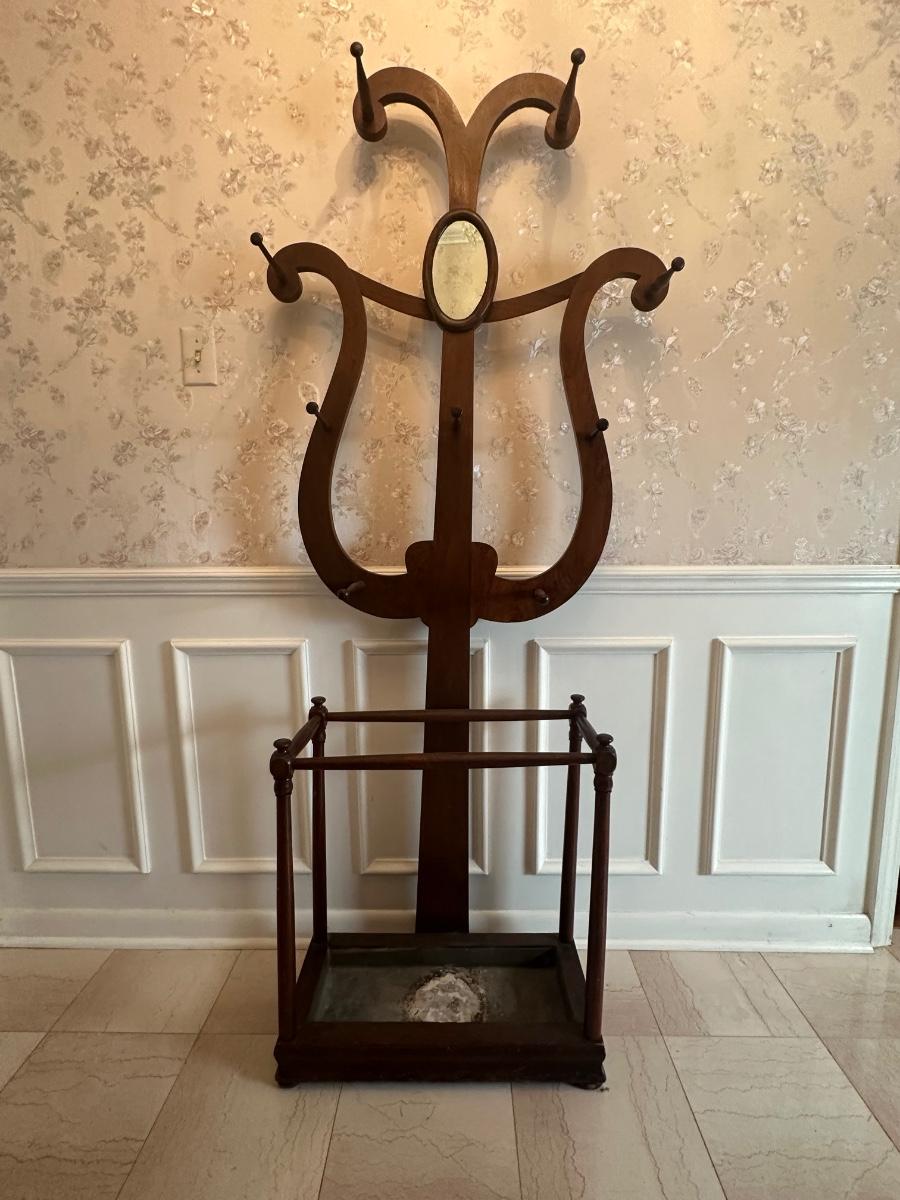 Antique Wooden Hall Tree with Mirror and Umbrella Stand