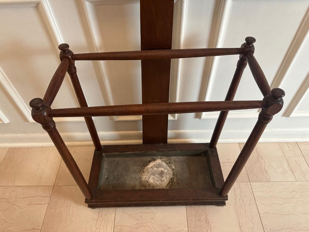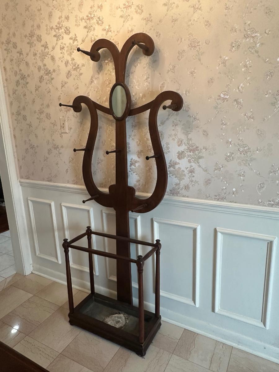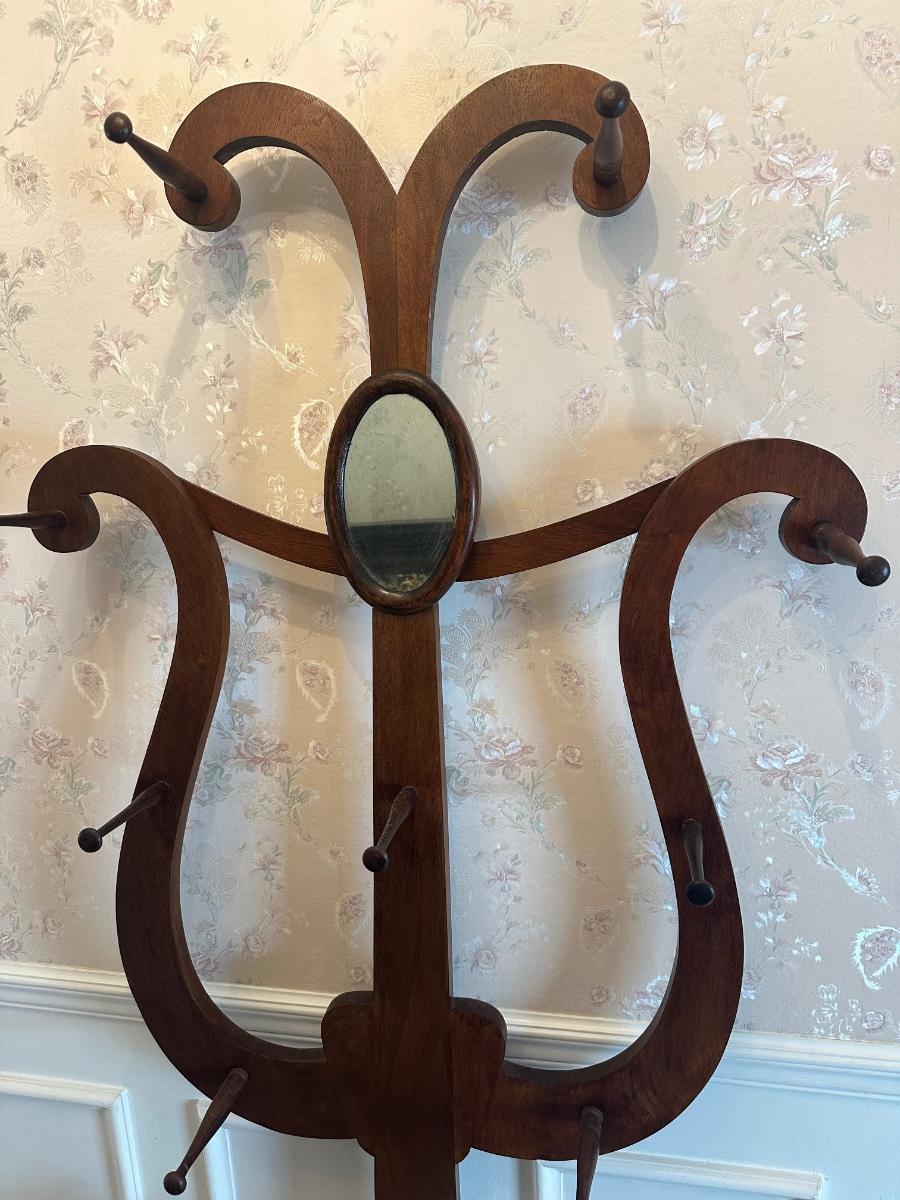Antique Wooden Hall Tree with Mirror and Umbrella Stand