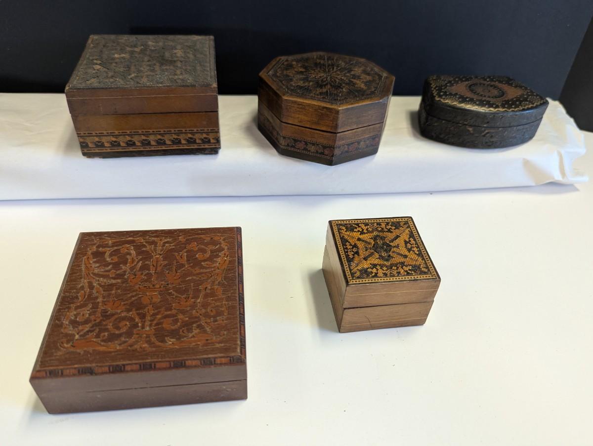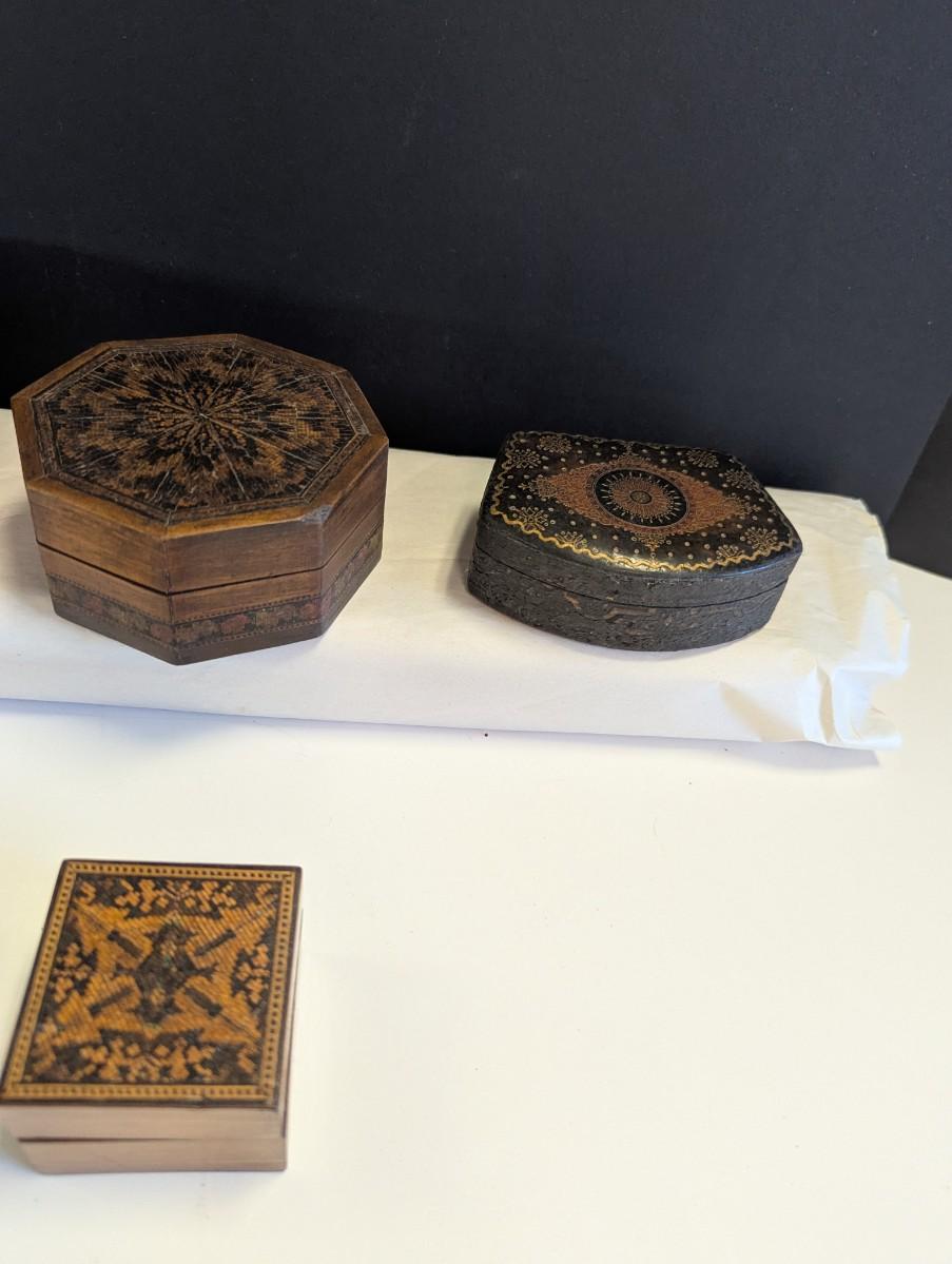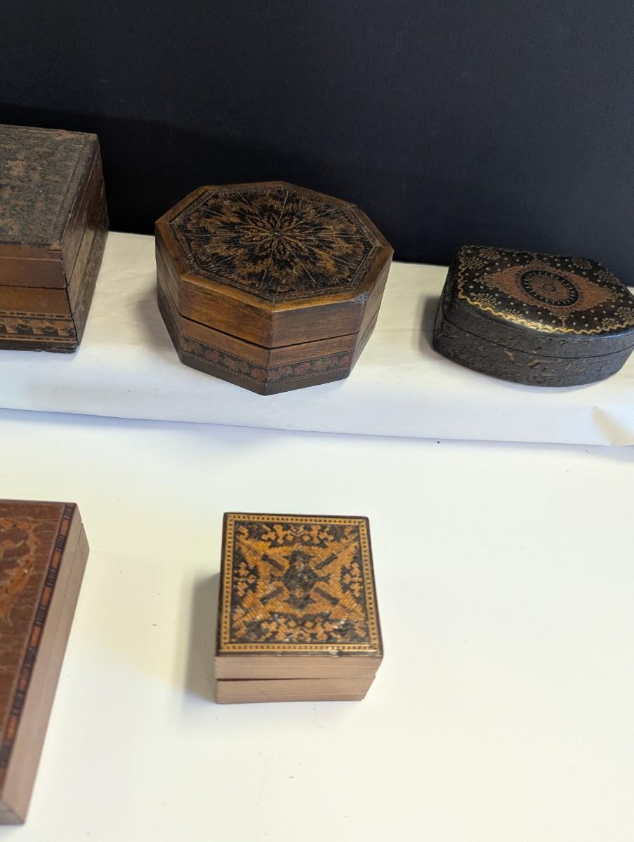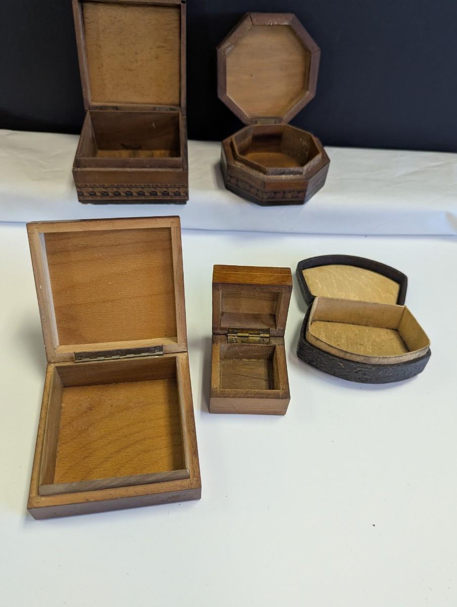Antique Wooden Hinged Trinket Jewelry Boxes #5