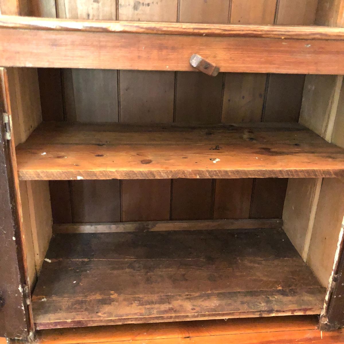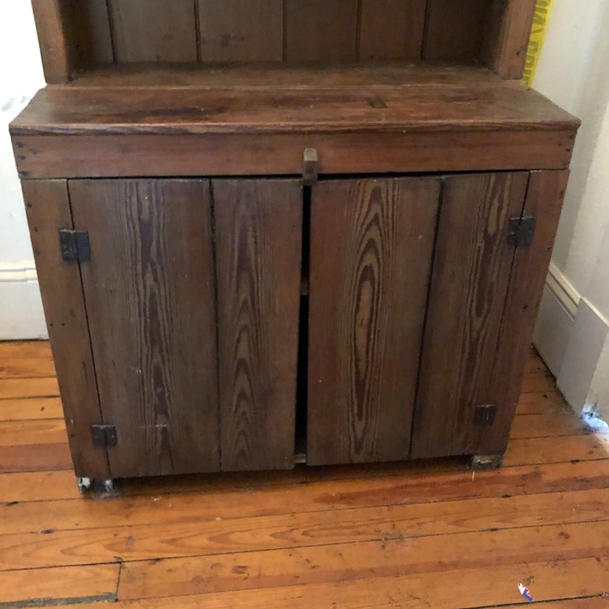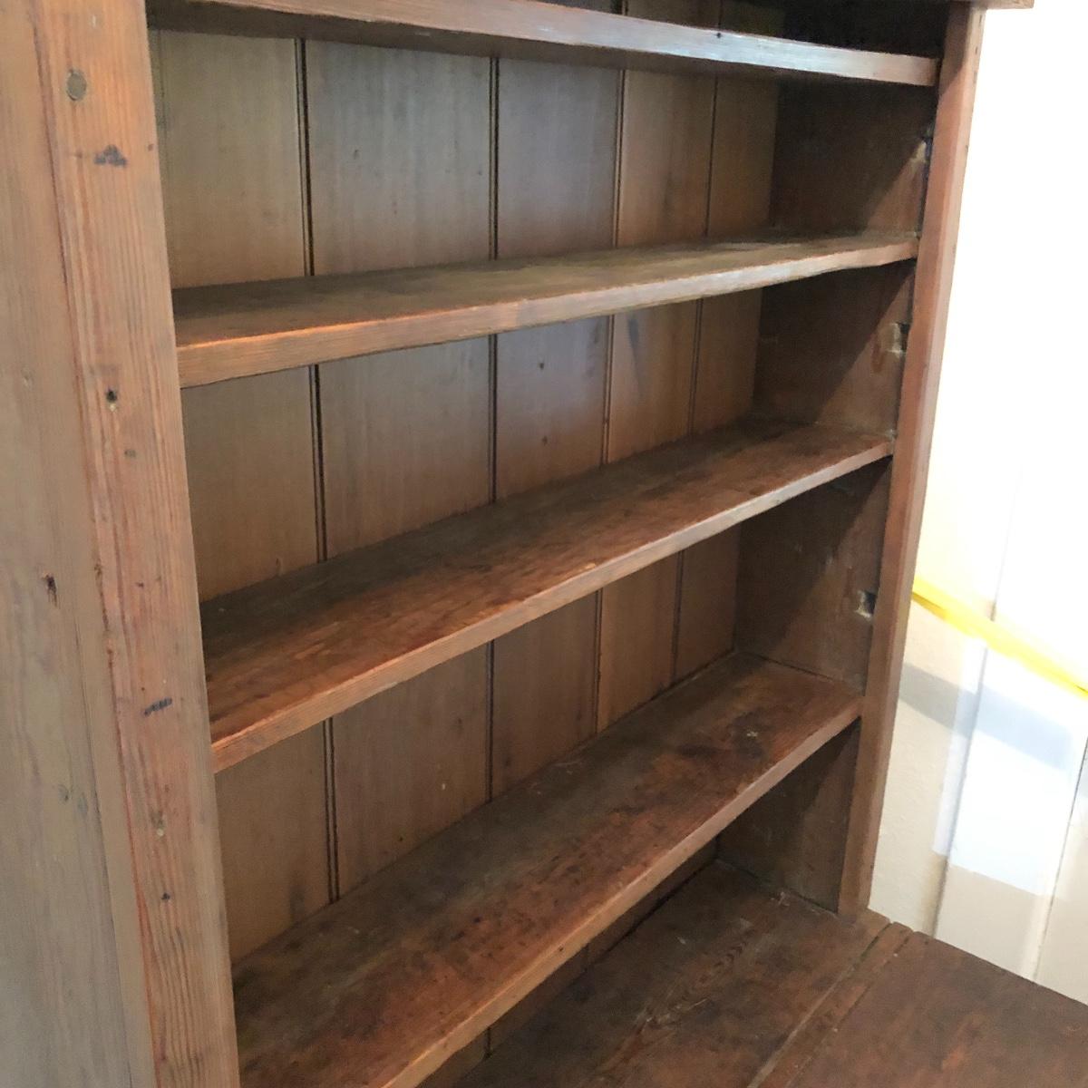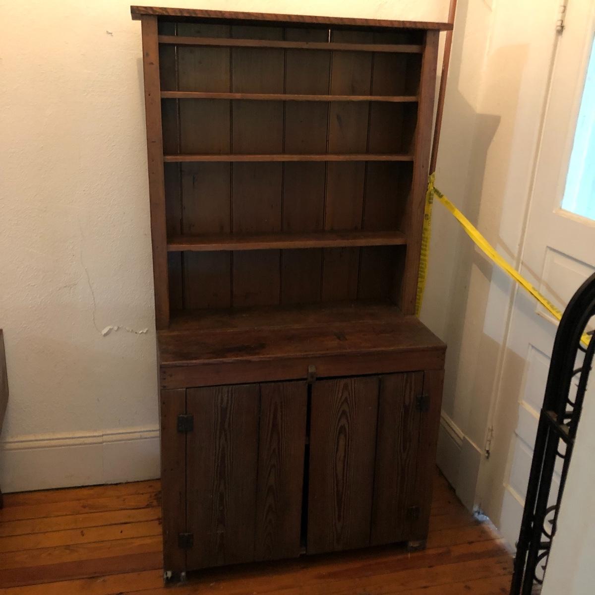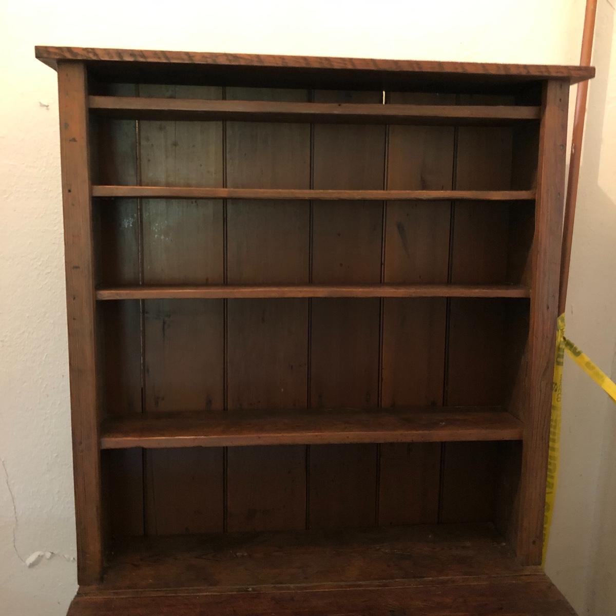 Lot includes wooden hutch with four shelves and one shelf inside cabinet.
