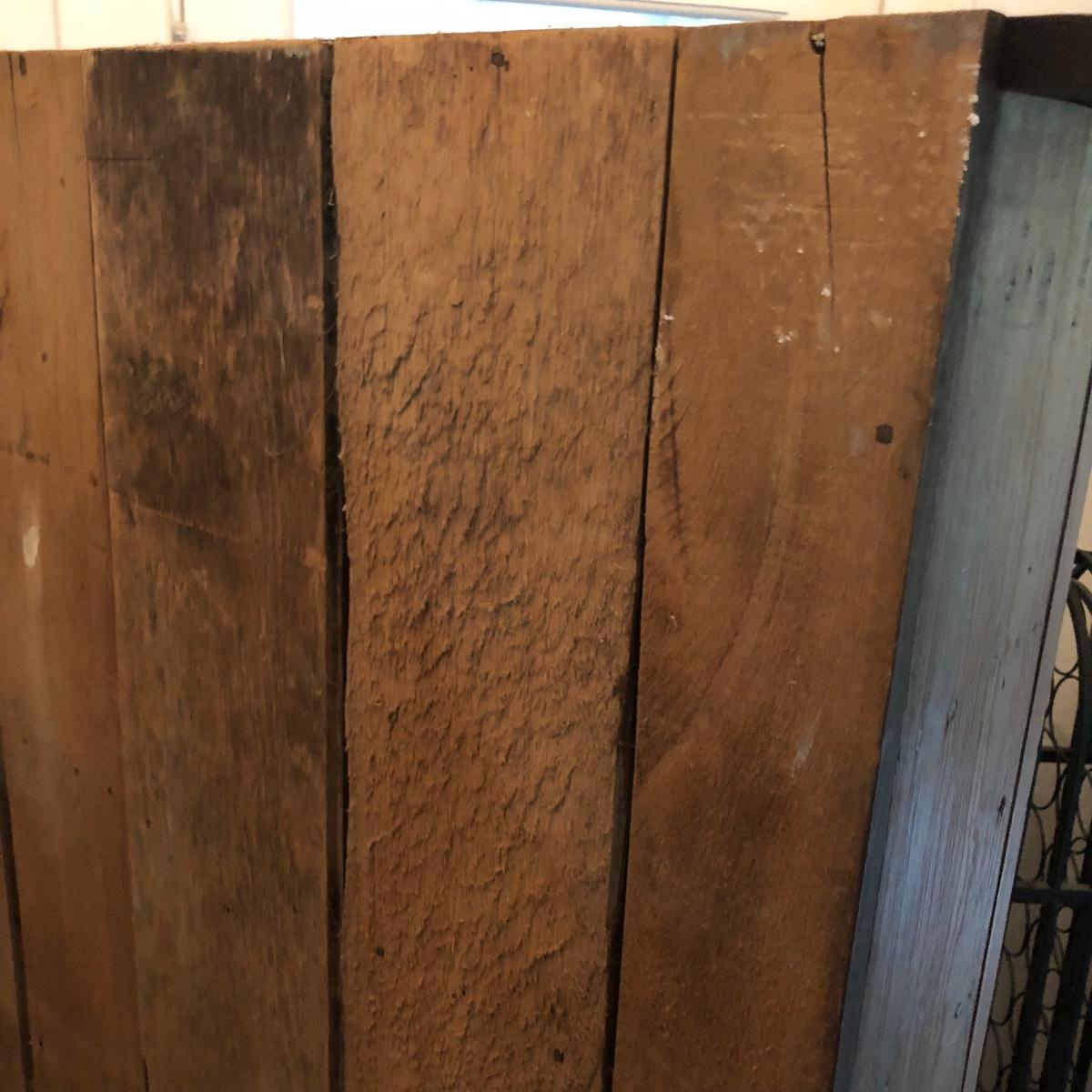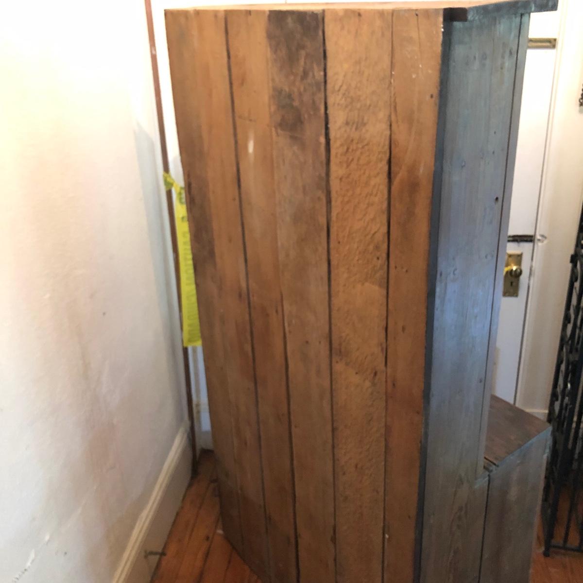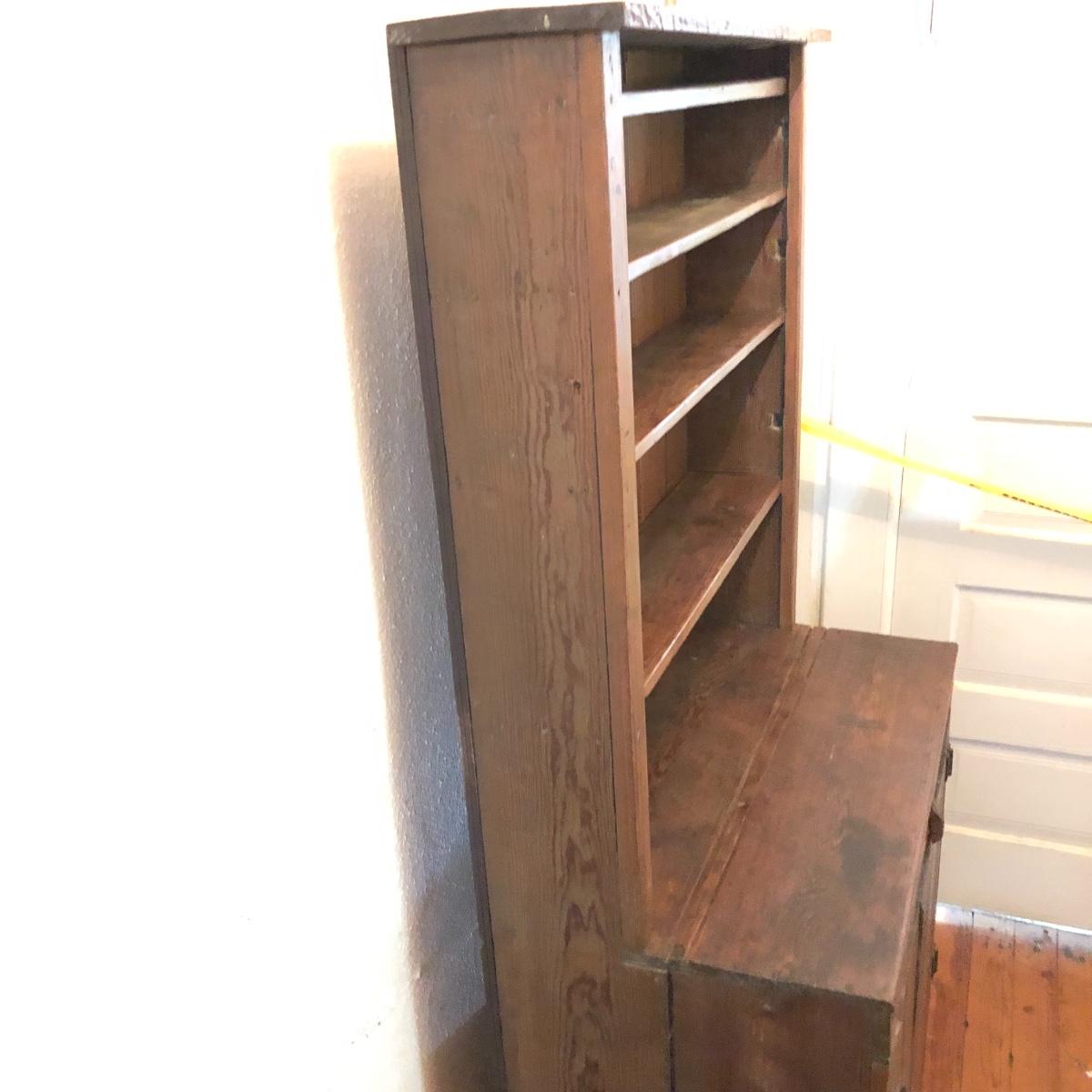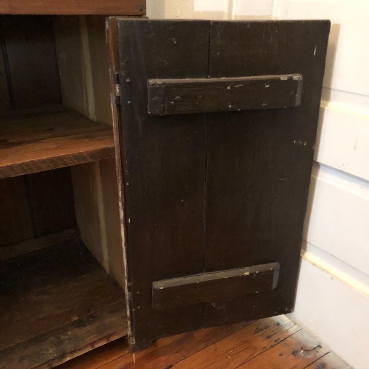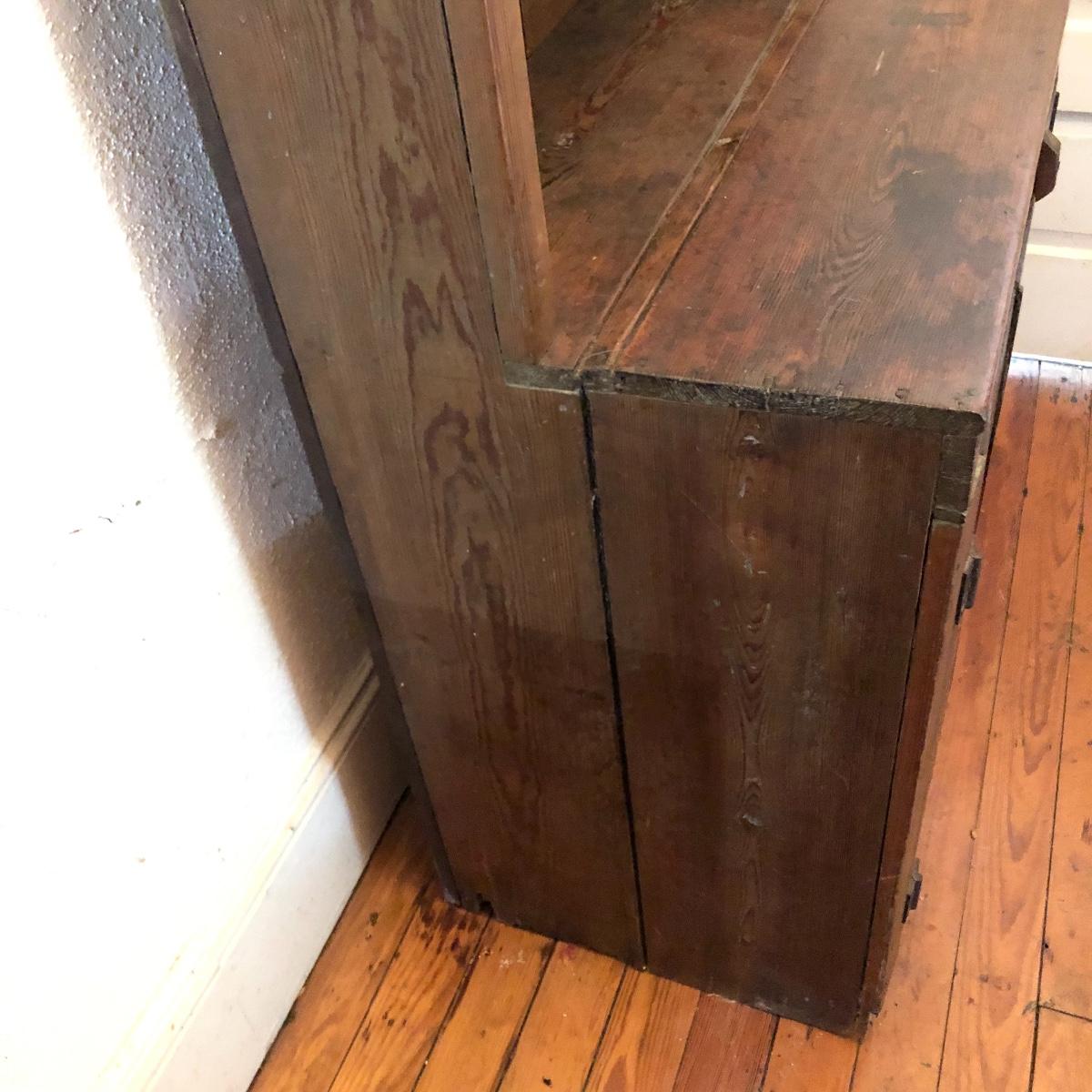 Lot includes wooden hutch with four shelves and one shelf inside cabinet.