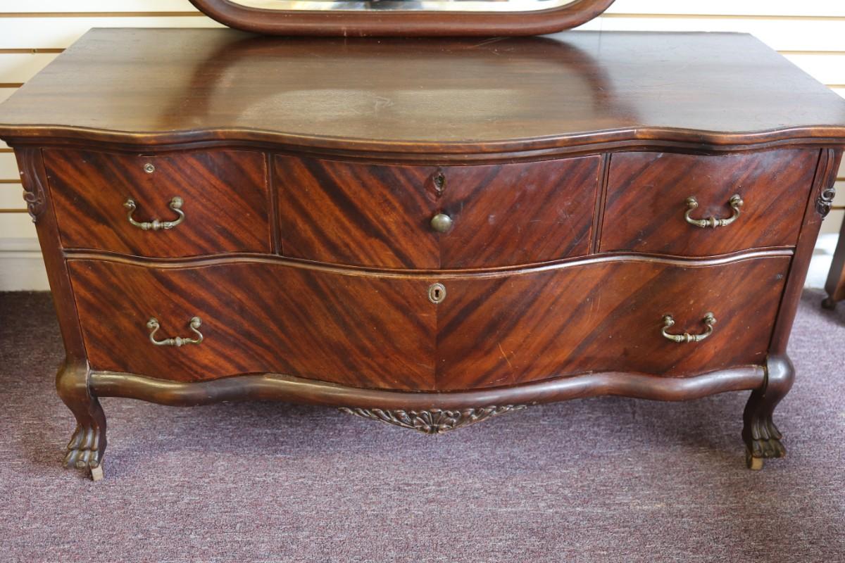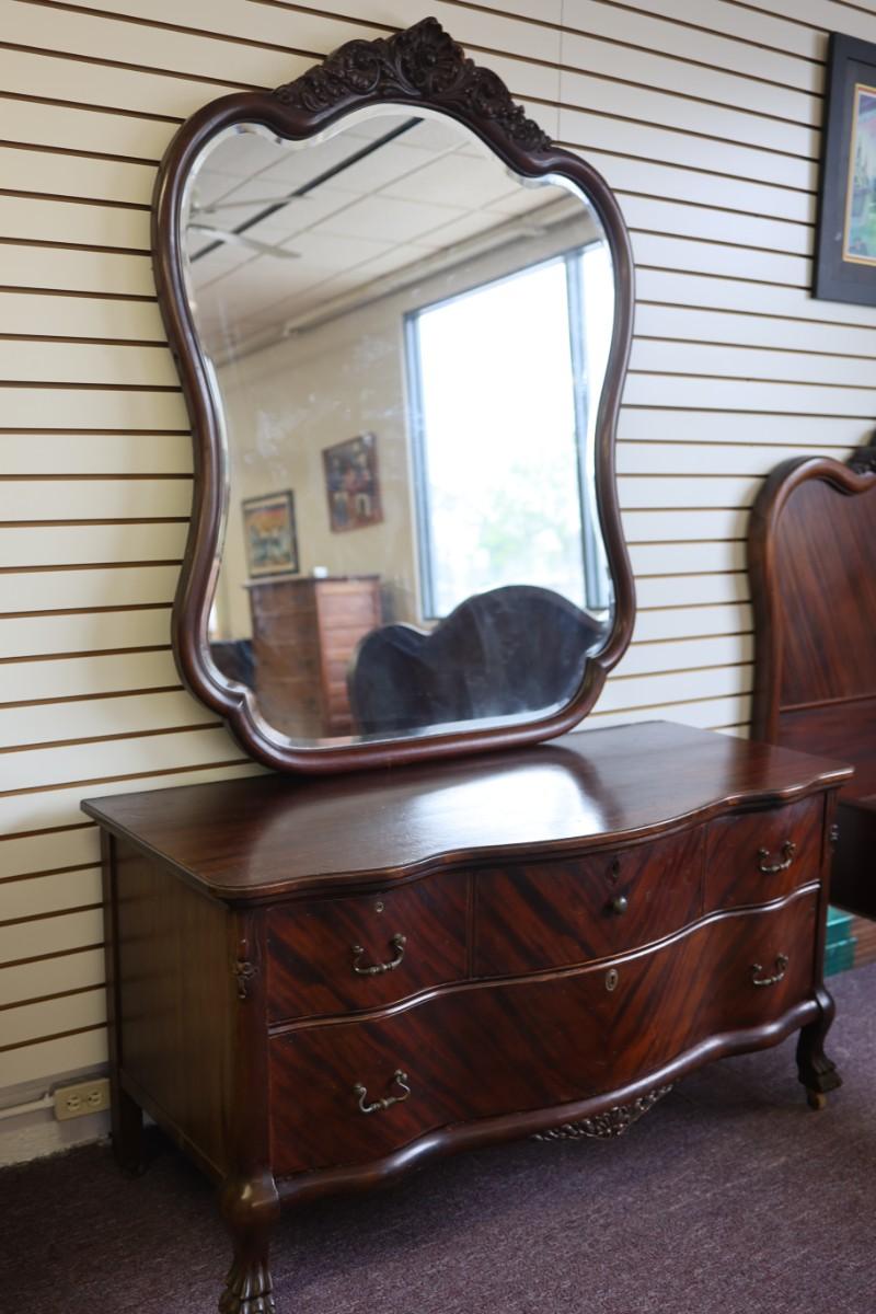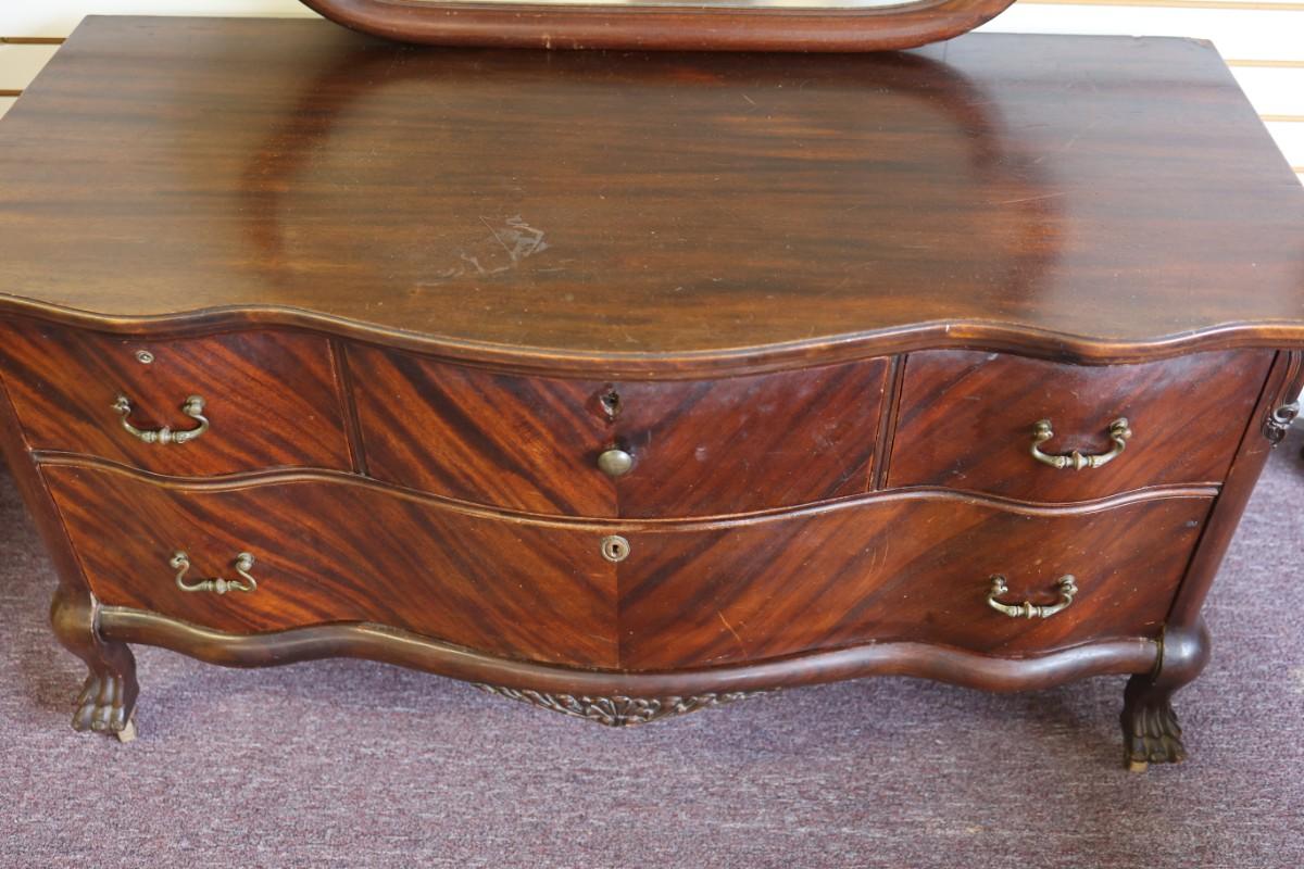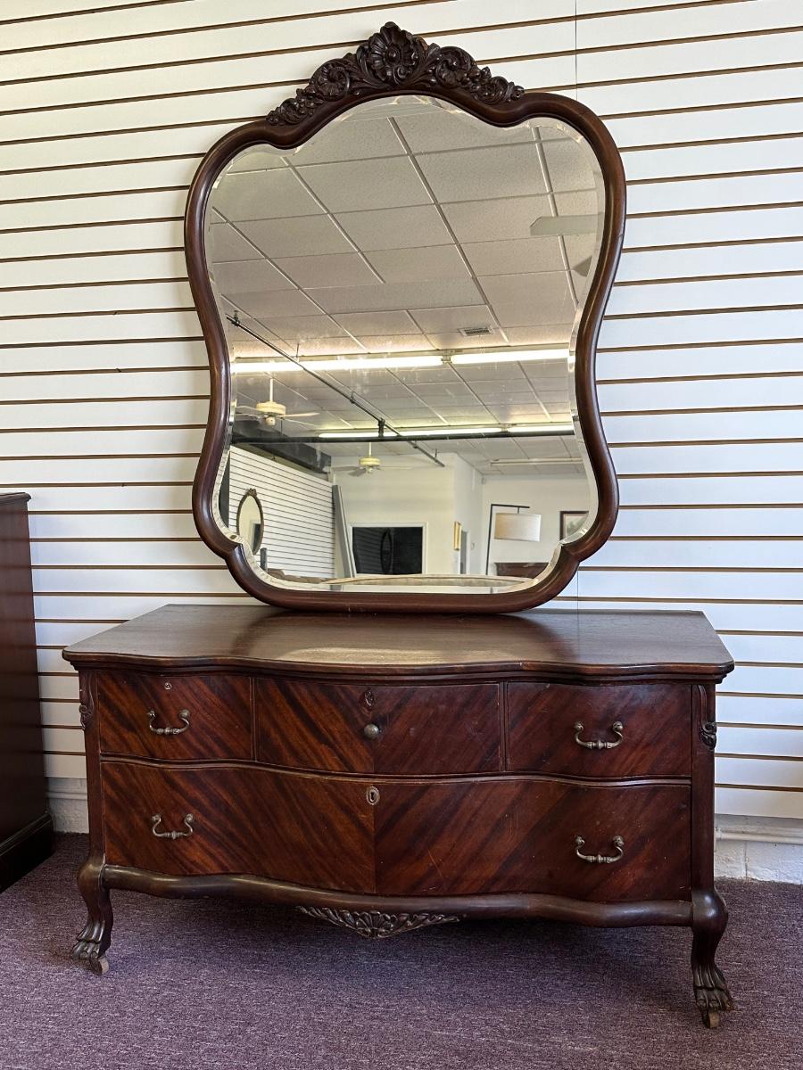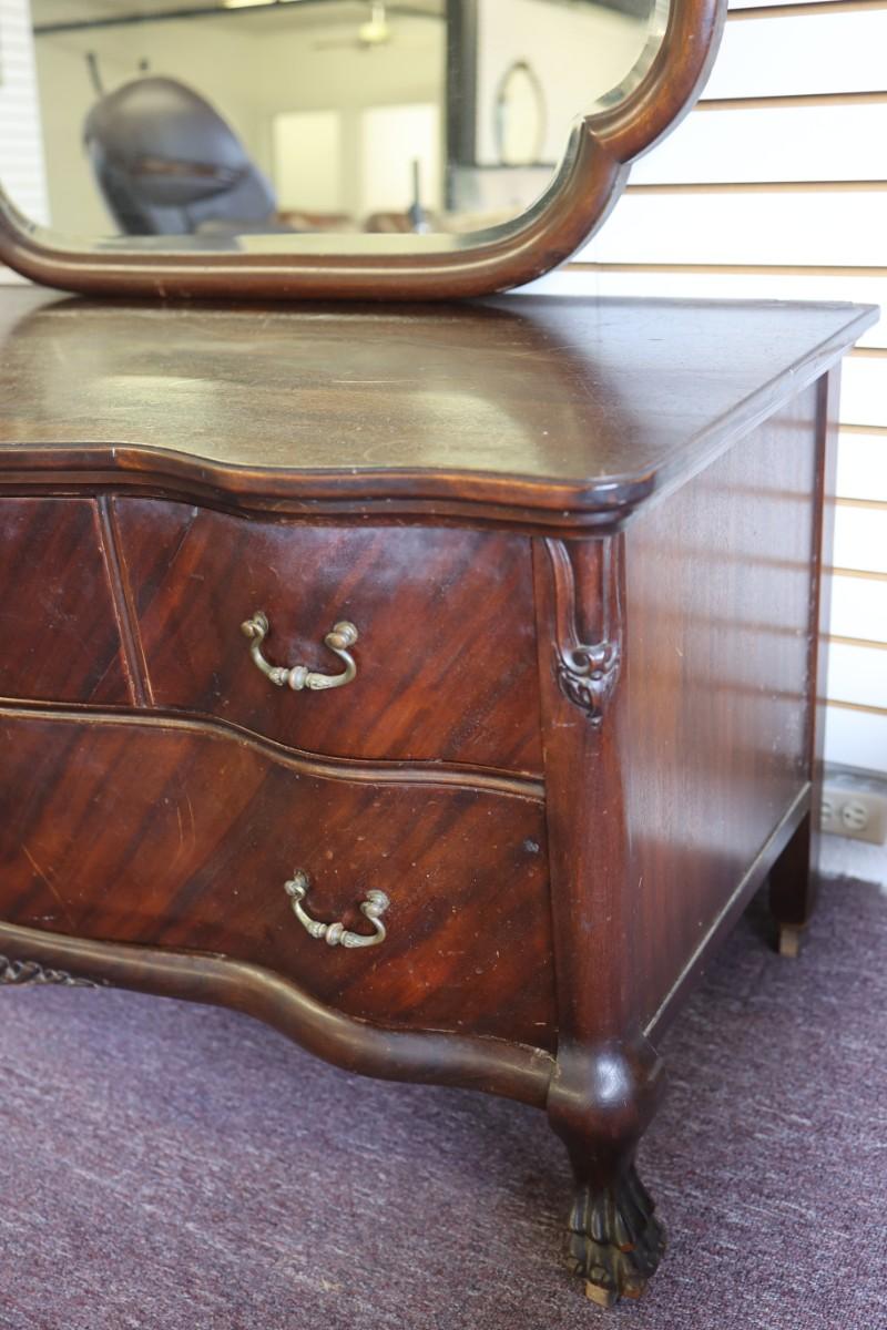 Antique Solid Lowboy Dresser with Large Mirror