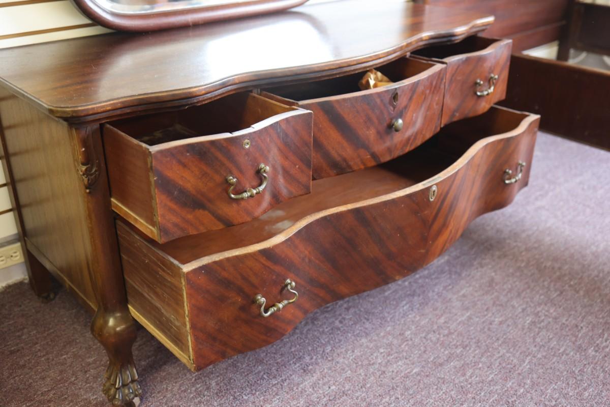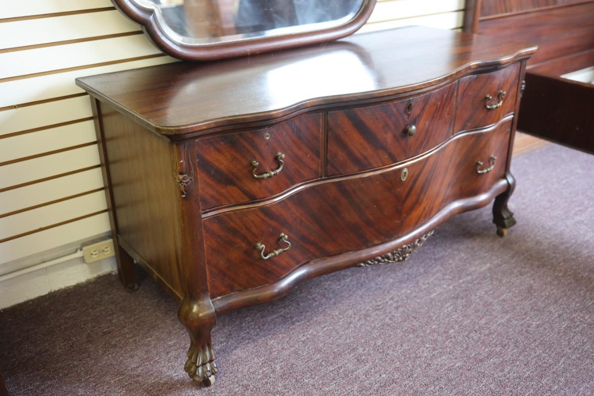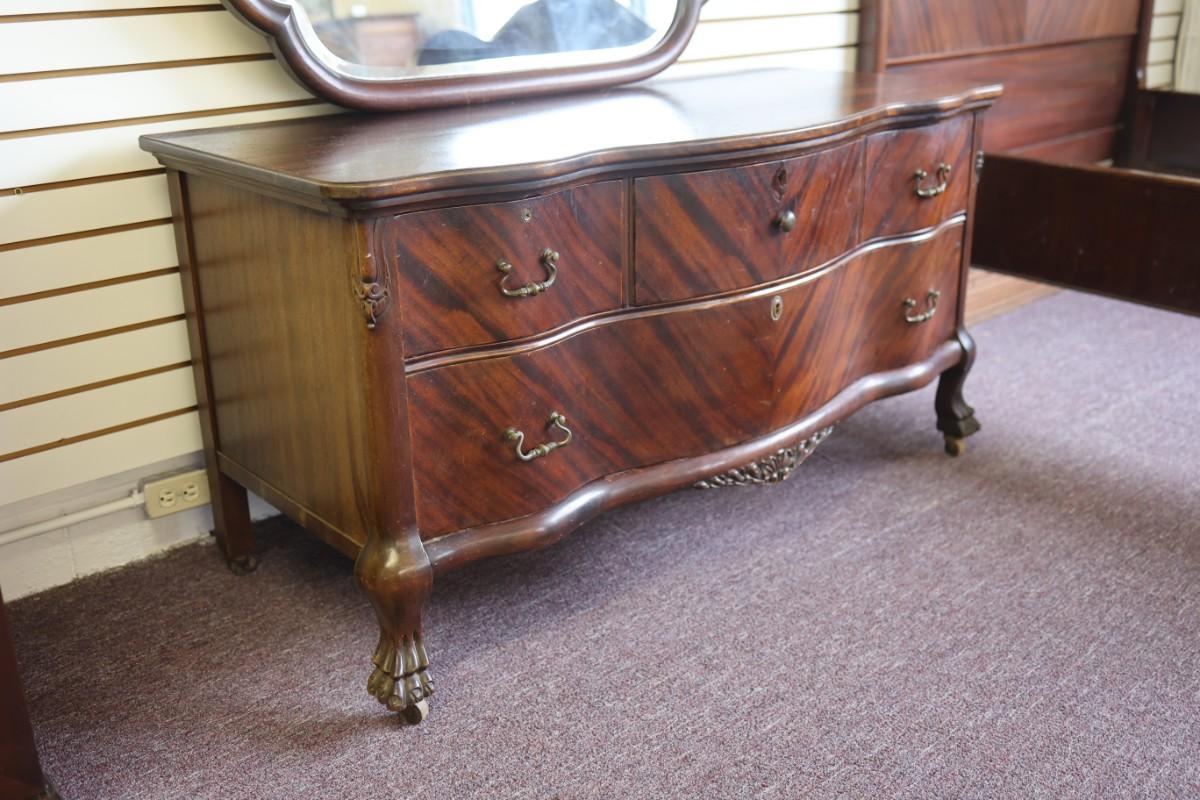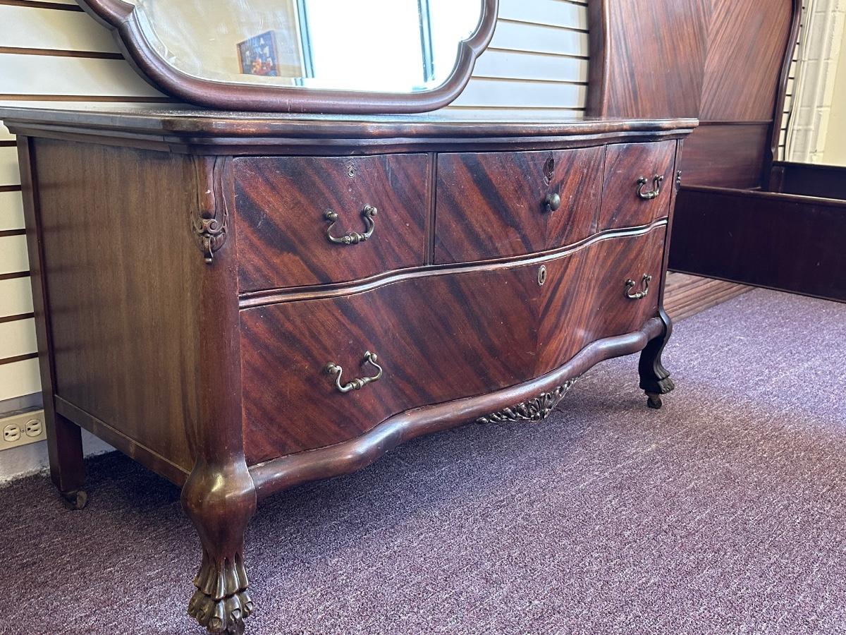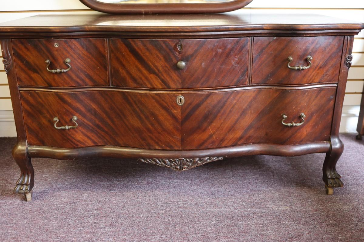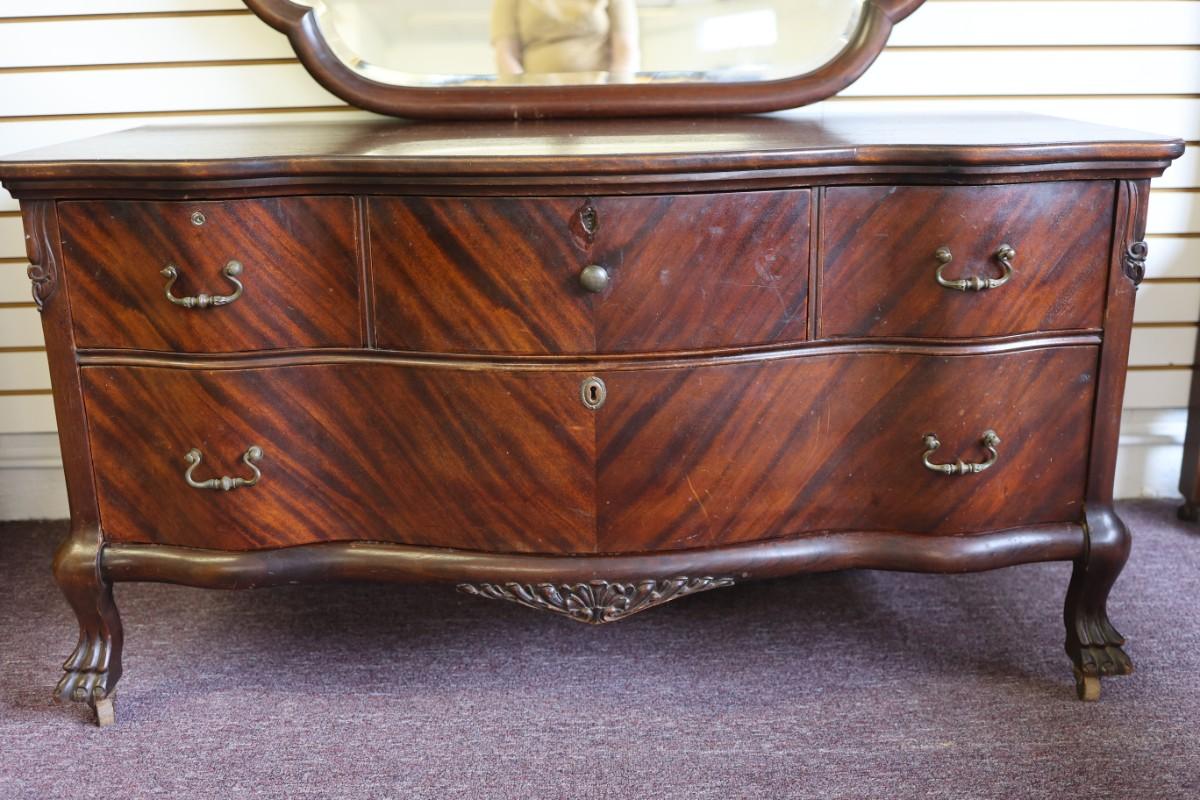 Antique Solid Lowboy Dresser with Large Mirror