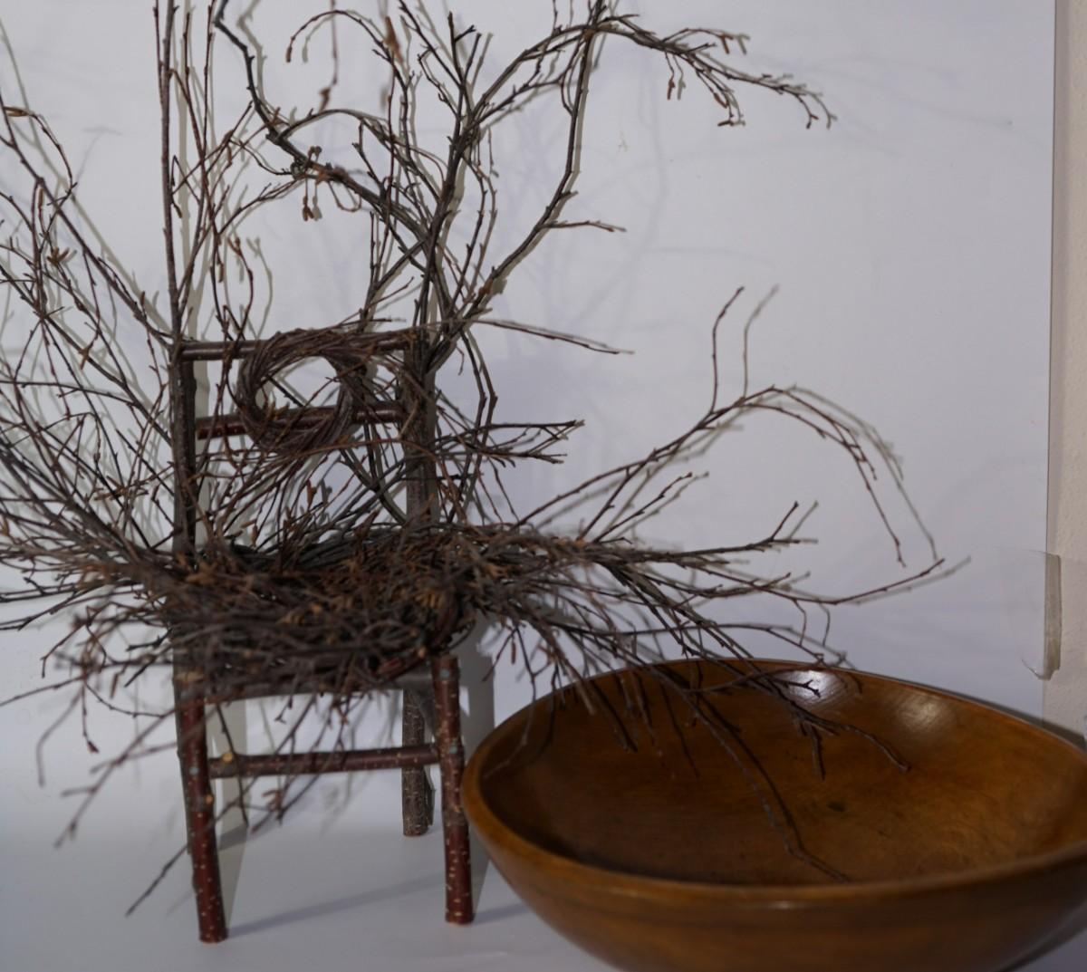 ANTIQUE WOODEN MAPLE TURNED BOWL OF 14" / BENT HICKORY WITH GRAPEVINES DECORATIVE
