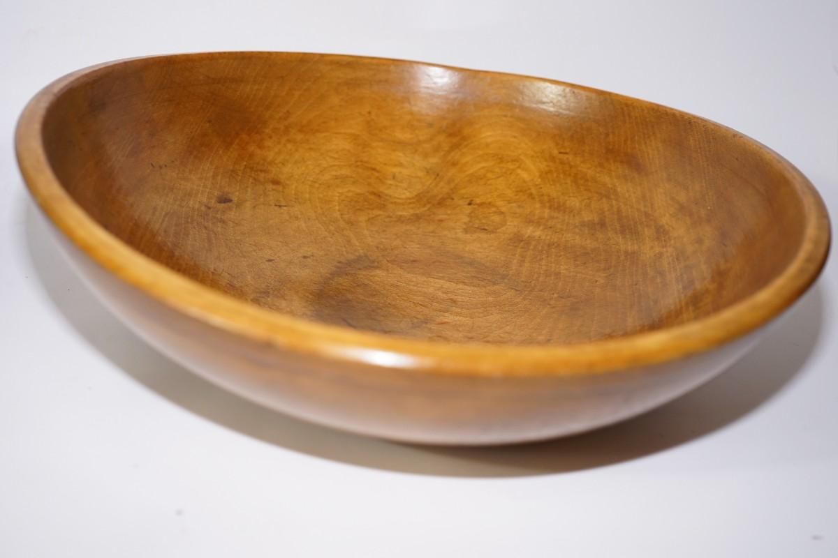 To compliment the 14" maple hand turned wooden antique mixing bowl. The bowl as been restored and has a finish, but it is done well. Some warping (typical with age) is present.