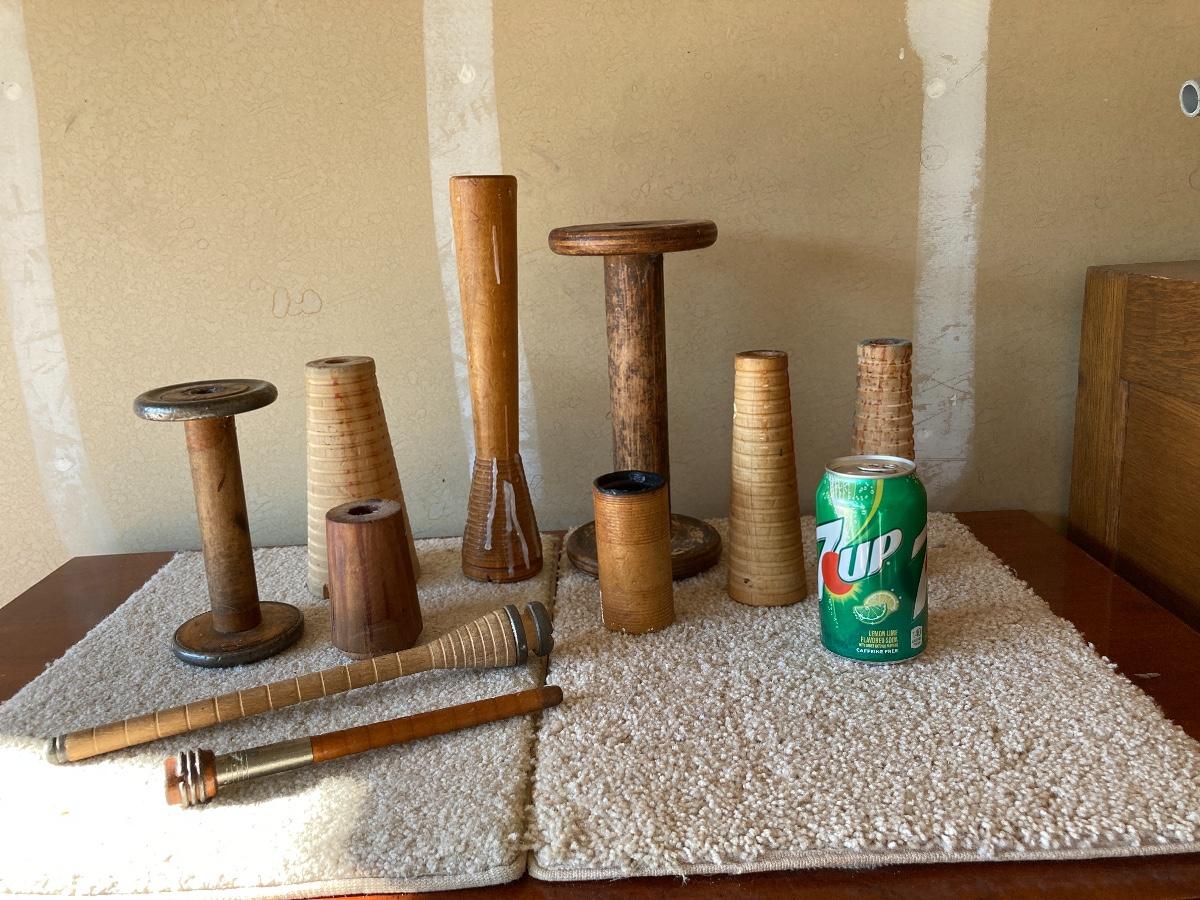 #417 Antique Wooden Spools and Spindles Lot of 10