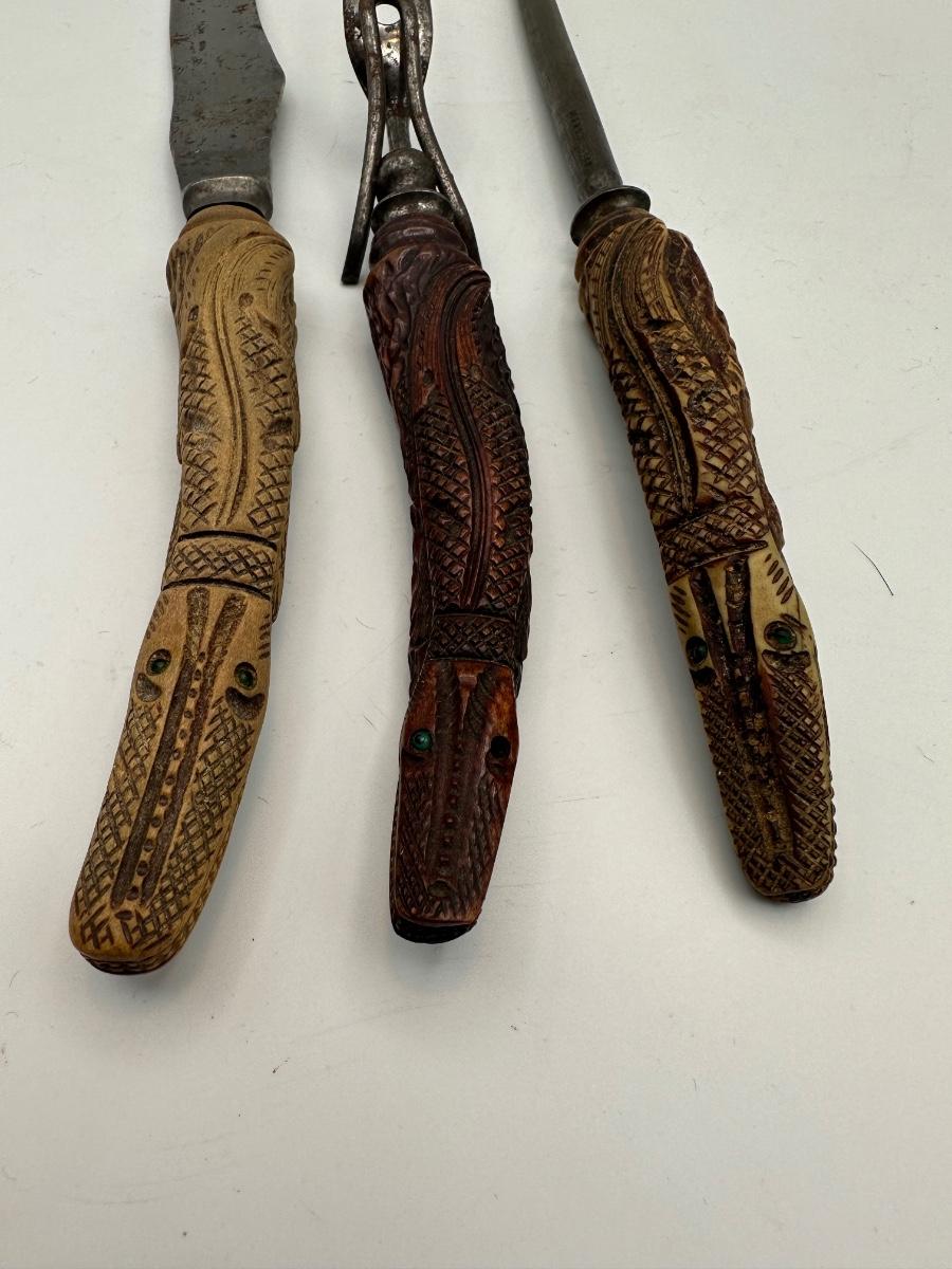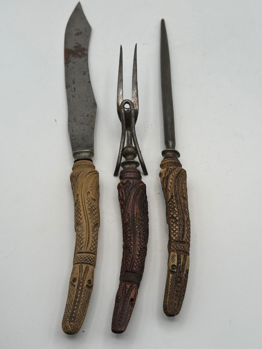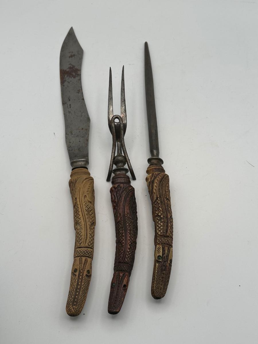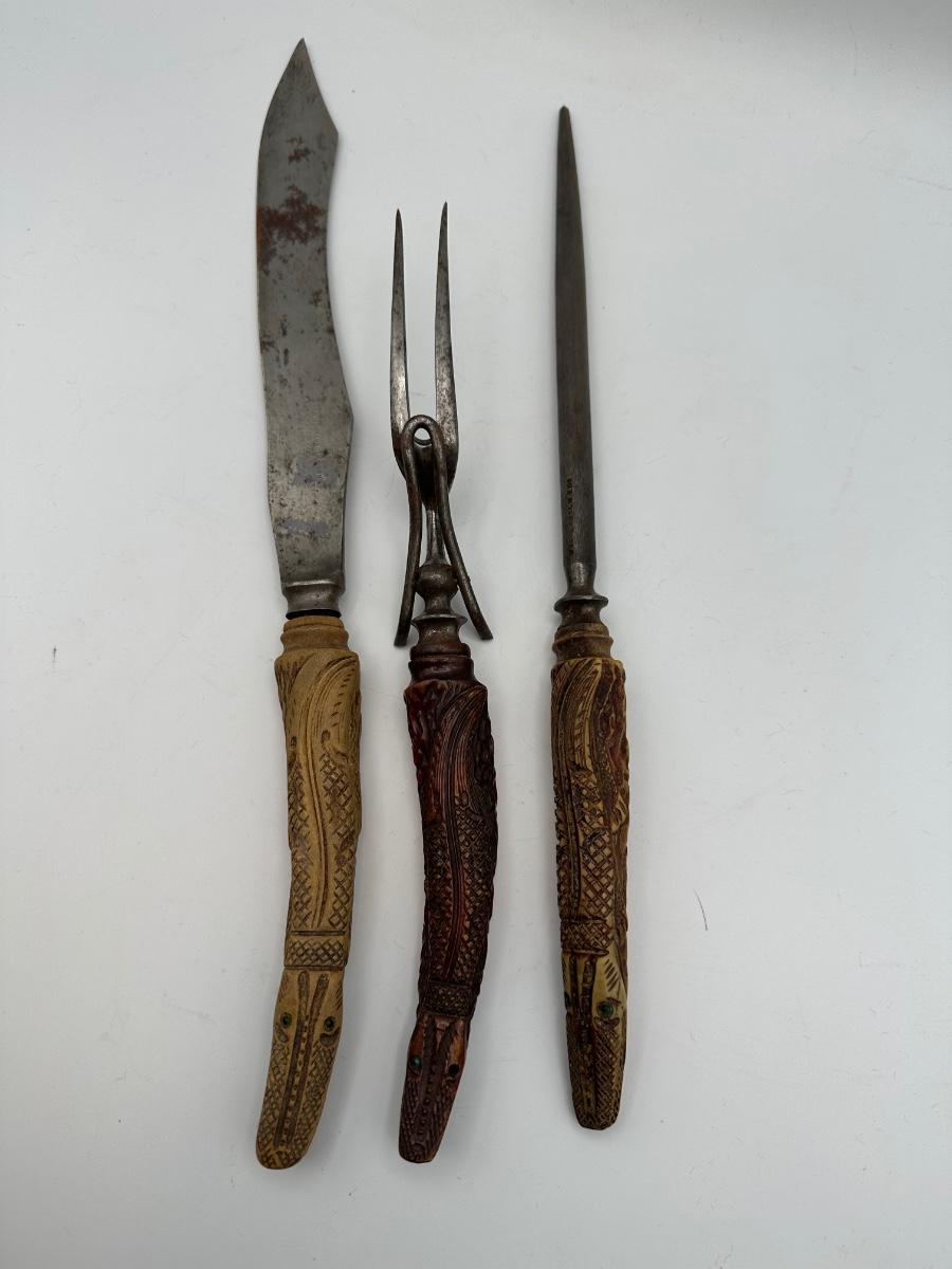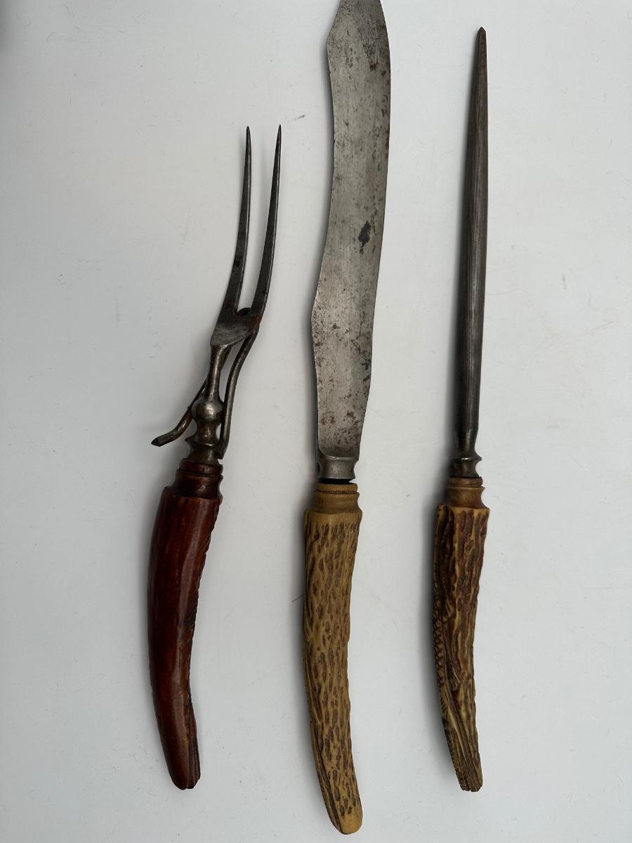 Antique Wostenholm Carving Set w/ Antler/Horn Handles