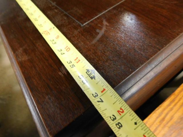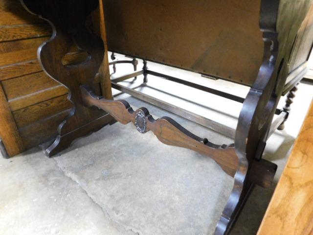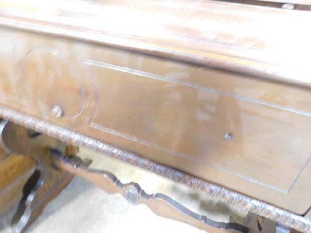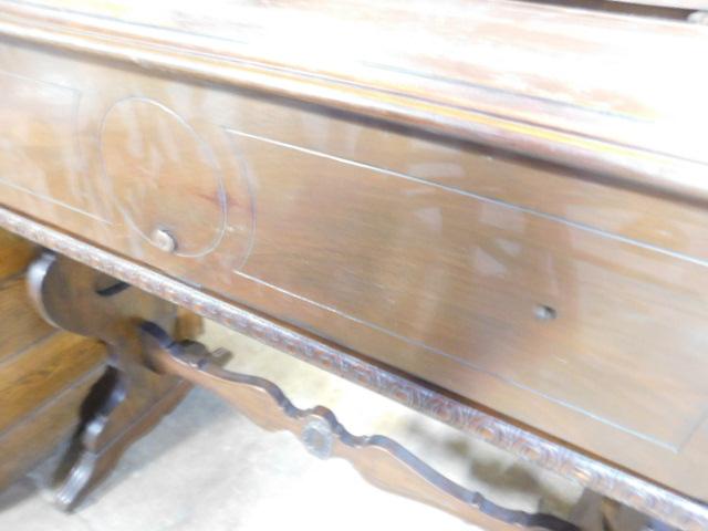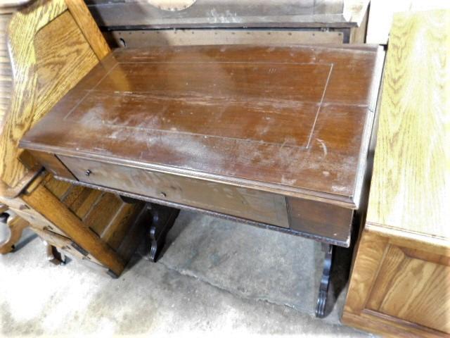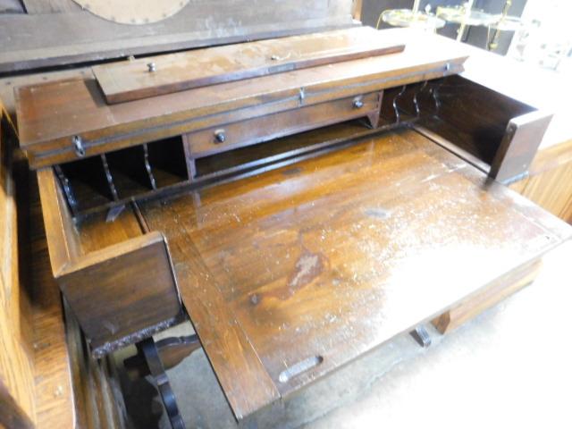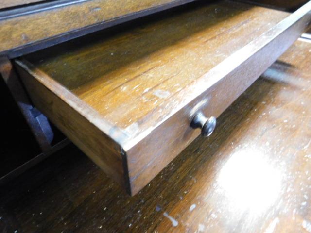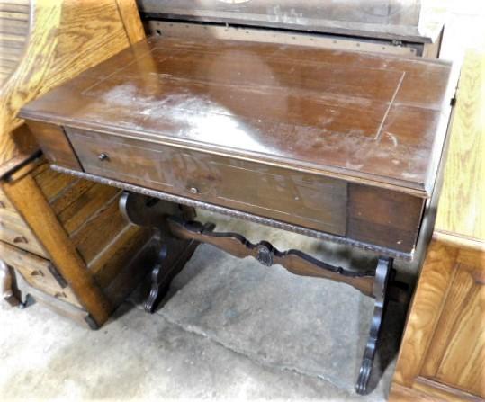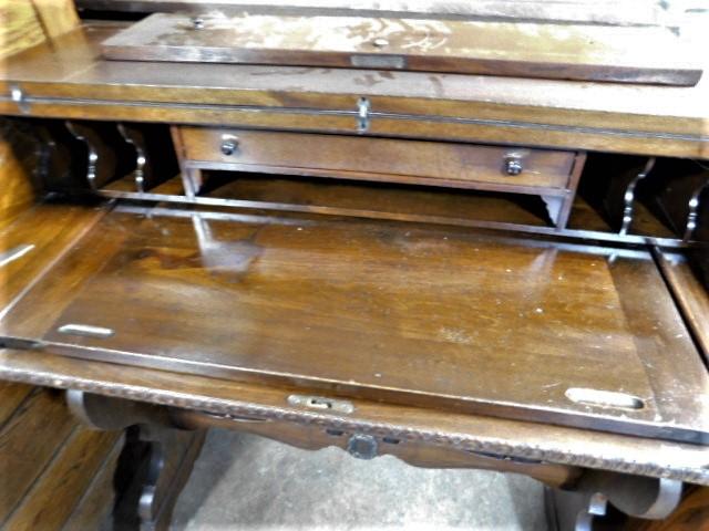 Antique Writing Desk has some wear to finish. Missing one drawer knob as shown