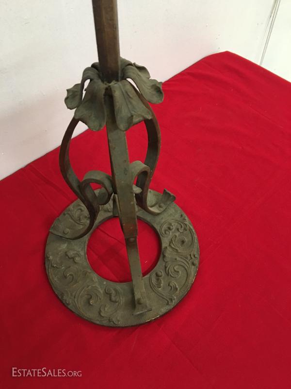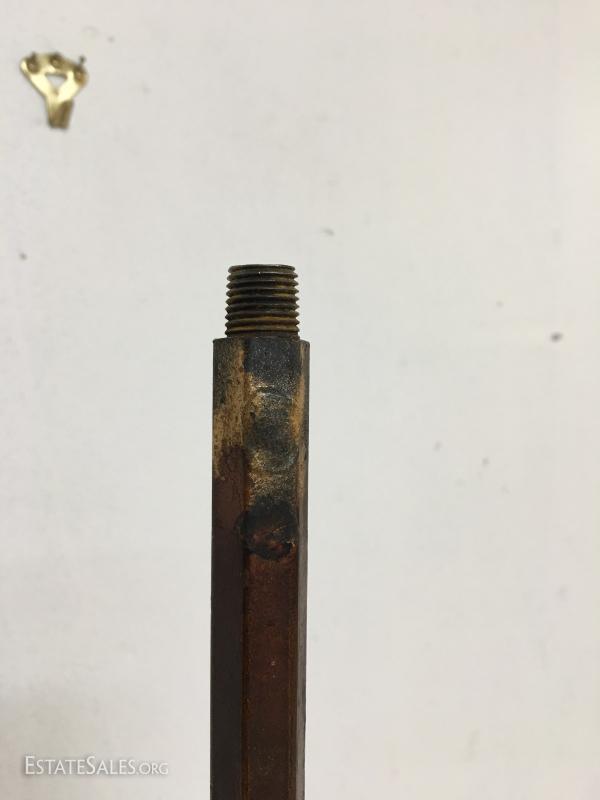 Antique lamp base, threaded at the top. Stands about 52" tall