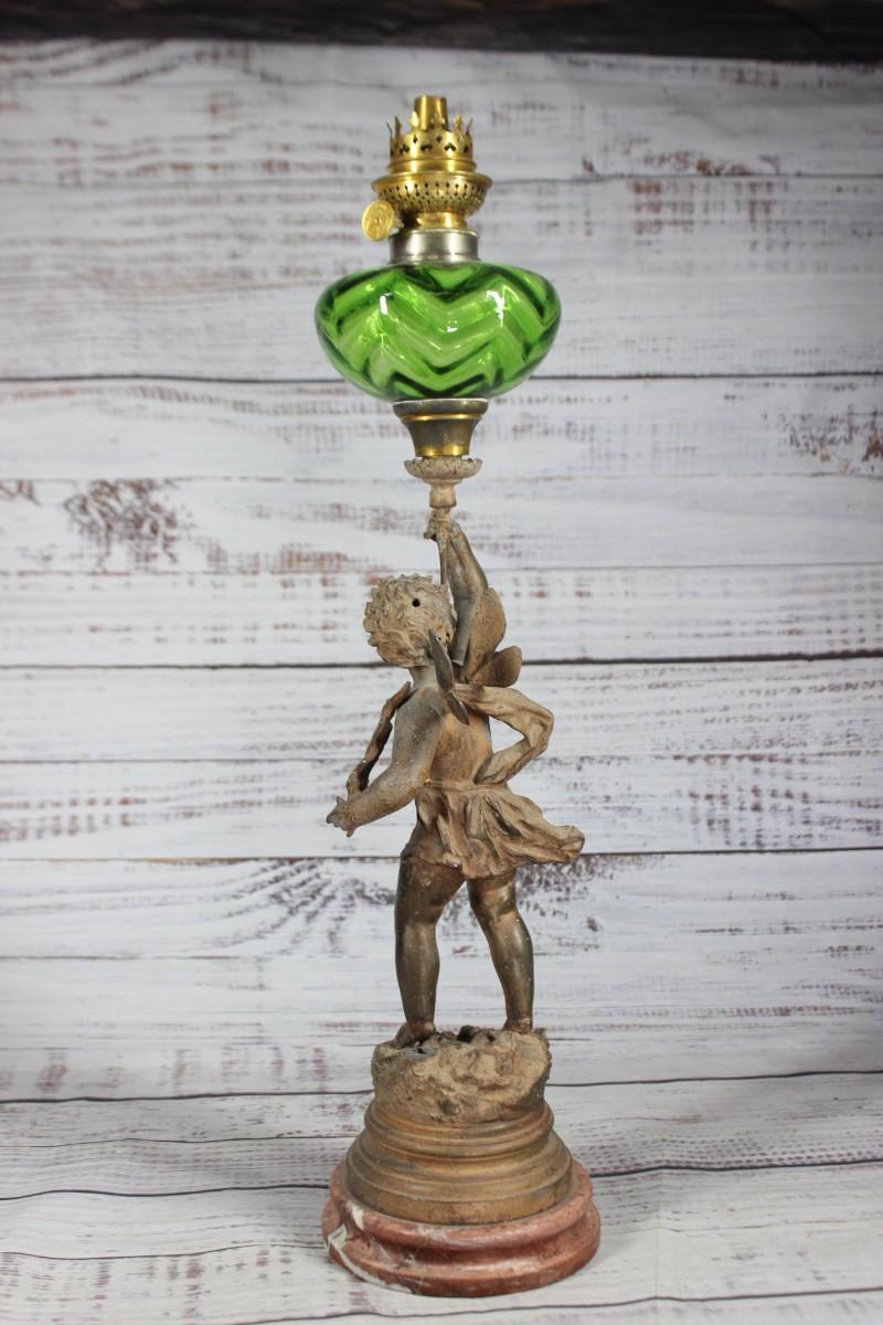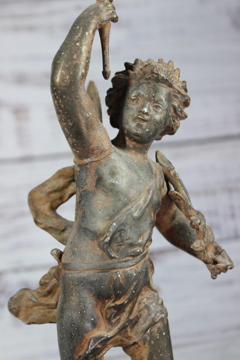 Antique W&W Kosmos Metal Bronze Fairy Statue Lamp by E. Ranooulet