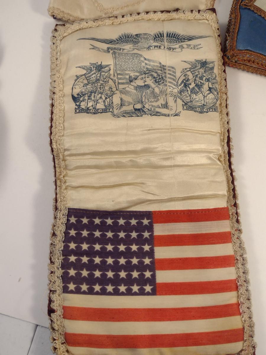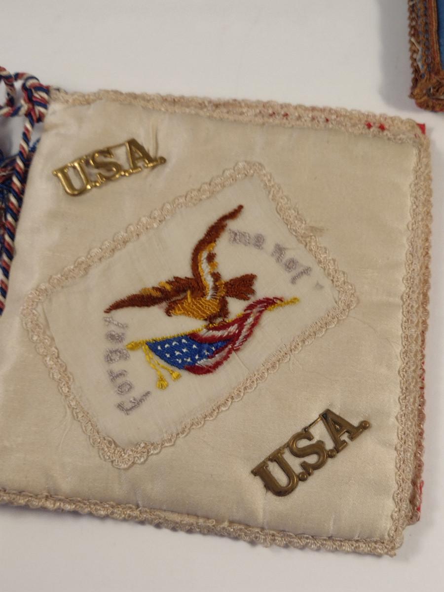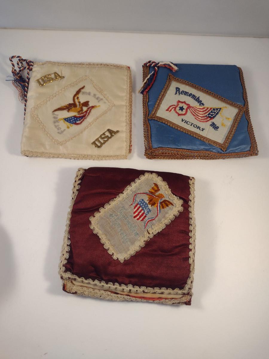 Antique WWI Silk Forget Me Not Sweetheart Handkerchief Pouches