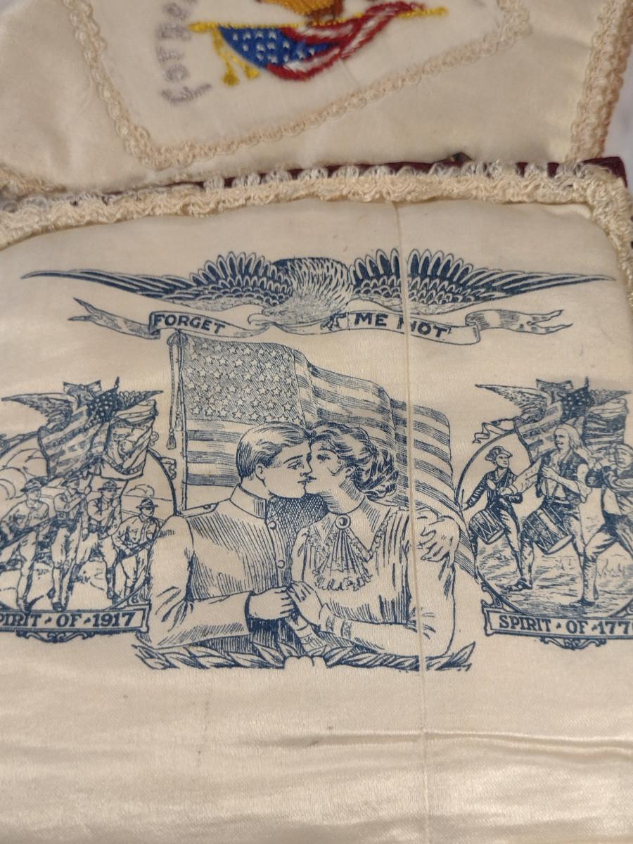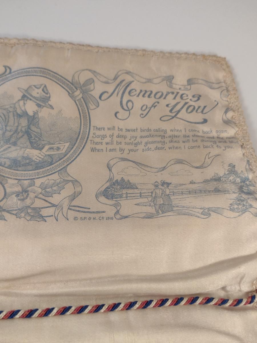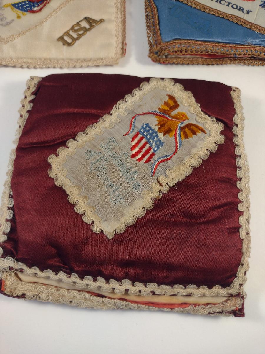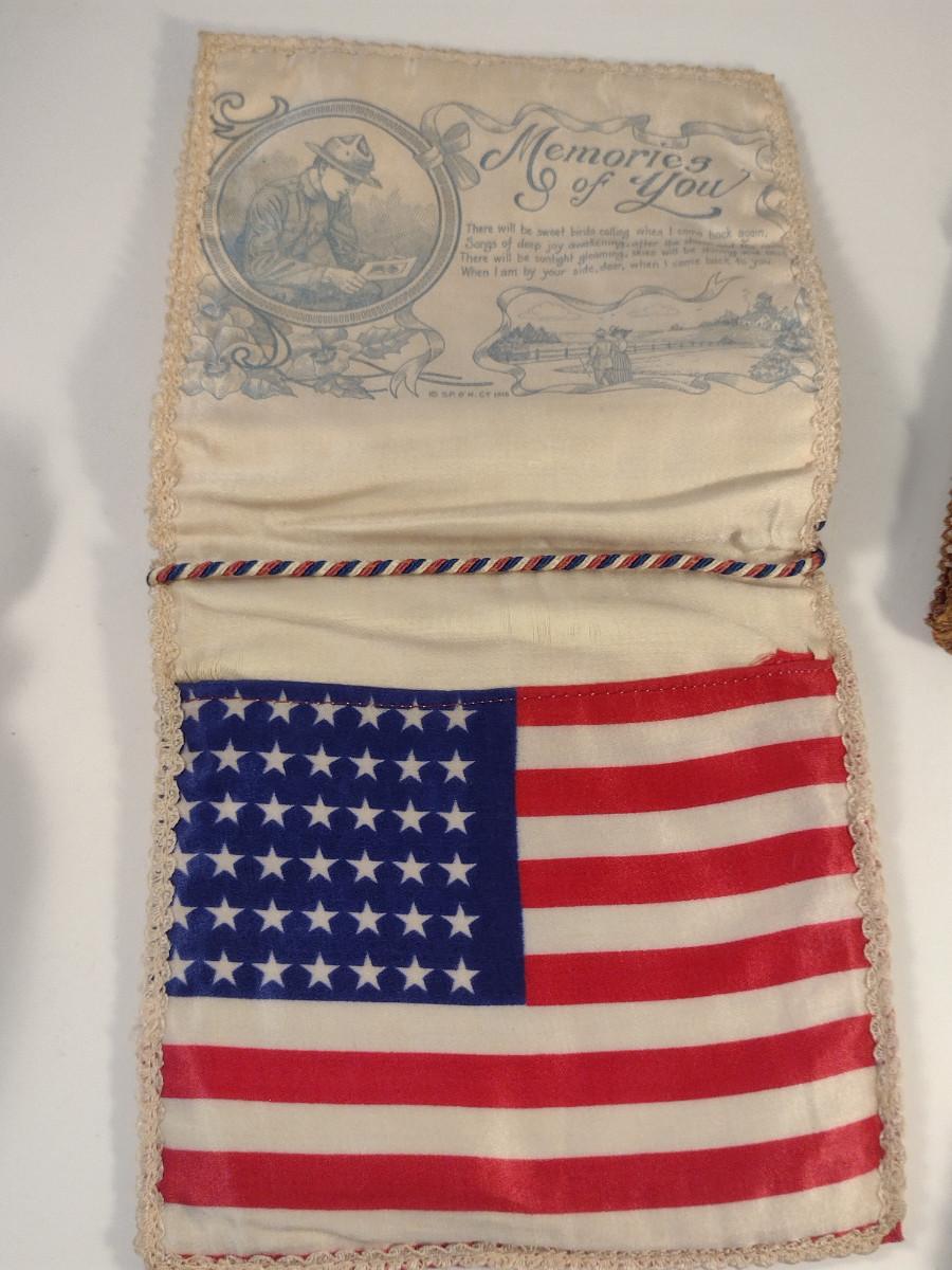 Antique WWI Silk Forget Me Not Sweetheart Handkerchief Pouches