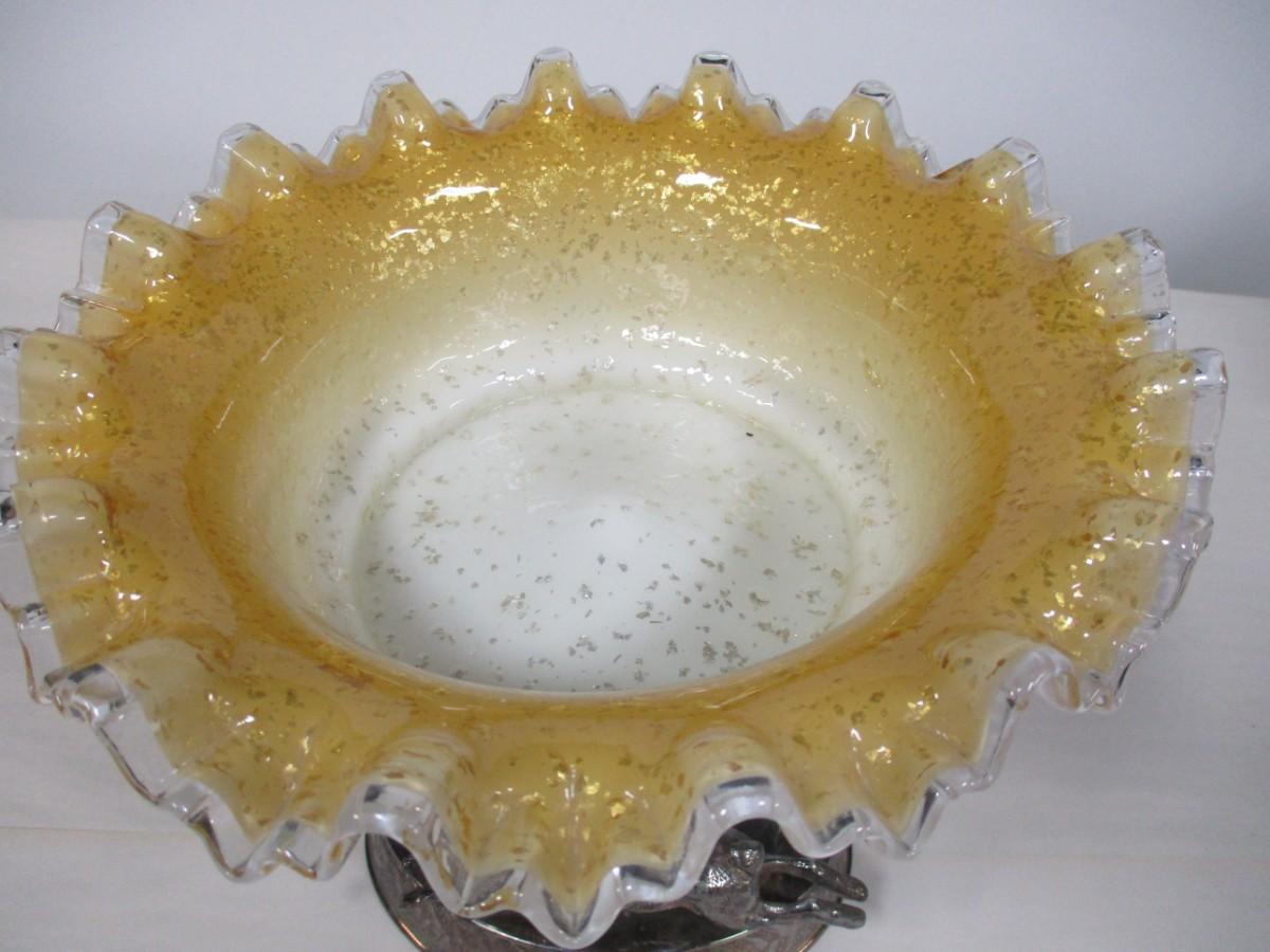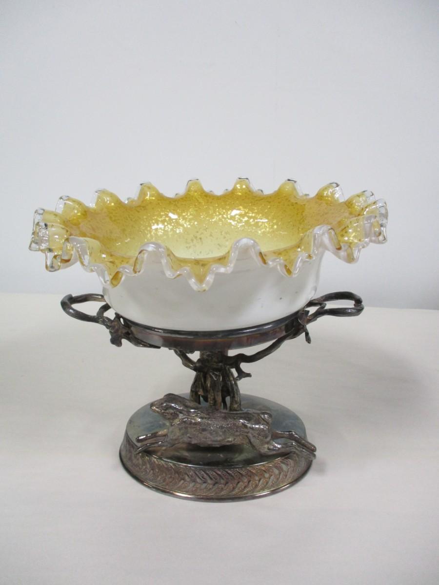 Antique Yellow Wedding Bowls With Silver Plated Base