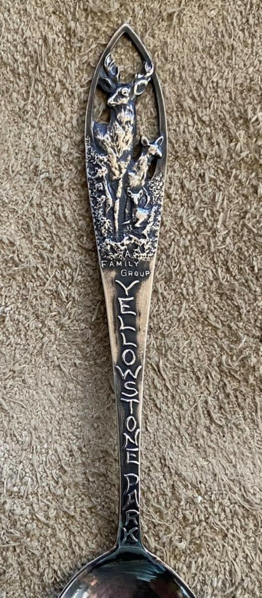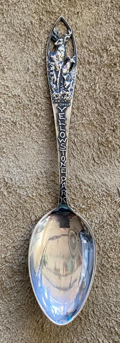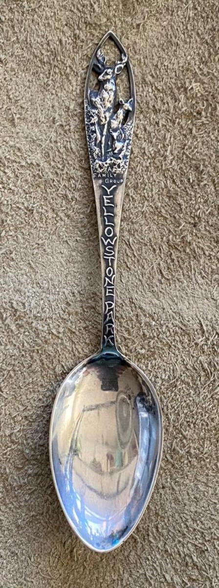 Excellent condition on this old Sterling silver souvenir spoon from YELLOWSTONE STONE...Features a family of deer on the pierced top..5 3/8" long..16 grams...Made by the Charles M. Robbins Company of Attleboro, Mass.