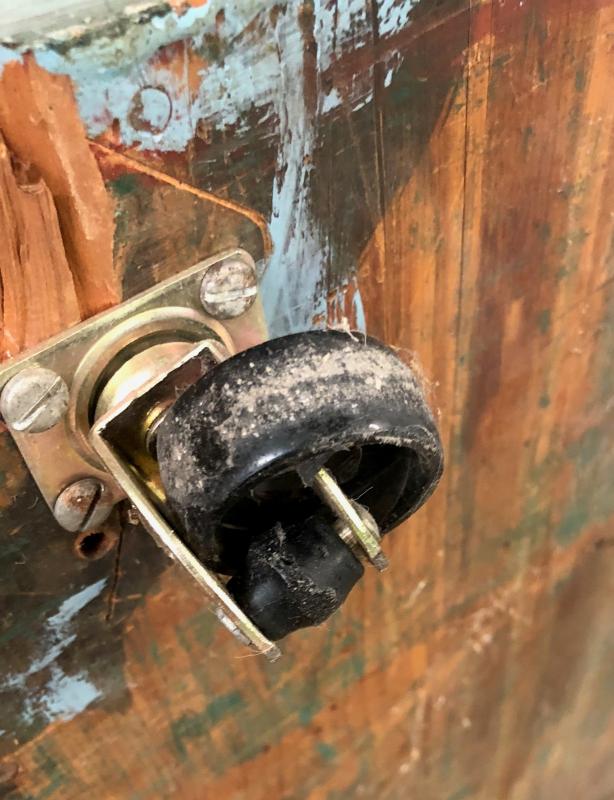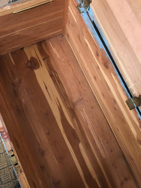 Here is a blue painted cedar chest...some edge and finish damage...wheel damage as well...needs some refurbishment..as pictured...45 x 20 x14"...