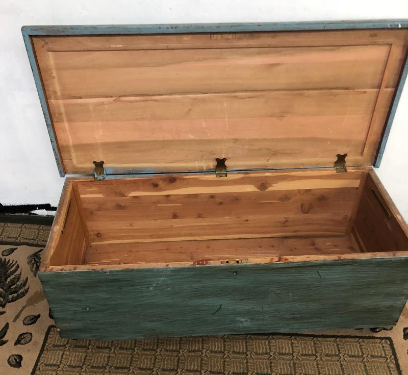 ANTIQUED BLUE PAINTED CEDAR CHEST