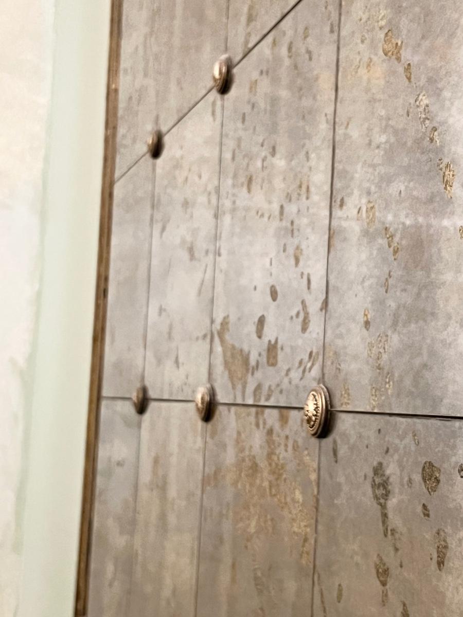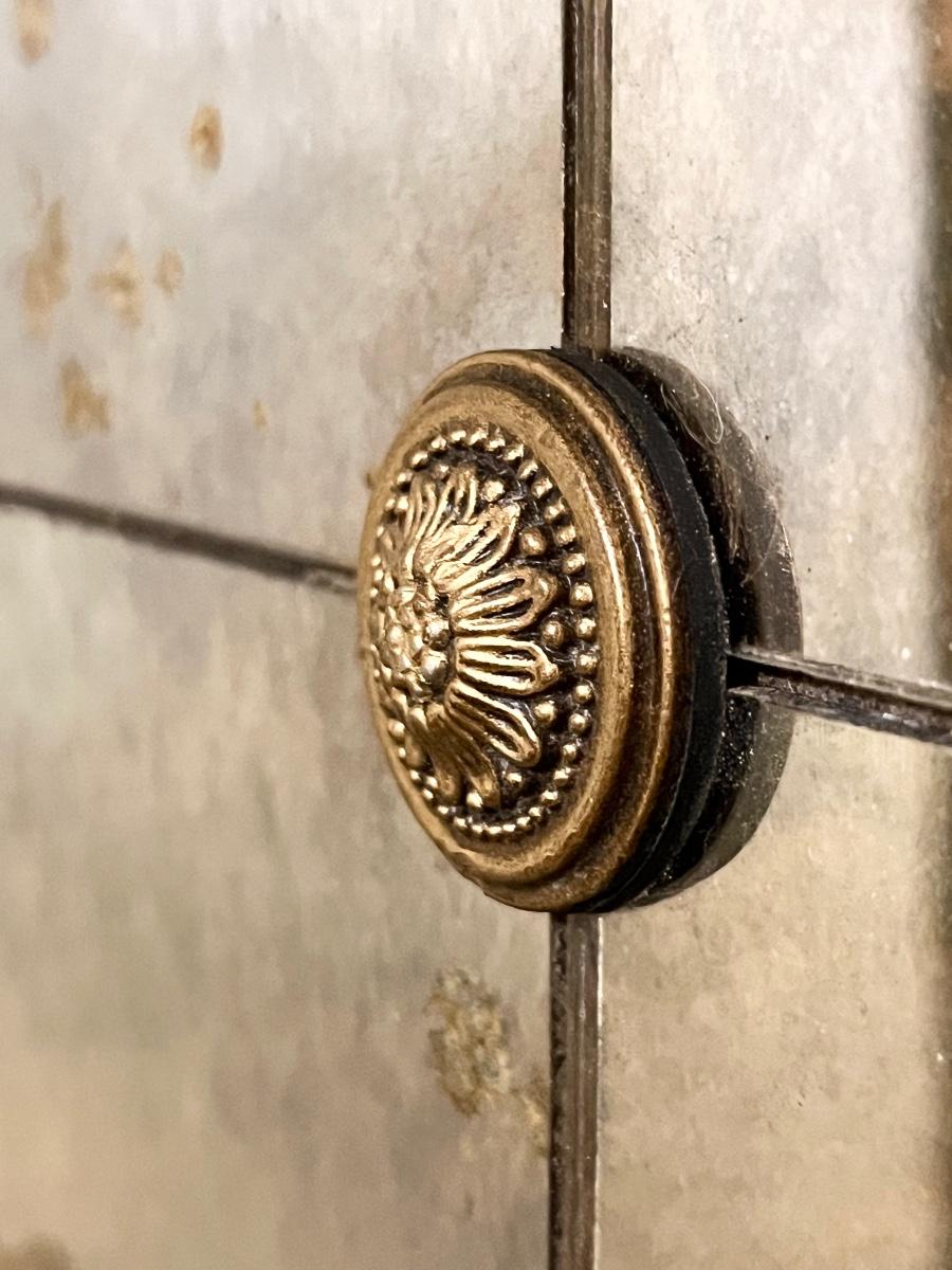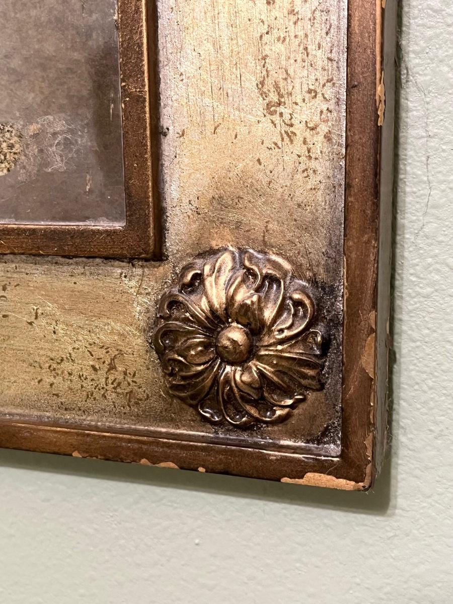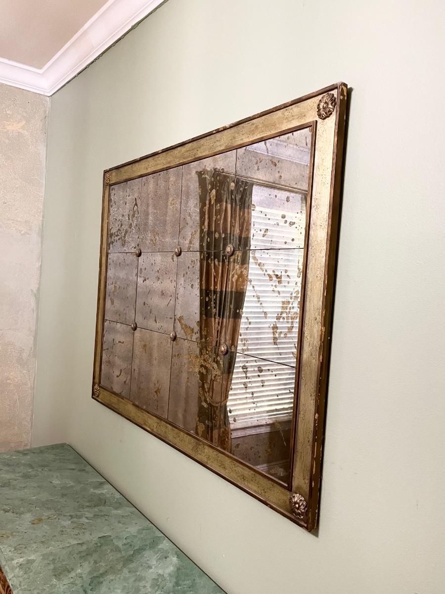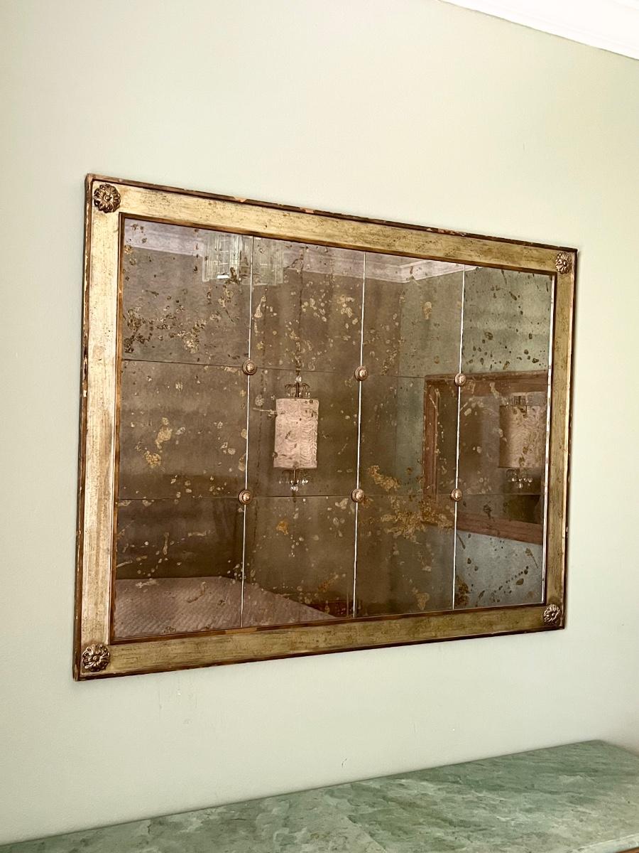 Antiqued Brass Finish ~ Large Paneled Mirror With Rosettes
