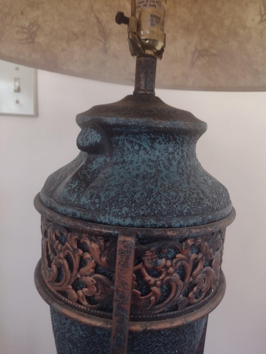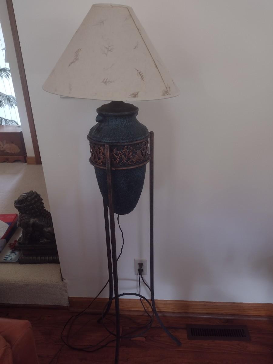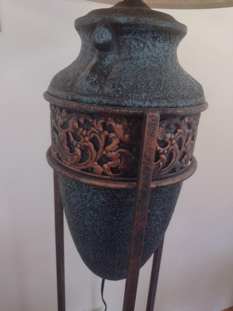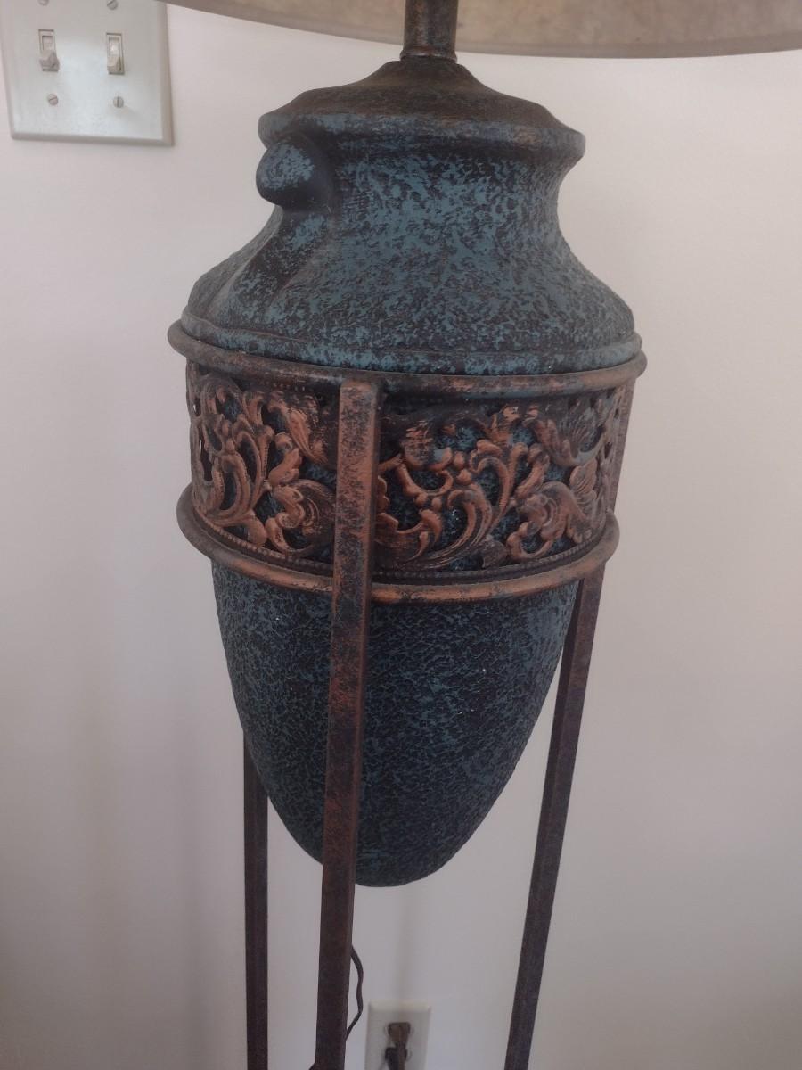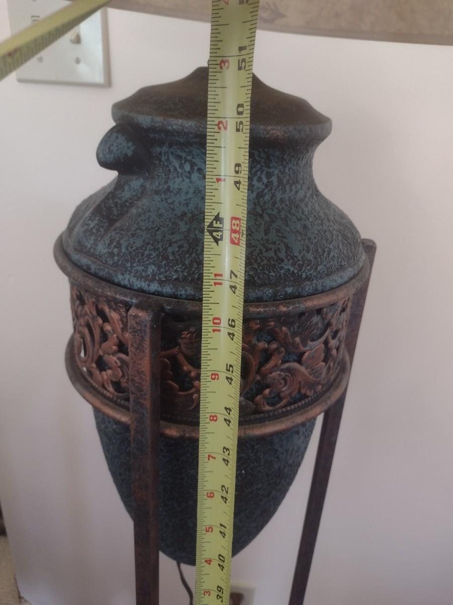 Antiqued Green and Bronze Urn on Stand Design Floor Lamp