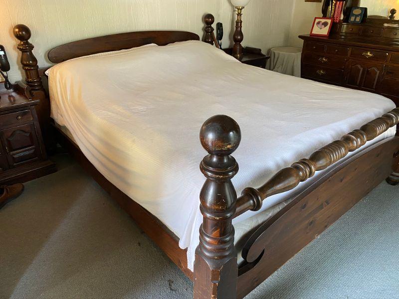 Antiqued Pine Old Tavern Ethan Allen King Size Bed with Tempurpedic Mattress