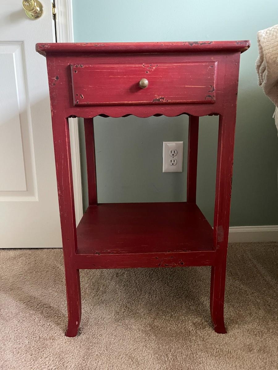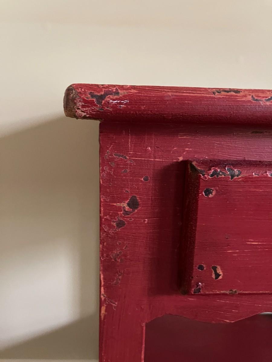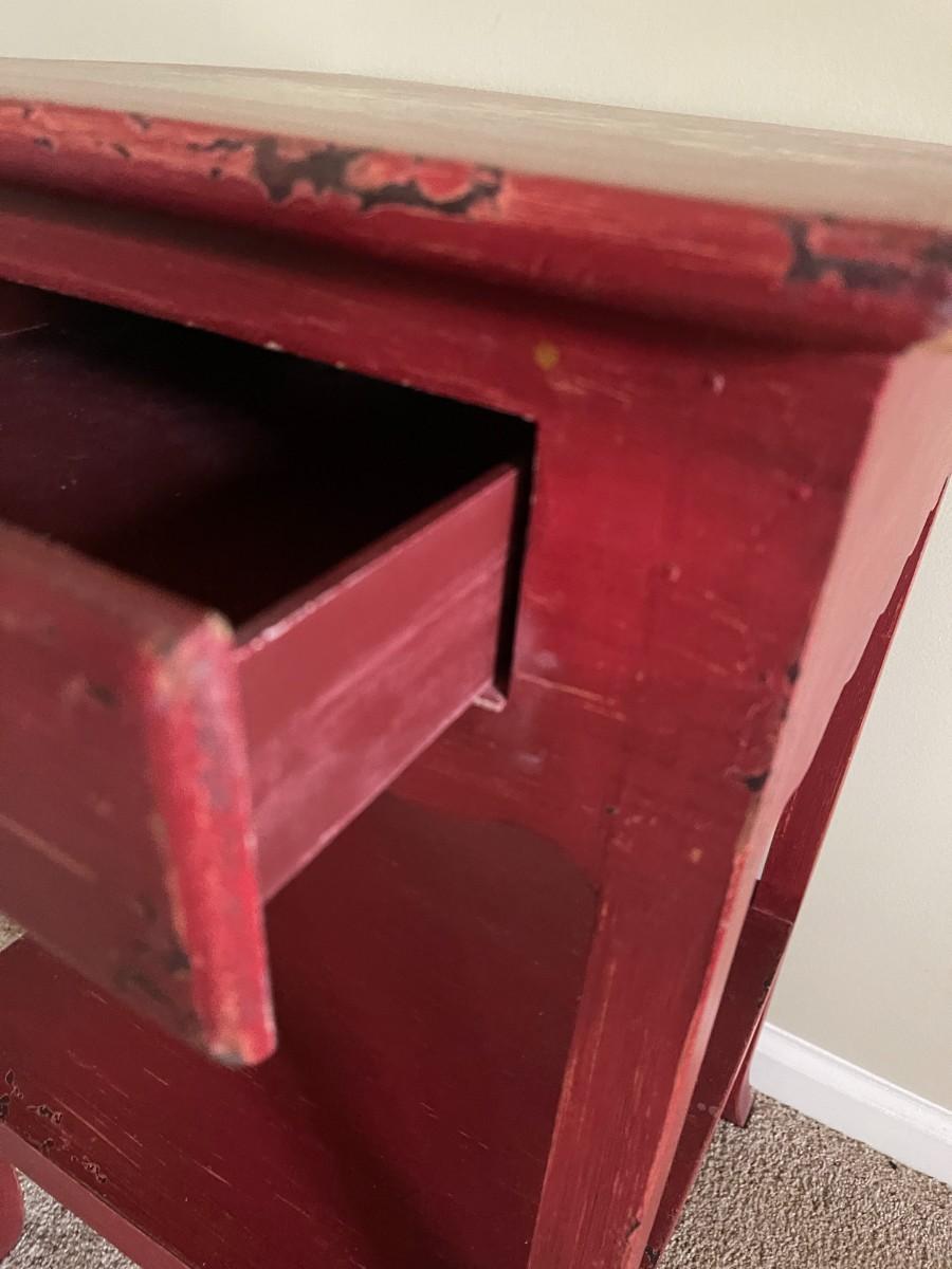 Antiqued Red Accent Table with Hand Painted Flower Design