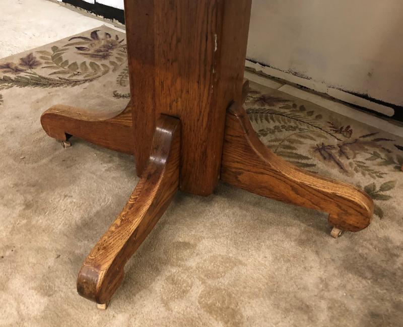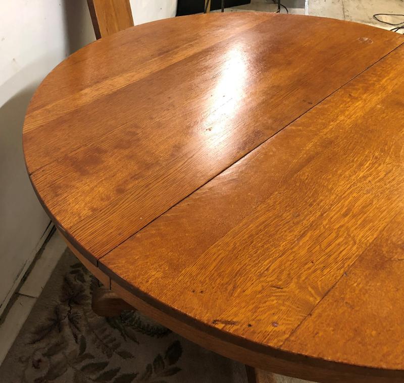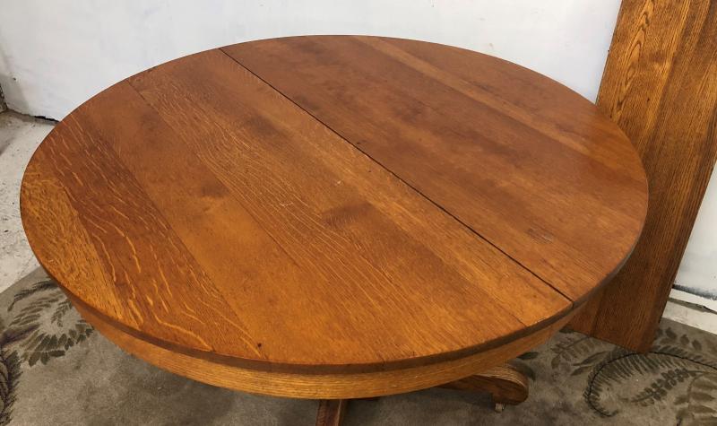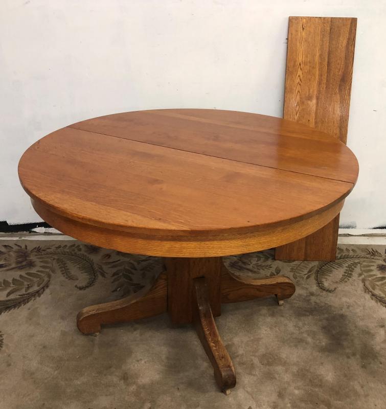 ANTIQUEMISSION ROUND OAK TABLE w/ LEAF