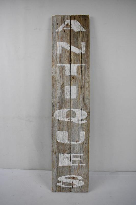 ANTIQUES Rustic Wooden Wall Decor Sign, Raw Wood w/ White Letters 7" x 33"