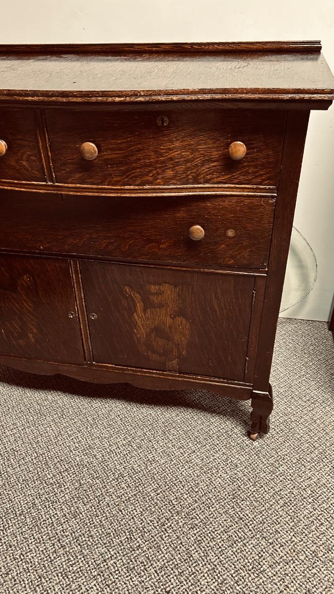 ANTIQUES SIDEBOARD OR BUFFET WITH 3 DRAWERS AND 2 DOOR CABINET ON CASTERS
